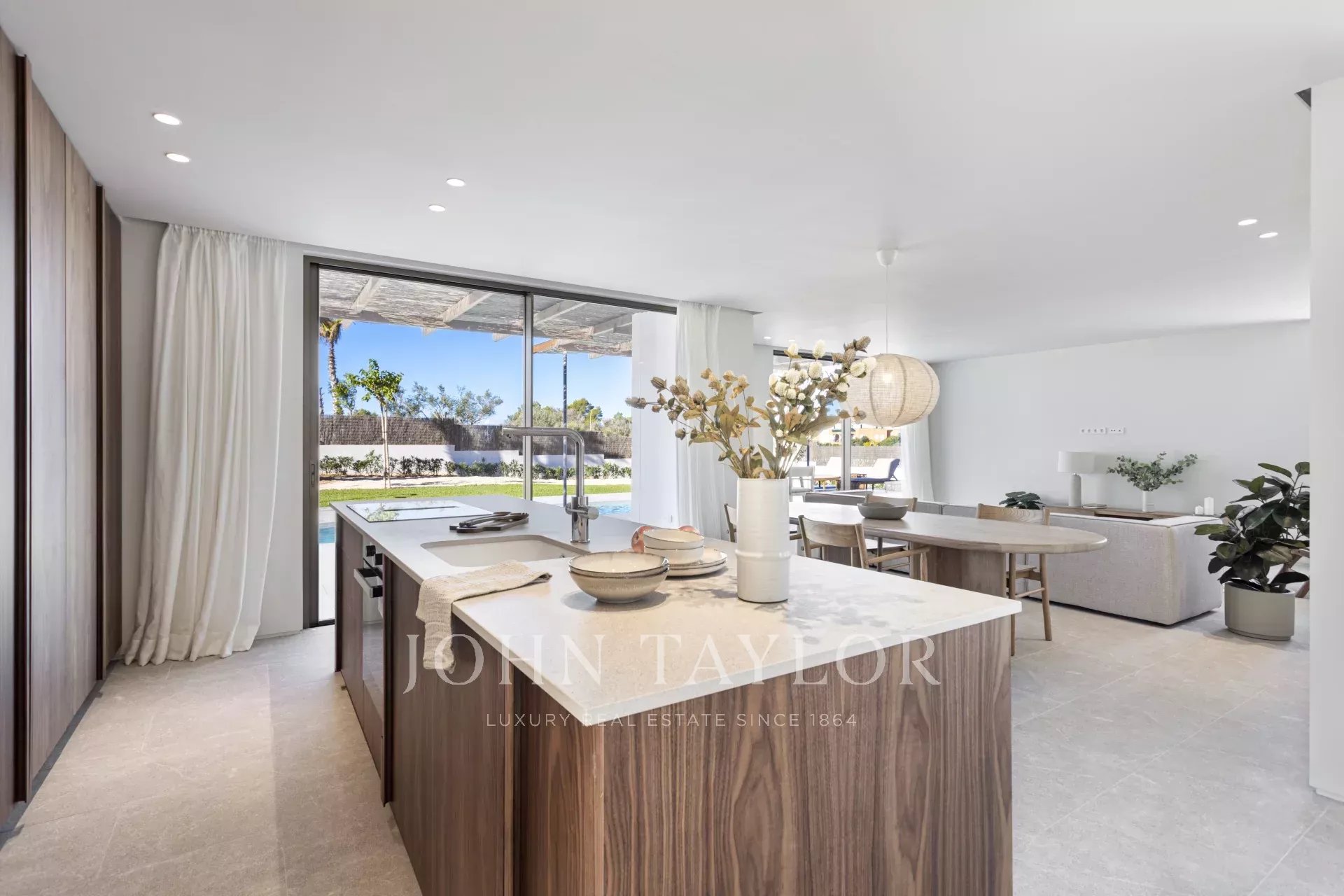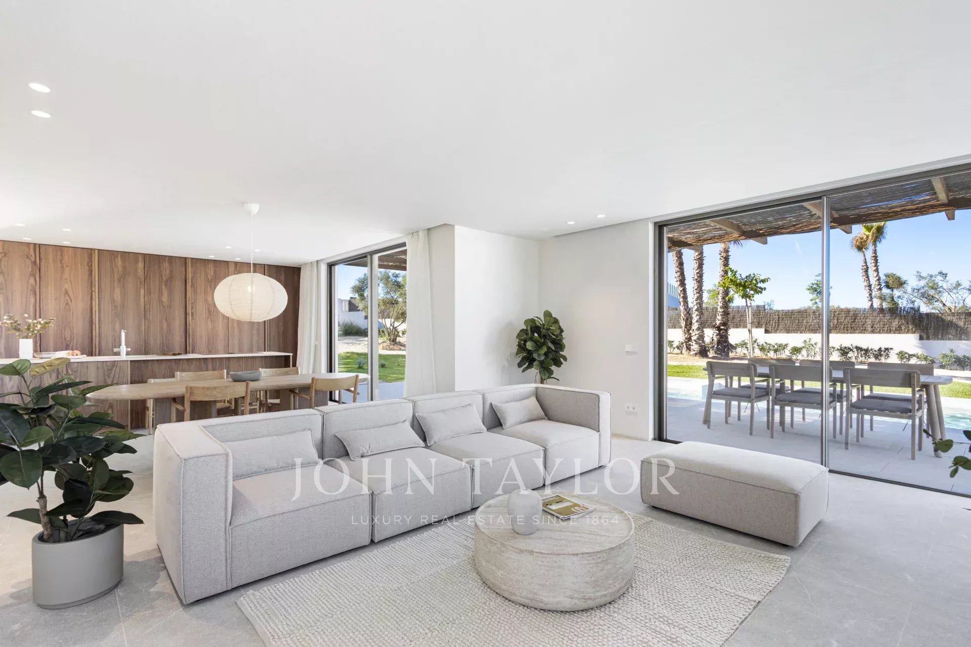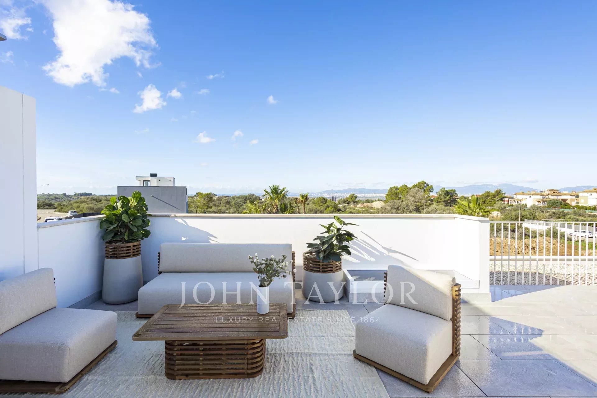 Il seminterrato della villa comprende un ampio garage, una lavanderia, una sala cinema e una palestra, per offrire il massimo della comodità e del comfort. L'imponente terrazza sul tetto offre una vista mozzafiato sulle montagne Tramuntana e sul mare, con uno spazio predisposto per una cucina all'aperto, ideale per cenare all'aperto.