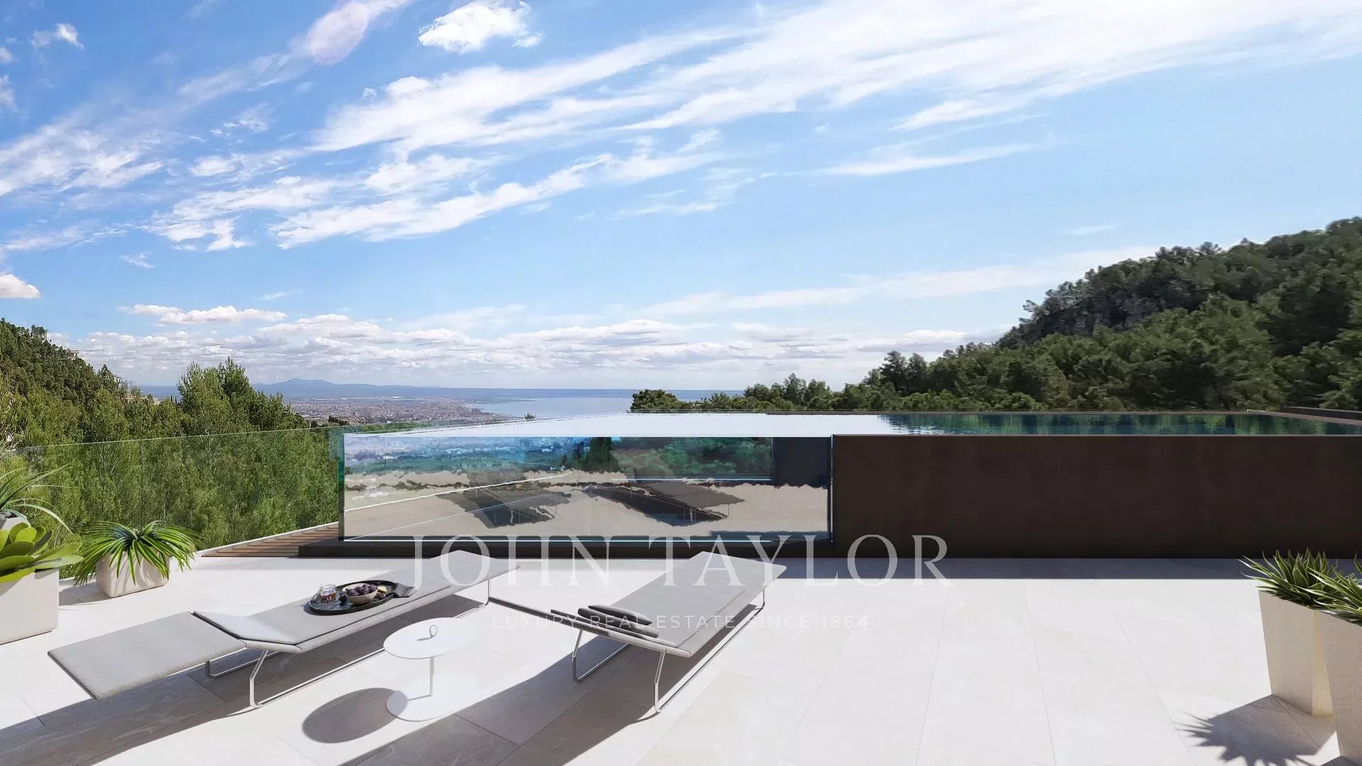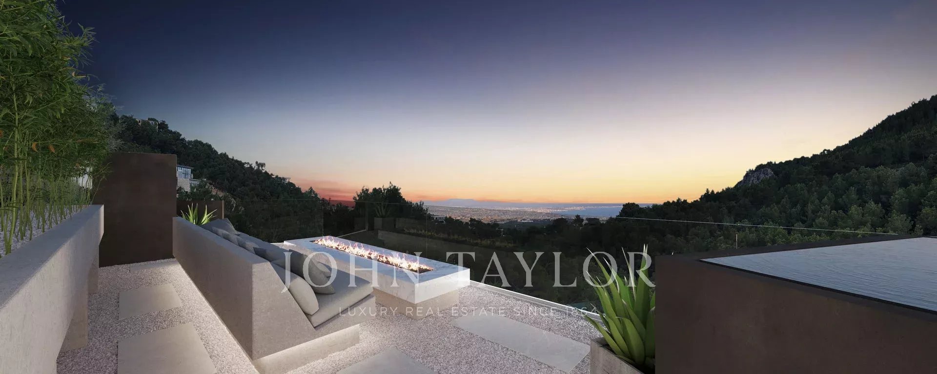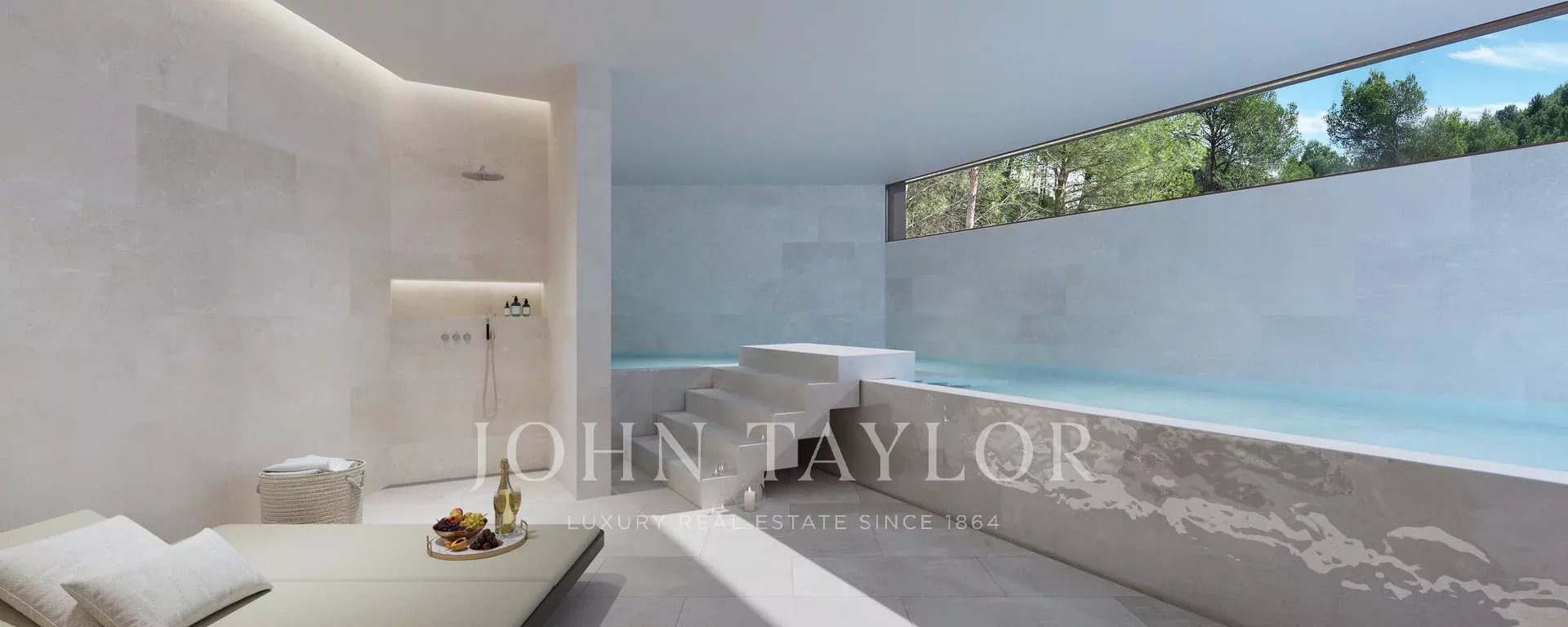 Villa appena completata di qualità e stile senza compromessi. Il design e la costruzione all'avanguardia della villa sono un'assoluta gioia per gli occhi e un esempio per le abitazioni future. Un vero e proprio trendsetter! Godetevi la completa privacy in questa proprietà eccezionale. L'imponente porta d'ingresso vi conduce dal livello della strada alla zona giorno superiore, dove troverete un salotto chill-out, un bar e la fantastica piscina a sfioro, in parte vetrata. Qui si gode di una vista mozzafiato sulla baia di Palma. Questa vista è superata solo dalla terrazza sul tetto sovrastante, raggiungibile tramite una scala esterna. In tutta la casa è presente anche un ascensore. Al di sotto del livello della piscina si trova la principale area sociale: una spaziosa zona cucina/pranzo e soggiorno a pianta aperta, con passaggio continuo alla generosa terrazza parzialmente coperta. Il livello sottostante ospita quattro camere da letto e due bagni condivisi con due camere da letto ciascuna. Qui si trova anche una grande cantina. La suite padronale occupa l'intero piano terra con uno spogliatoio oversize, un bagno aperto, una sauna e un accesso diretto al giardino dove vi attende una vasca idromassaggio. Una piscina interna riscaldata con spa e palestra si trova al livello più basso. Molte delle caratteristiche tecniche, come il sistema di circolazione dell'aria, si basano su un progetto dell'industria aeronautica (lo sviluppatore proviene da questo settore) e anche le altre caratteristiche sono estremamente orientate al futuro e all'avanguardia. Il risultato: risparmio energetico e comfort semplicemente unico.