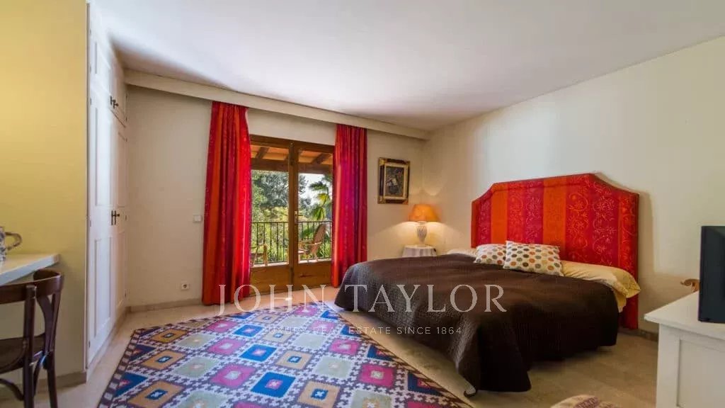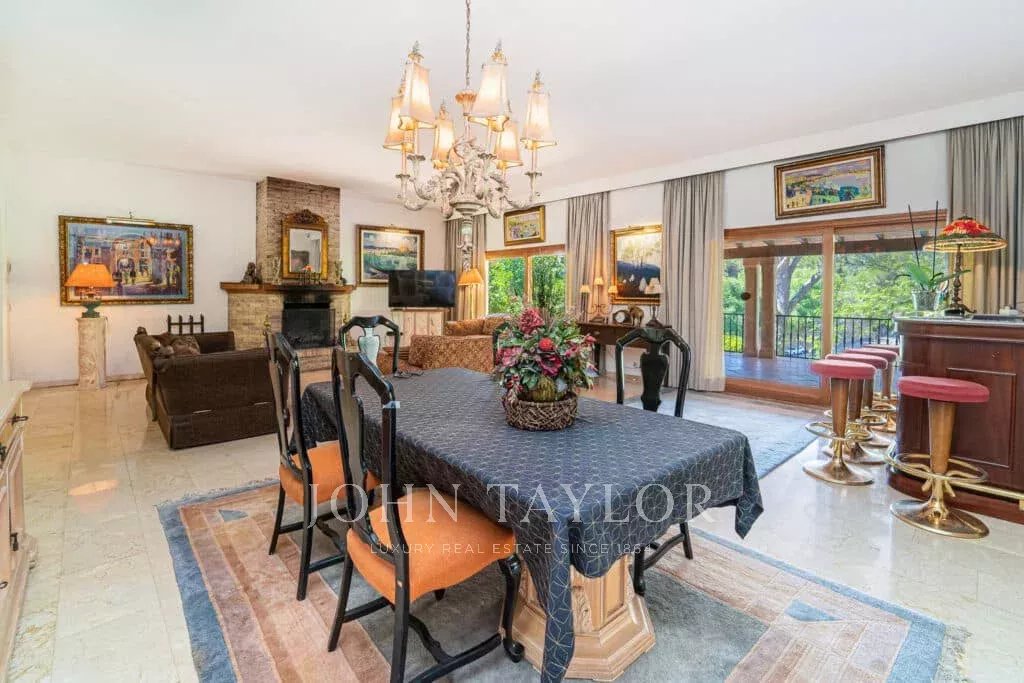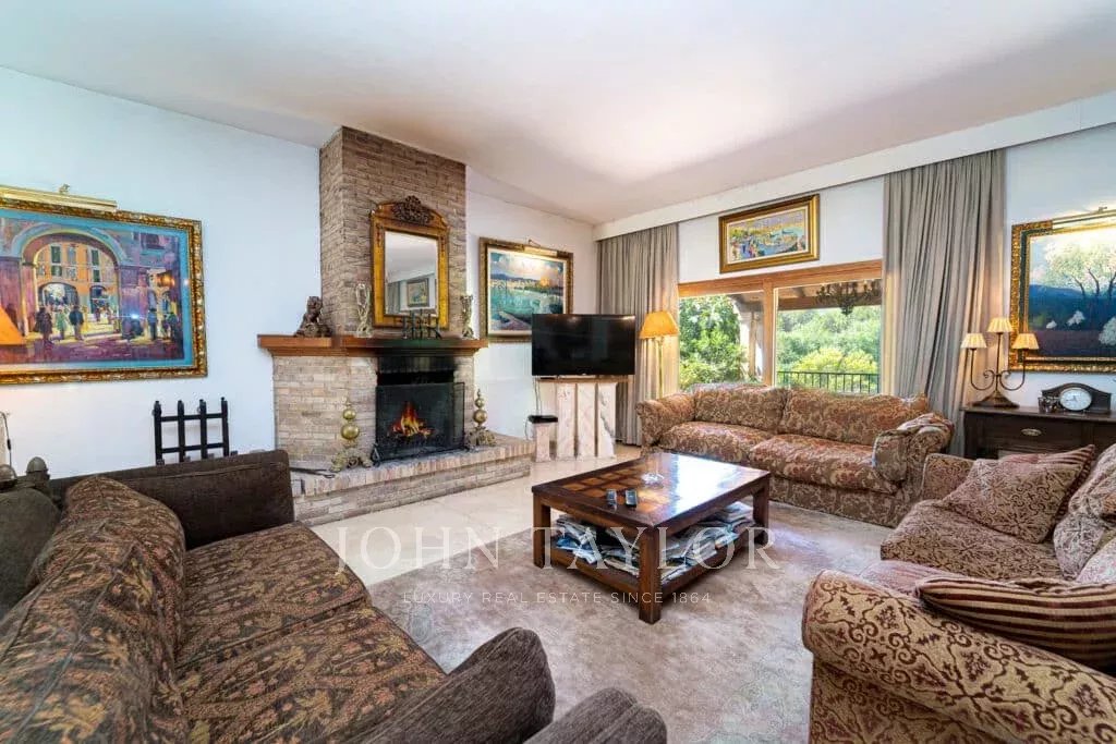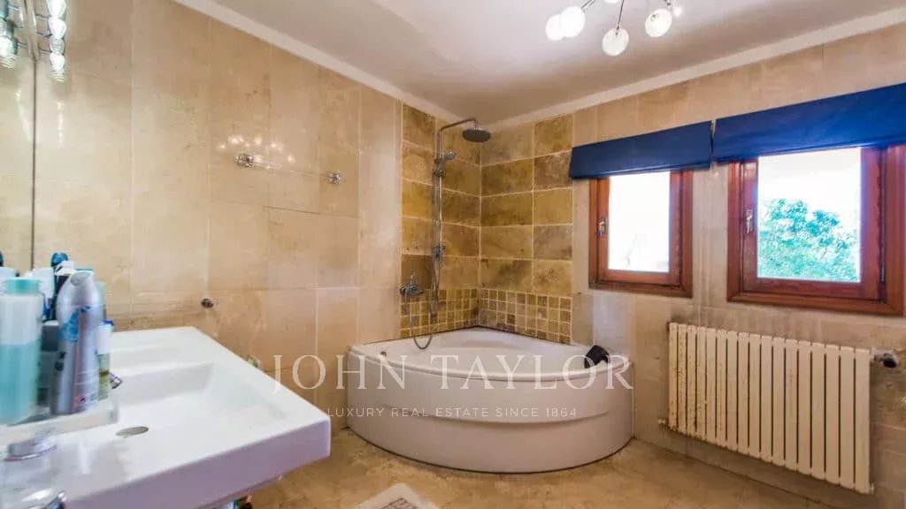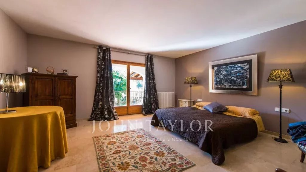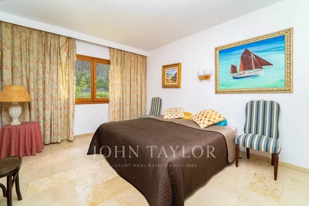 Orientamento solare: Sud-Sud-Ovest La superficie abitabile netta di circa 530 m2 è distribuita tra la casa principale e la casa degli ospiti. Casa principale su un unico livello: ingresso, ampio soggiorno con camino, sala da pranzo, cucina con angolo per la colazione, toilette per gli ospiti, 3 grandi camere da letto ciascuna con bagno e spogliatoio en-suite e altre 2 camere da letto con un bagno, diversi locali di servizio. Pensione: camera da letto con bagno en-suite e cucina. Questa proprietà è stata ristrutturata nel 1997. Aria condizionata reversibile di buona qualità in tutte le stanze, riscaldamento centrale, pavimenti in marmo. Belle terrazze parzialmente coperte. Piscina. Ampi spazi verdi e garage doppio.