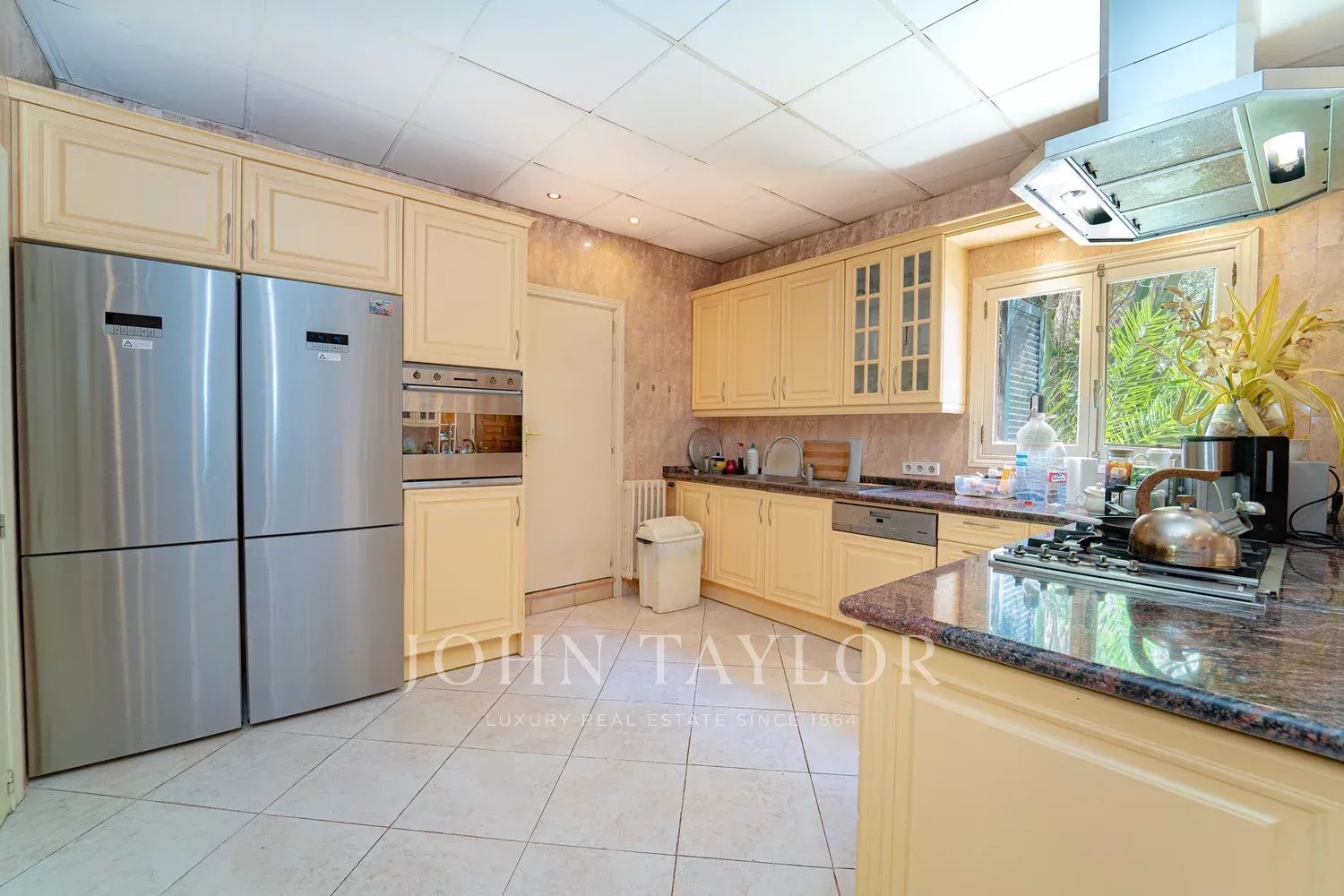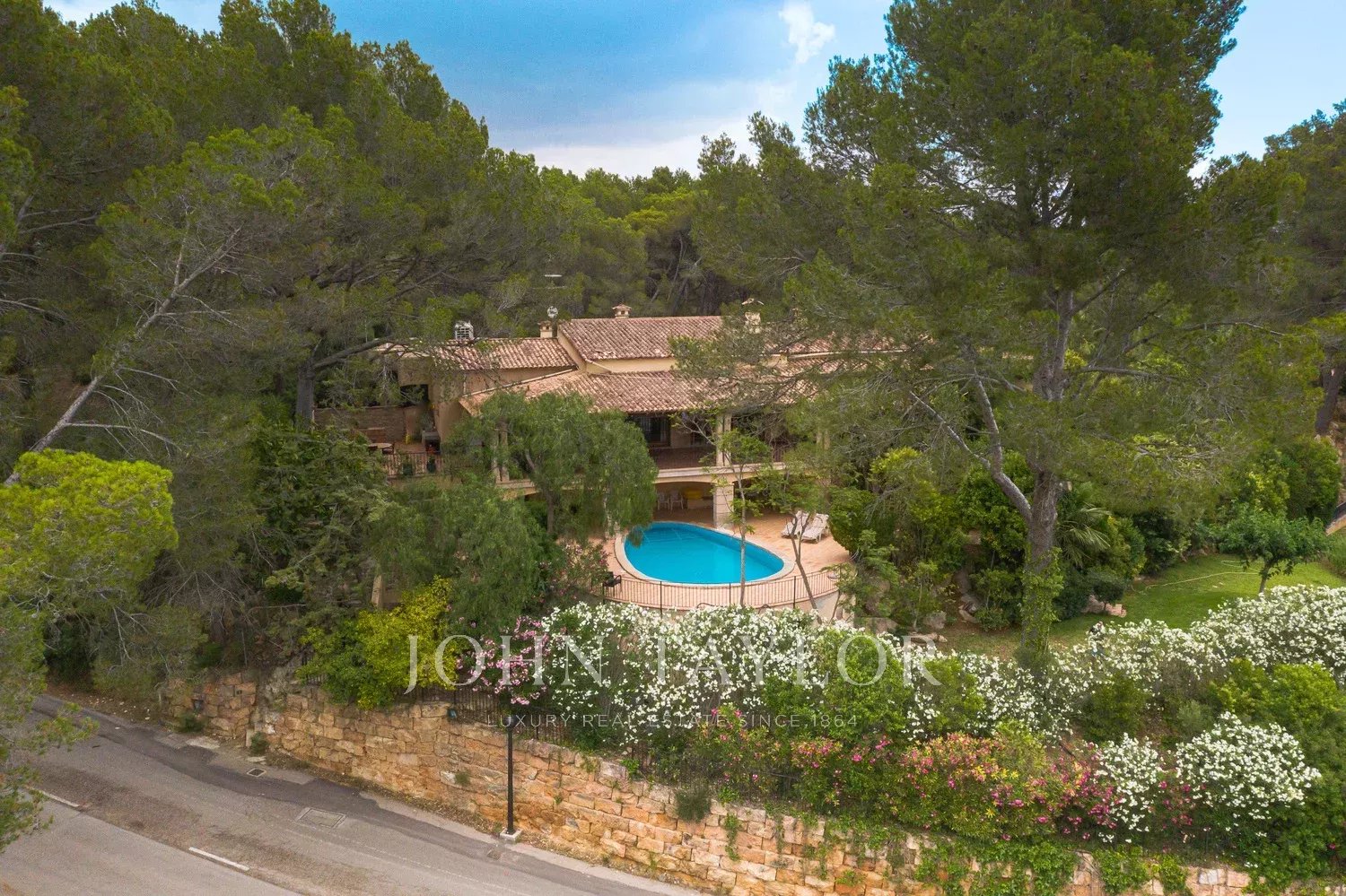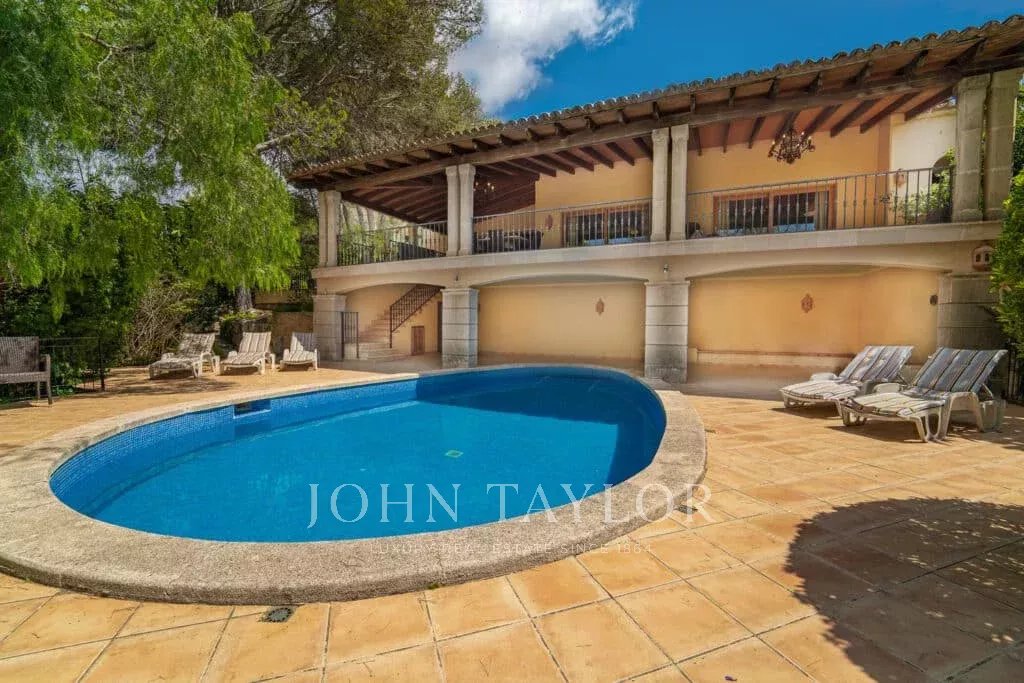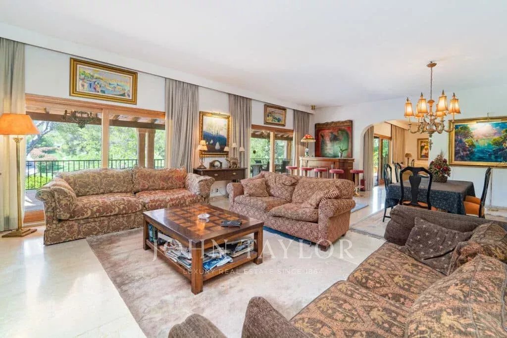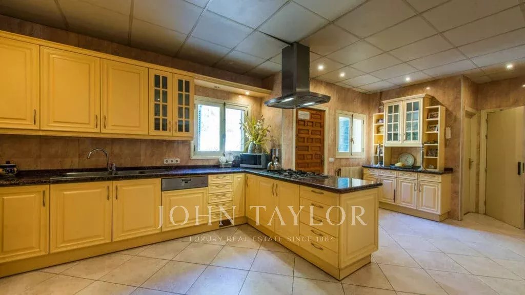 Orientamento solare: Sud-Sud-Ovest La superficie abitabile netta di circa 530 m2 è distribuita tra la casa principale e la casa degli ospiti. Casa principale su un unico livello: ingresso, ampio soggiorno con camino, sala da pranzo, cucina con angolo per la colazione, toilette per gli ospiti, 3 grandi camere da letto ciascuna con bagno e spogliatoio en-suite e altre 2 camere da letto con un bagno, diversi locali di servizio. Pensione: camera da letto con bagno en-suite e cucina. Questa proprietà è stata ristrutturata nel 1997. Aria condizionata reversibile di buona qualità in tutte le stanze, riscaldamento centrale, pavimenti in marmo. Belle terrazze parzialmente coperte. Piscina. Ampi spazi verdi e garage doppio.