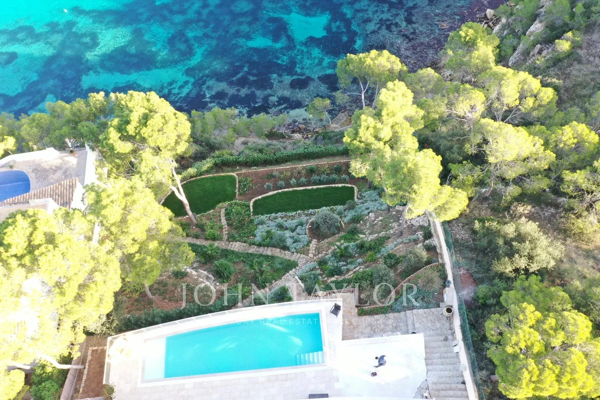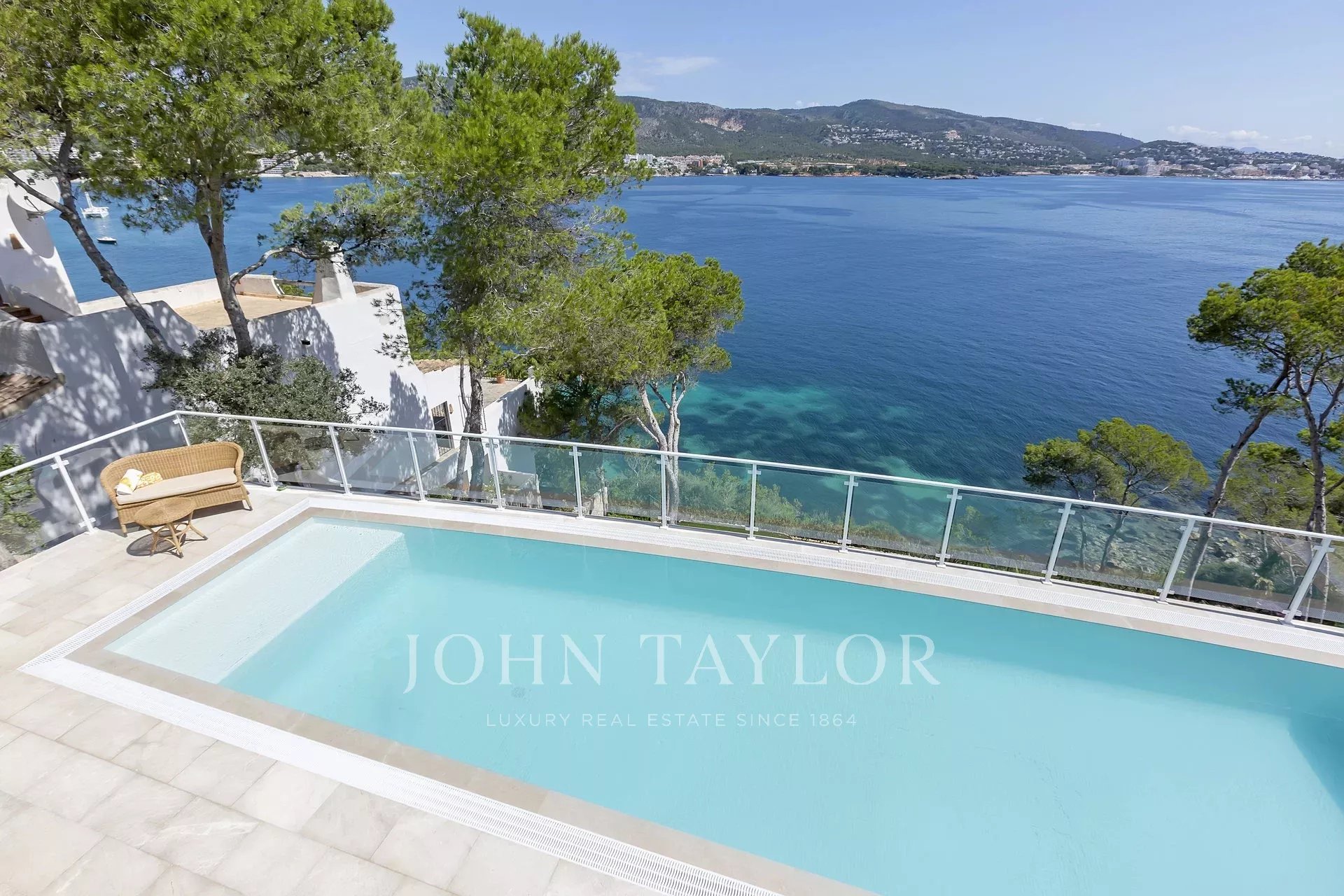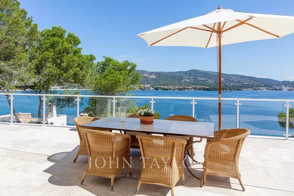 Villa di lusso con accesso diretto al mare a Palmanova. Questa villa completamente ristrutturata nel 2020 si trova sul lungomare di Palmanova e dispone di un comodo accesso privato al mare, in modo da potersi godere una nuotata in qualsiasi momento della giornata. La vista è spettacolare non solo durante il giorno, quando si possono vedere le navi che passano, ma anche di notte, quando l'intera costa intorno alla baia è illuminata. La casa è distribuita su 2 piani e offre un ampio ingresso, un soggiorno con cucina con accesso alla terrazza, 4 camere da letto e 4 bagni. Nel seminterrato si trova un appartamento per gli ospiti completamente indipendente e c'è spazio sufficiente per realizzare una palestra, una sala cinema, un'area spa, ecc. Una bella piscina e un garage completano questa meravigliosa proprietà in una posizione tranquilla con molta privacy accanto a un'area verde.