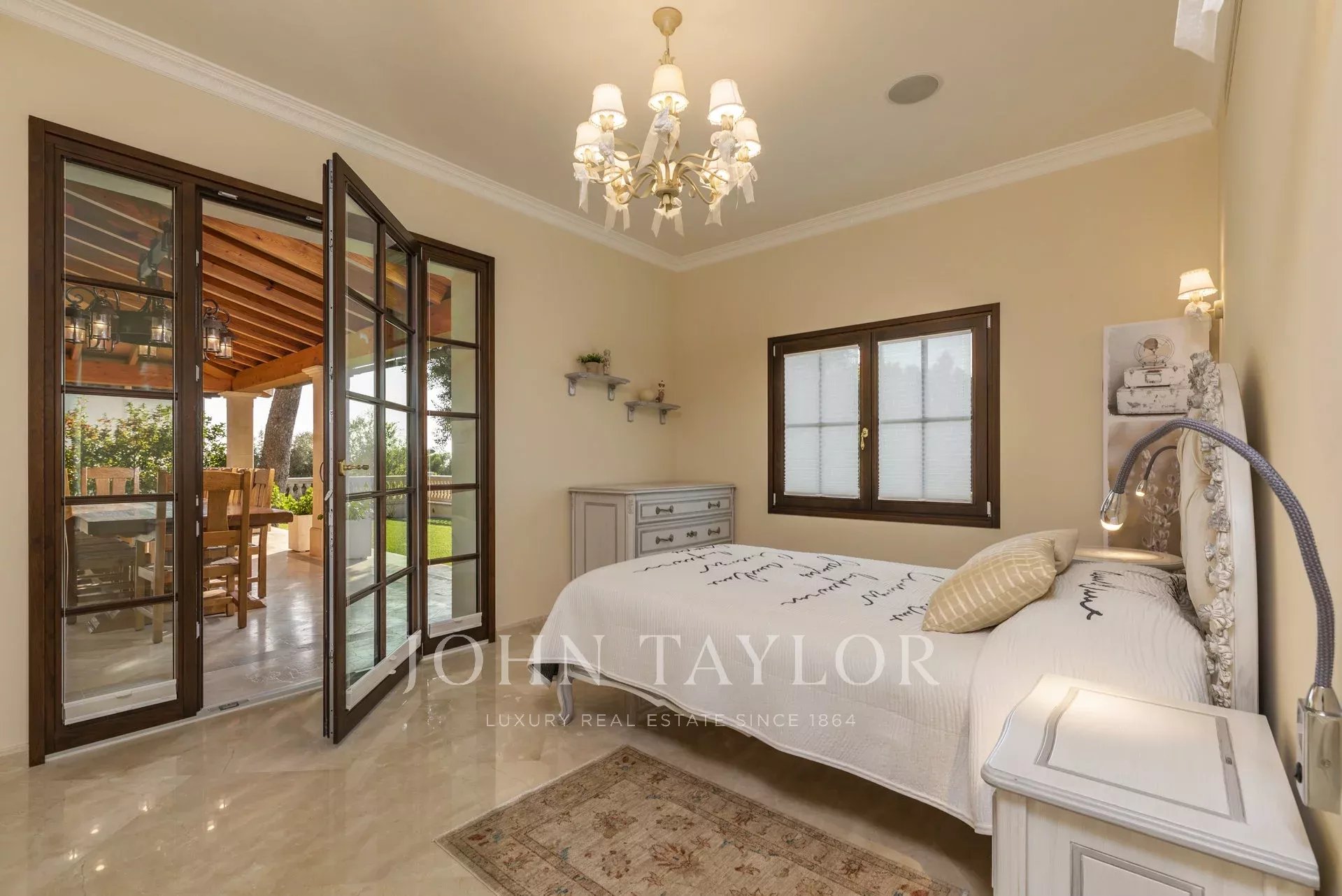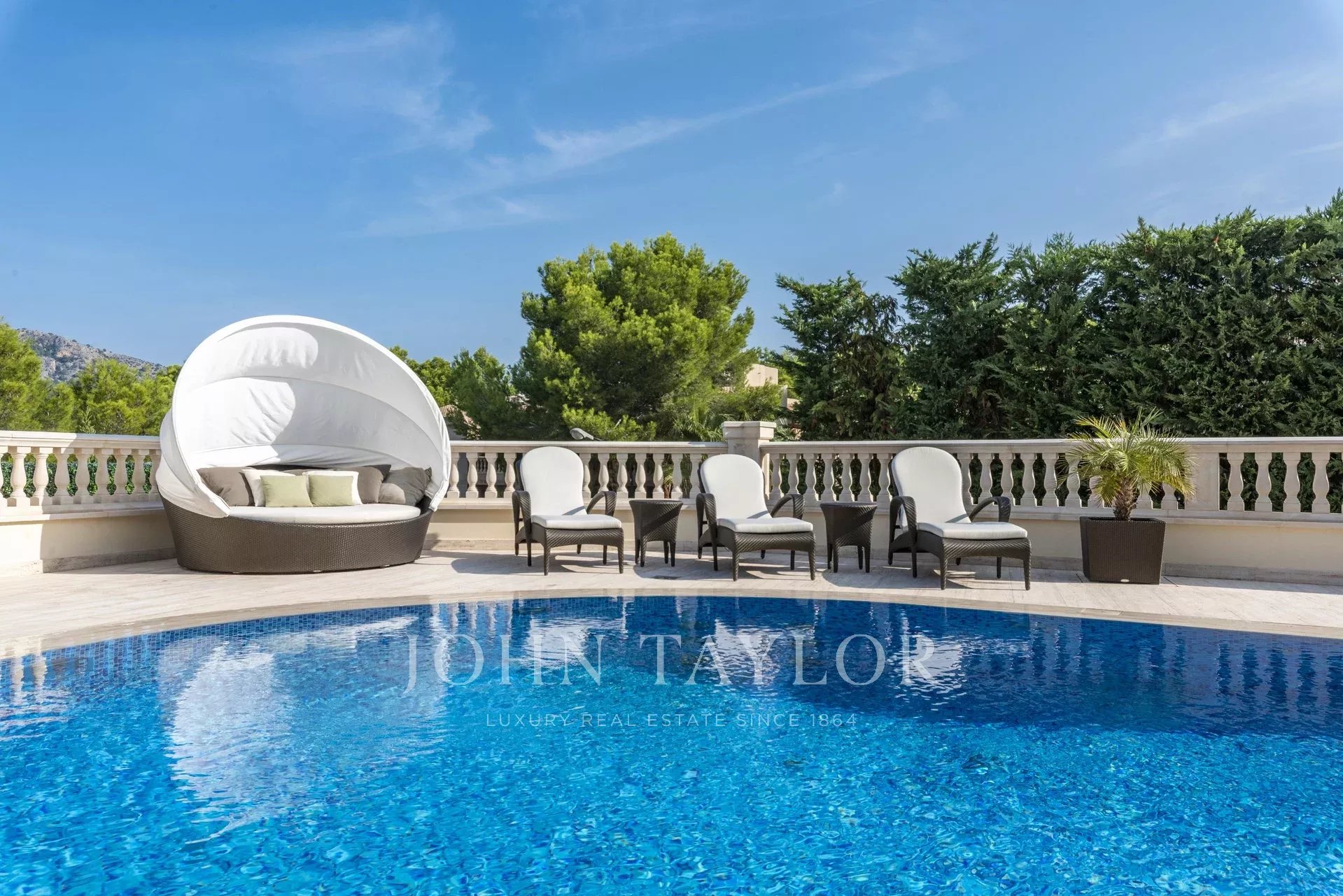 Nel seminterrato si trova un garage per 3 auto e una sauna per 4 persone. Al piano terra si trovano il soggiorno, la sala da pranzo separata dalla cucina e dal soggiorno, il salotto con camino, la cucina, la lavanderia, una terrazza per fare colazione, un'ampia terrazza coperta ventilata dalla fresca brezza marina, 2 camere da letto con bagno e un bagno per gli ospiti. Al primo piano si trovano 4 camere da letto con bagno, una sala giochi e altre 3 terrazze con ampie viste sul mare e sulle montagne di Tramuntana.