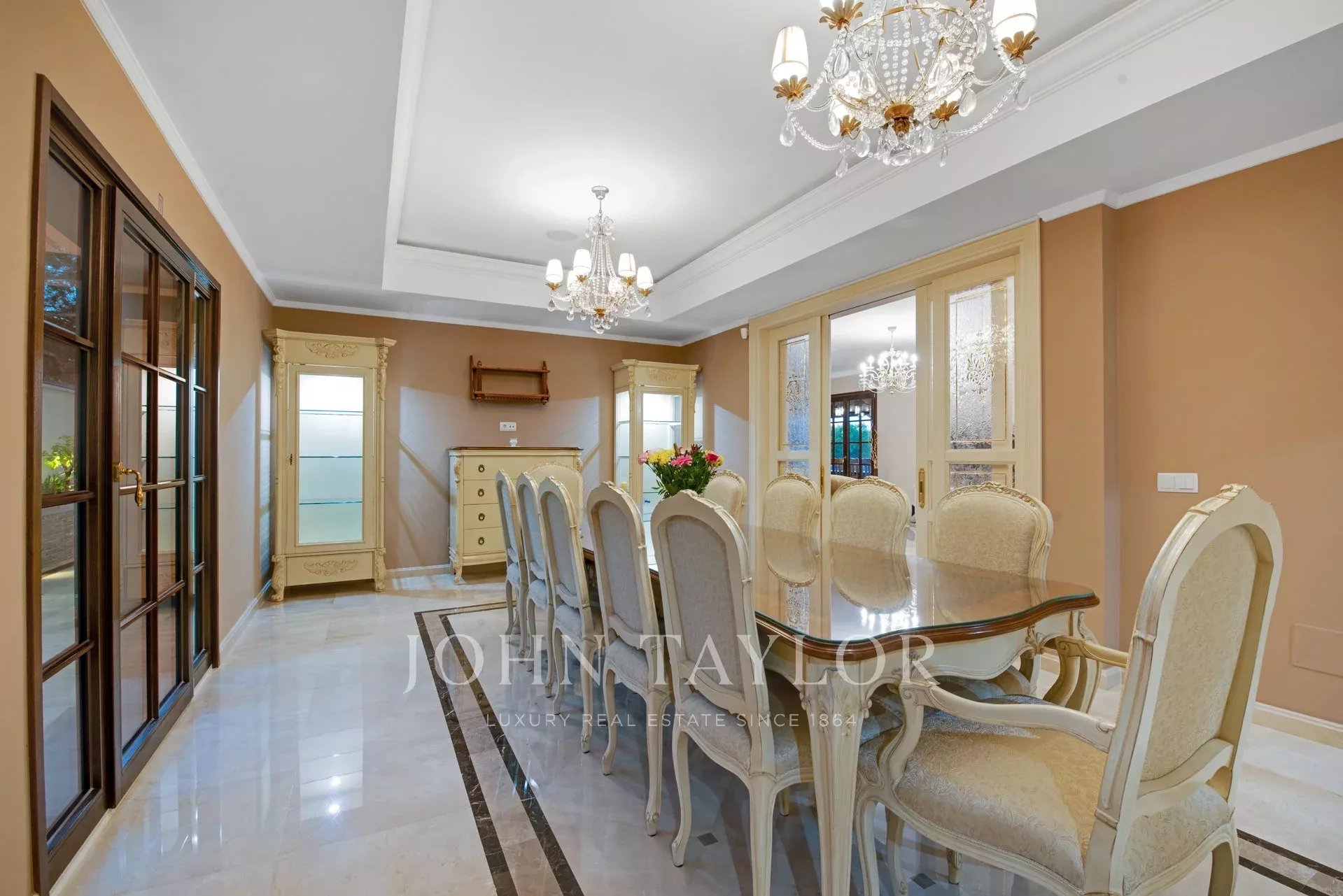 La casa viene venduta completamente finita, i suoi interni luminosi sono realizzati in uno stile classico unico utilizzando materiali di altissima qualità, completati da mobili italiani su misura, che conferiscono alla casa calore e comfort, aiutando a rilassarsi e a dimenticare il trambusto del mondo esterno.