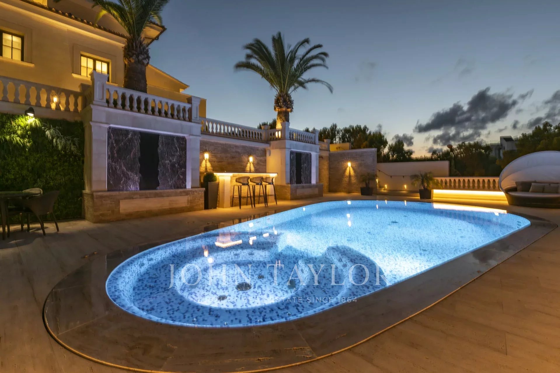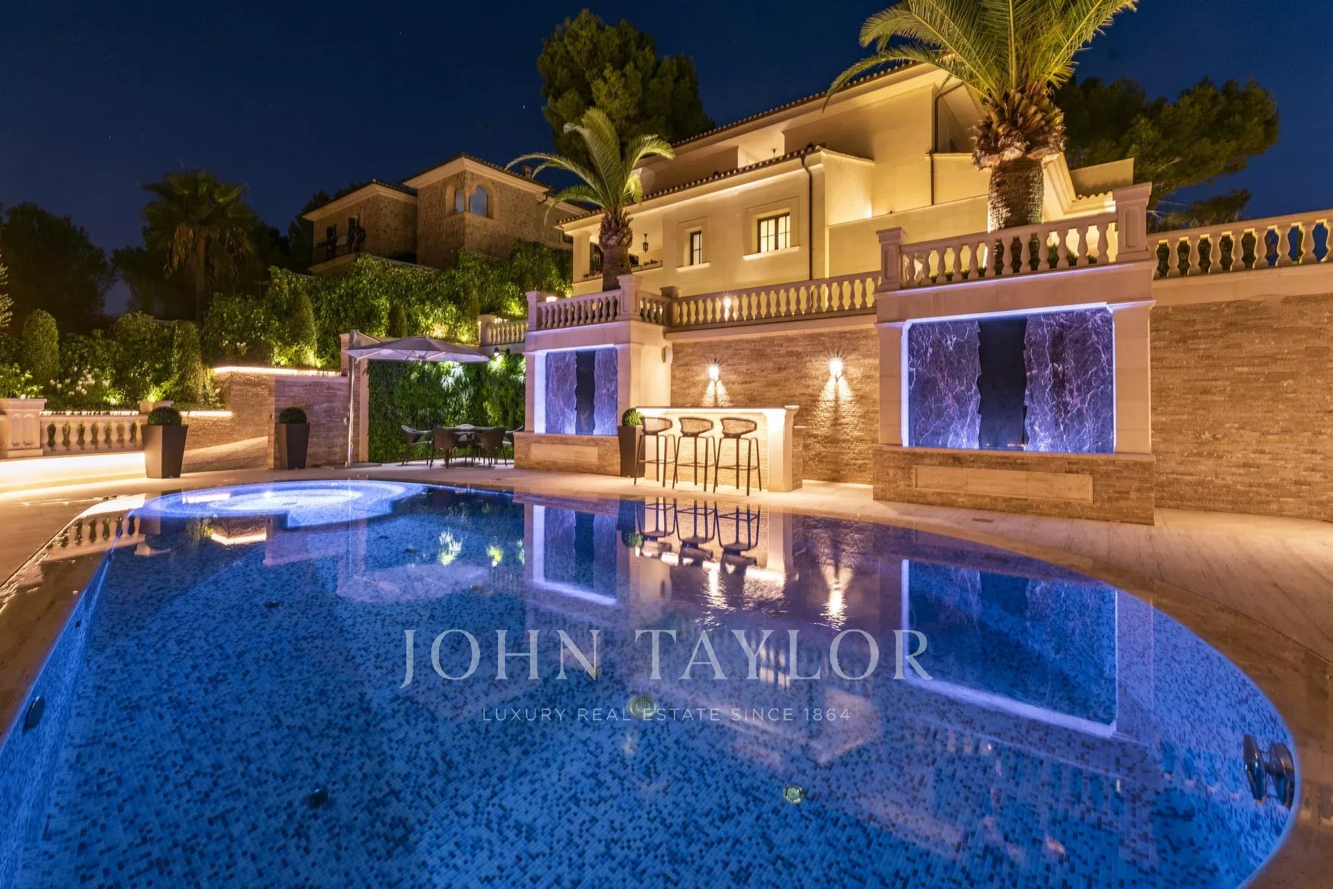 D'altra parte, vale la pena sottolineare il giardino e la zona piscina con bar, cascate, jacuzzi, piscina riscaldata che consente l'uso anche a novembre e marzo, illuminazione paesaggistica adattiva che conferisce alla casa un aspetto speciale elegante e festoso. La casa è dotata delle più moderne tecnologie, un avanzato sistema di domotica permette di controllare il riscaldamento a pavimento, l'aria condizionata, la musica e l'illuminazione da tablet o Ipad in ogni stanza e terrazza, il sistema di purificazione dell'acqua a osmosi purifica e disinfetta tutta l'acqua della casa, la piscina è dotata di elettrolisi e di un sistema di purificazione dell'acqua a luce ultravioletta, un avanzato sistema di sicurezza vi permetterà inoltre di rilassarvi e godervi le vostre vacanze a Maiorca senza alcuna preoccupazione.