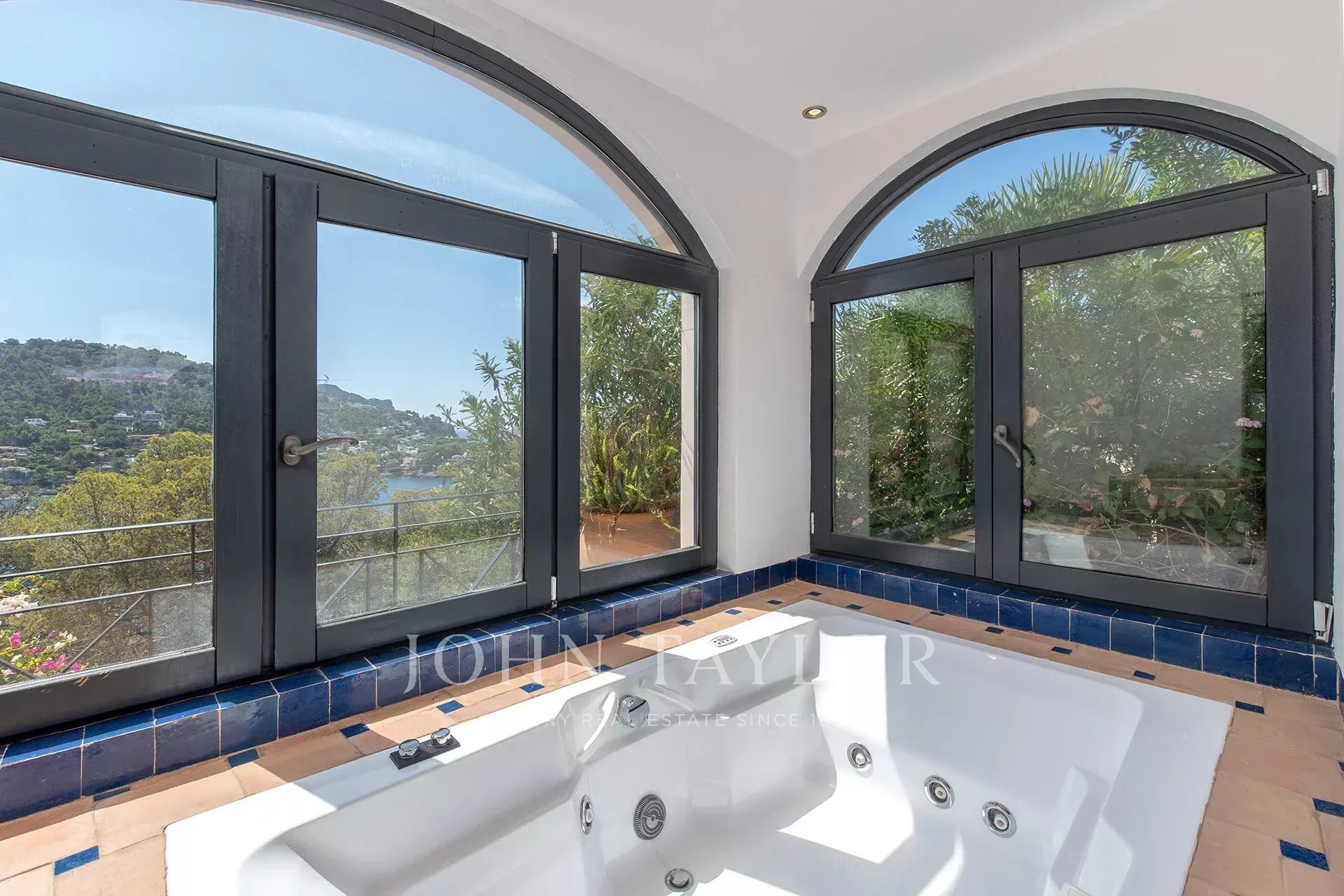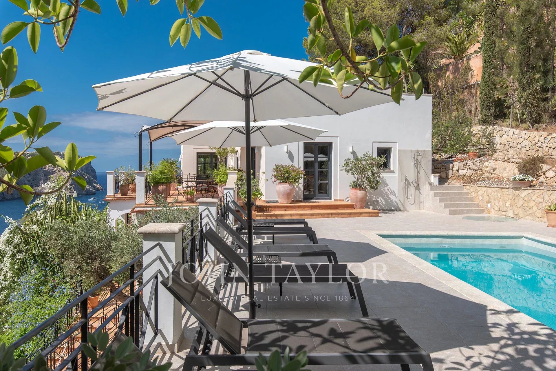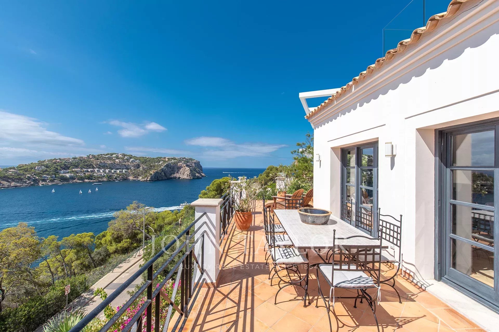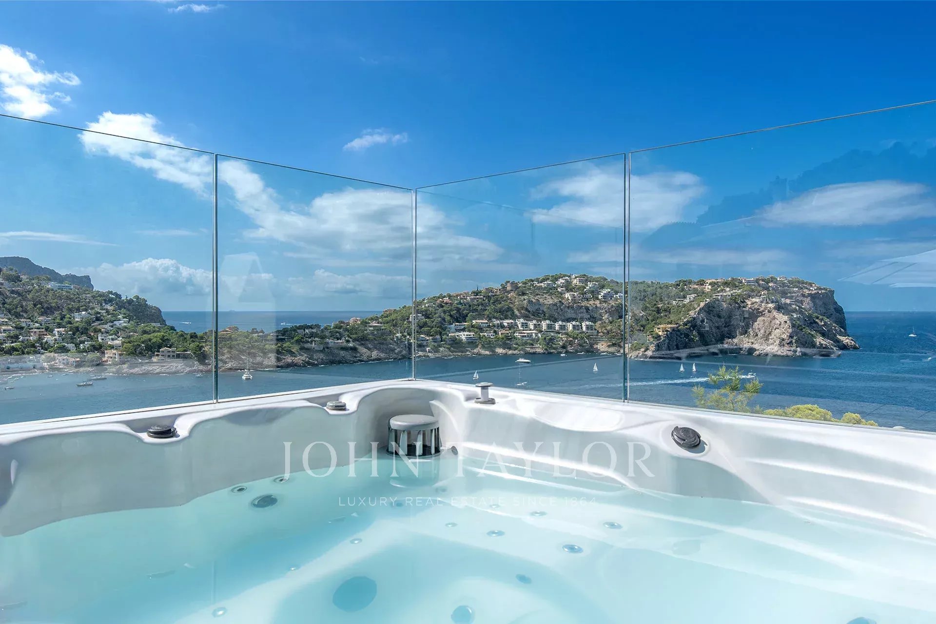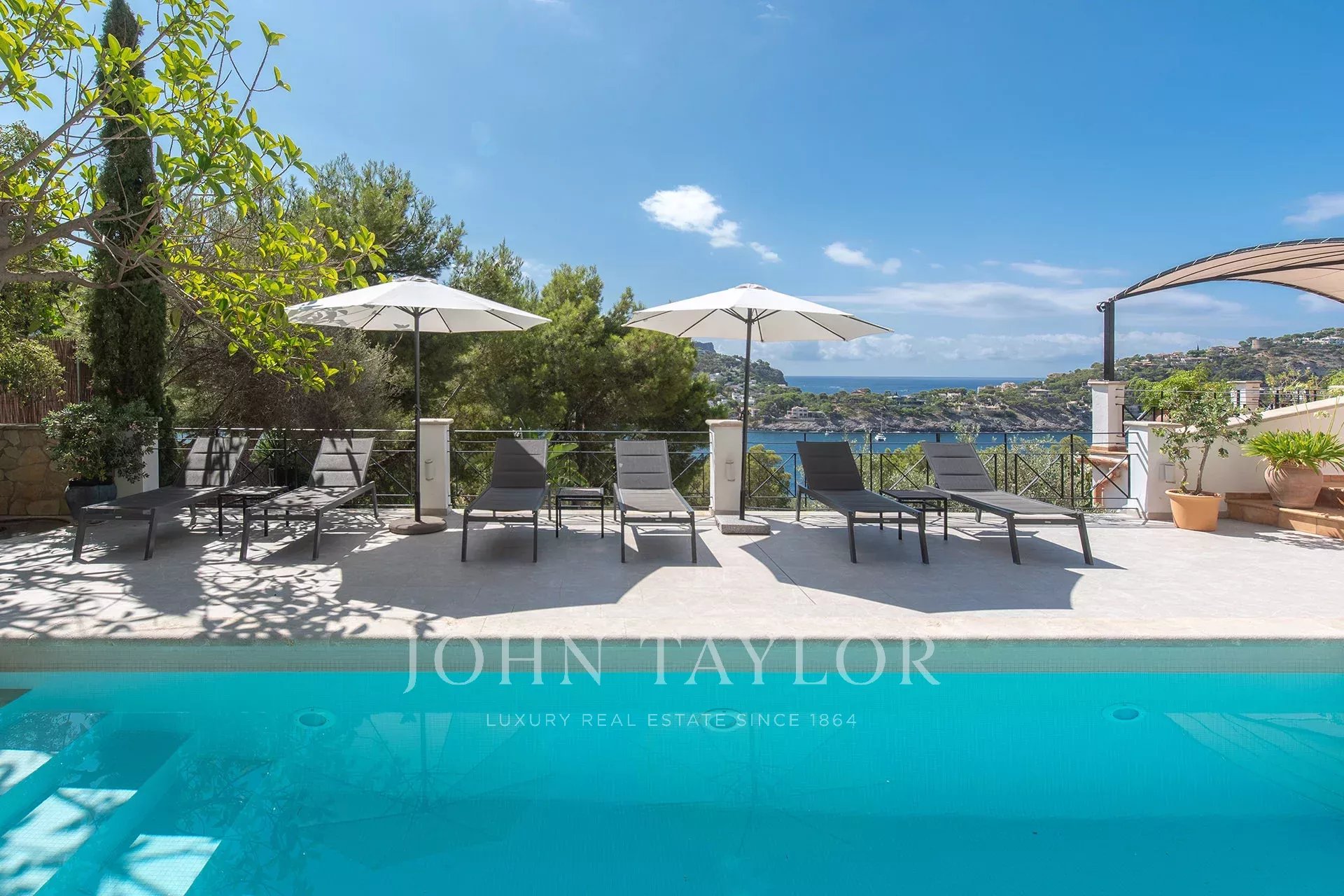Scoprite questa straordinaria residenza situata in prima linea nell'esclusivo Puerto de Andratx, dove le viste mozzafiato sulla baia diventano la cornice perfetta per una vita di comfort e raffinatezza. Con una superficie costruita di 321 m², questa proprietà fonde magistralmente il tradizionale fascino mediterraneo con un design contemporaneo e funzionale, creando un rifugio ideale per la vita familiare e l'intrattenimento. La proprietà offre sei accoglienti camere da letto, tutte con bagno privato, e un totale di sette bagni, garantendo spazio e privacy a tutti i membri della famiglia e ai loro ospiti. All'esterno, le generose terrazze di 285 m² invitano al relax, con una piscina di acqua salata di 30 m² e una vasca idromassaggio sul tetto con vista panoramica sul mare. Gli interni sono caratterizzati da una luminosa zona giorno a pianta aperta che si fonde armoniosamente con una cucina spaziosa ed elegante, progettata per godere della vista ininterrotta. La villa è stata accuratamente arredata con dettagli di alta qualità come finestre e persiane in legno, pavimenti in pietra naturale con riscaldamento a pavimento, aria condizionata, camino e armadi a muro. I servizi aggiuntivi includono due posti auto, un'area barbecue, una lavanderia, un ripostiglio e un giardino lussureggiante che completa questa oasi da sogno. Contattateci per fissare una visita privata di questa proprietà esclusiva.