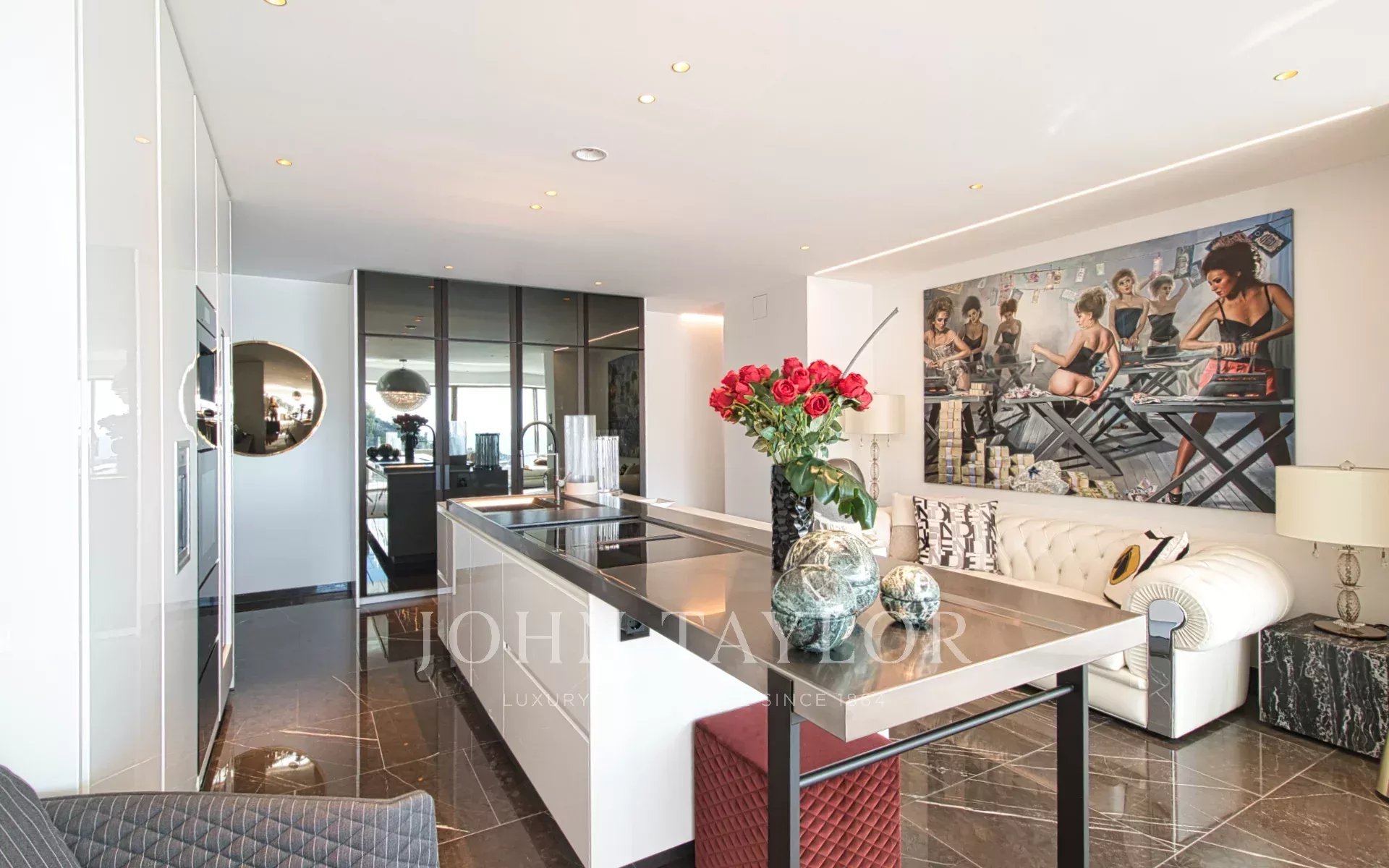 Salite con l'ascensore alla terrazza sul tetto di 151 m², un rifugio esclusivo progettato per il tempo libero e il piacere.