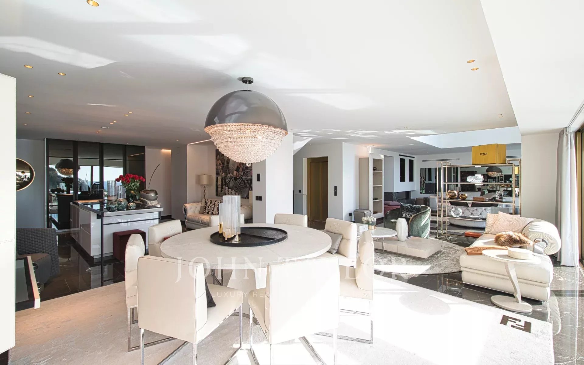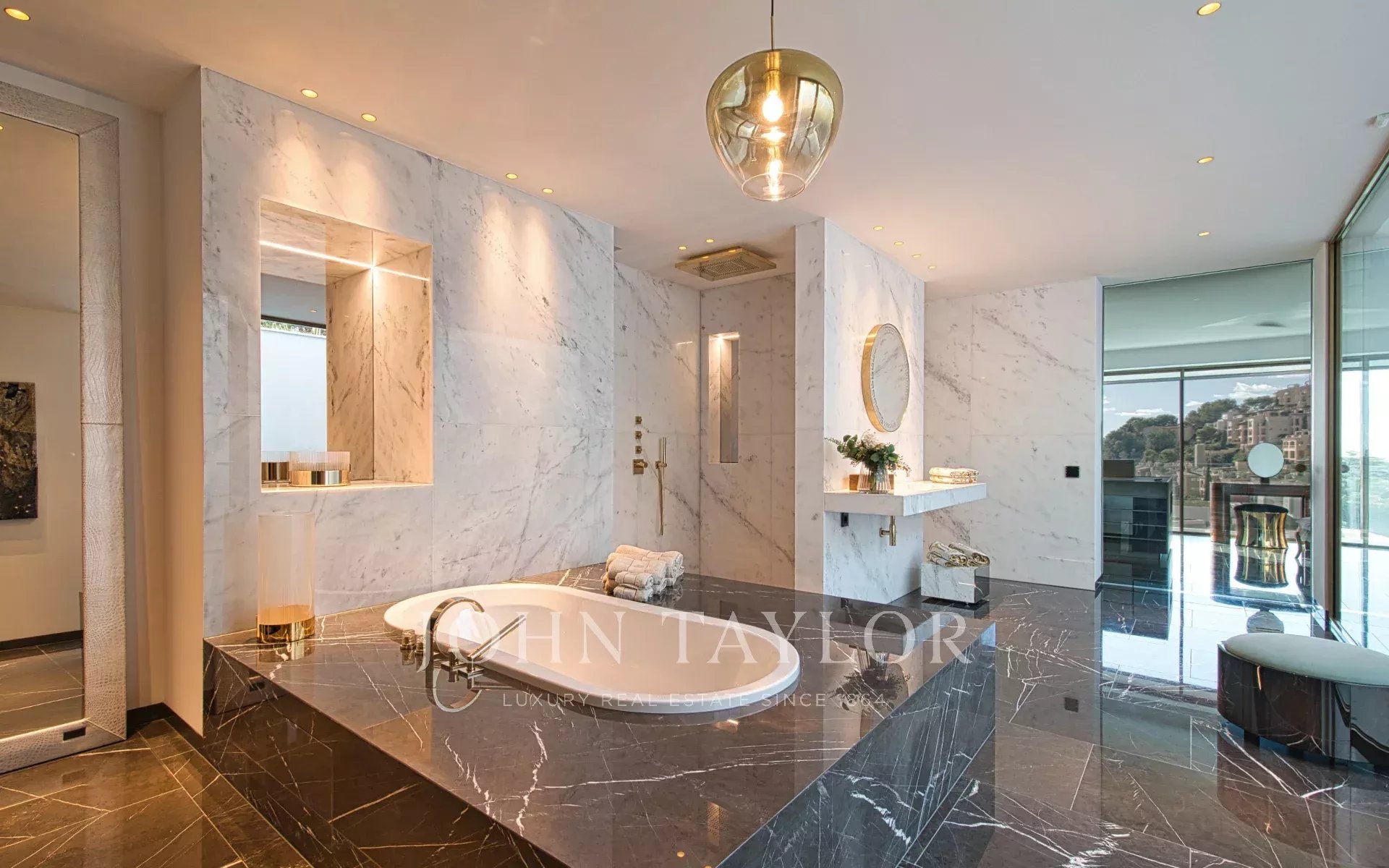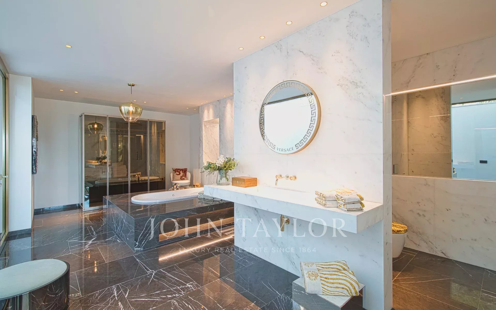 Tre eccezionali varietà di marmo definiscono l'estetica distintiva della villa. Gli arredi di Fendi Casa e Bentley Home (per un valore di 1,2 milioni di euro) completano questo capolavoro di interior design contemporaneo.