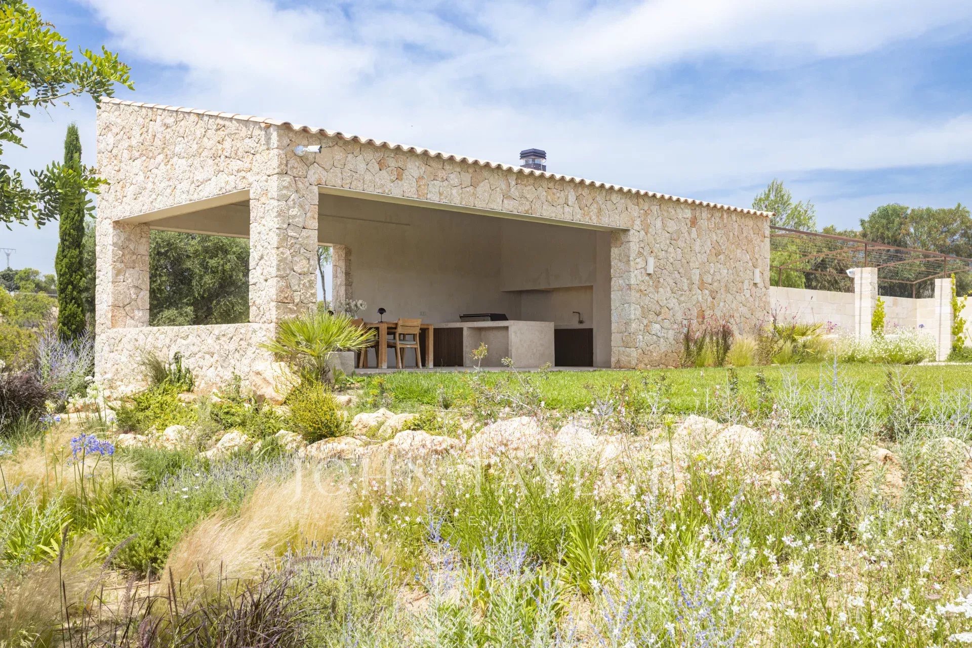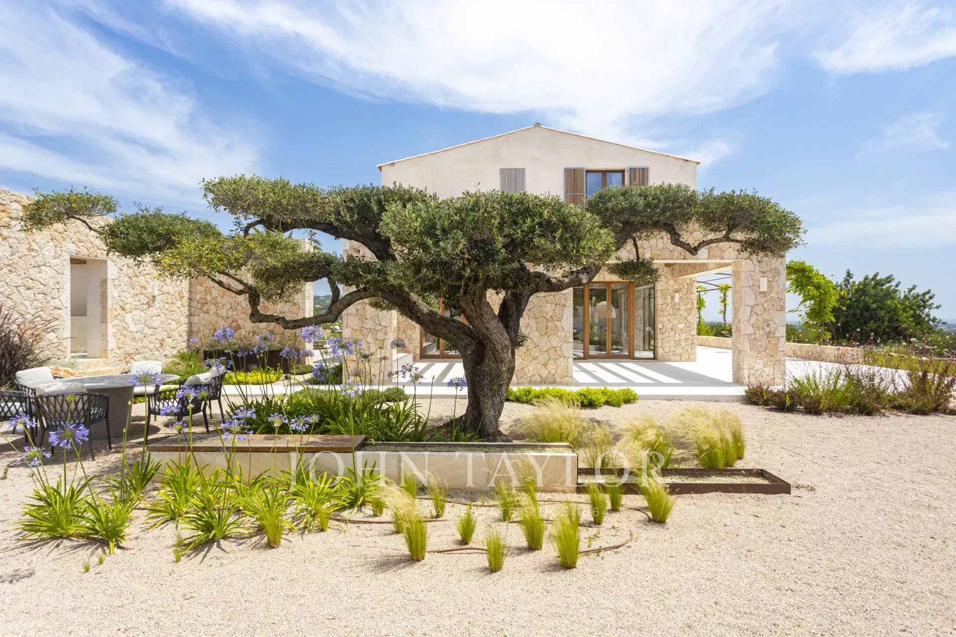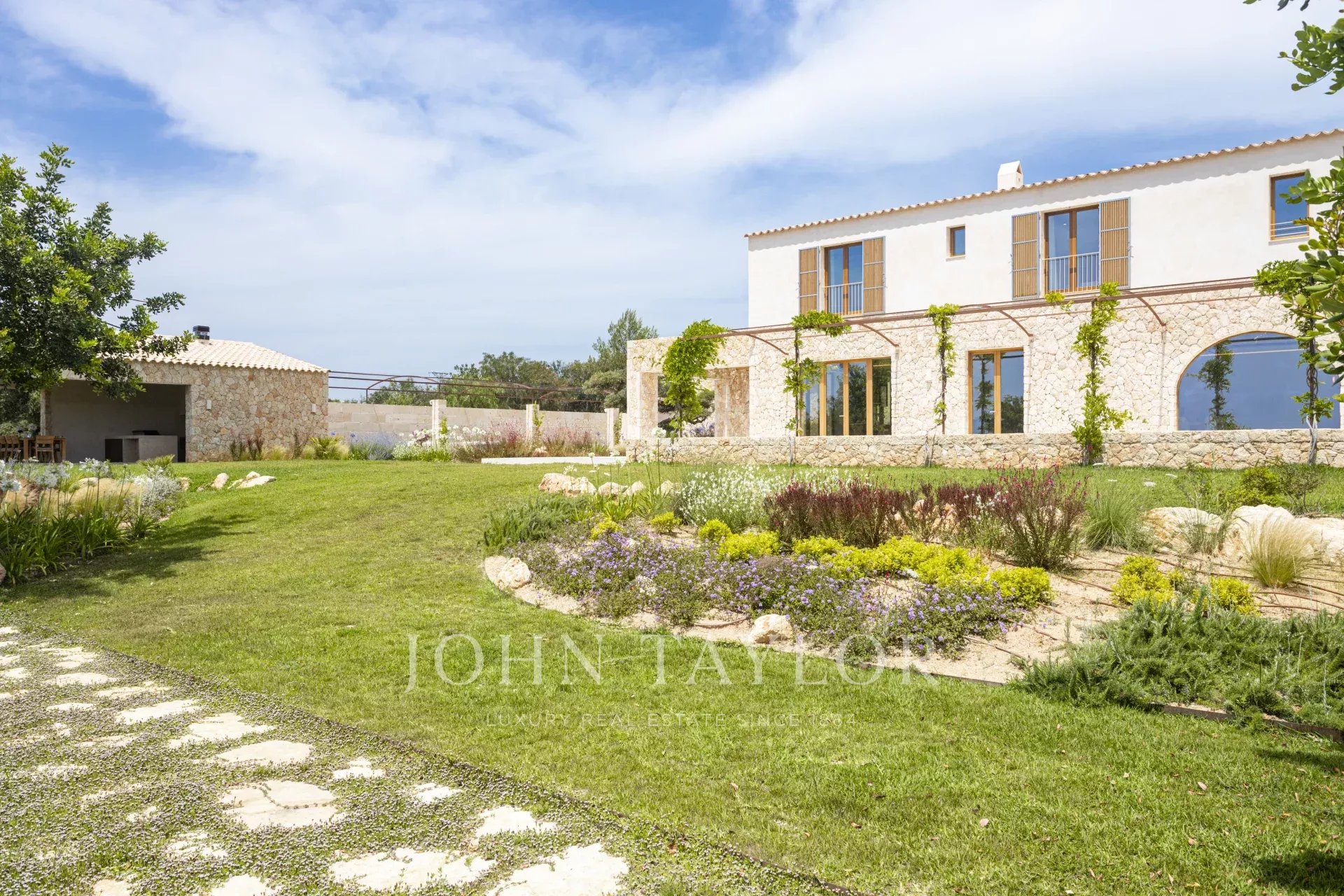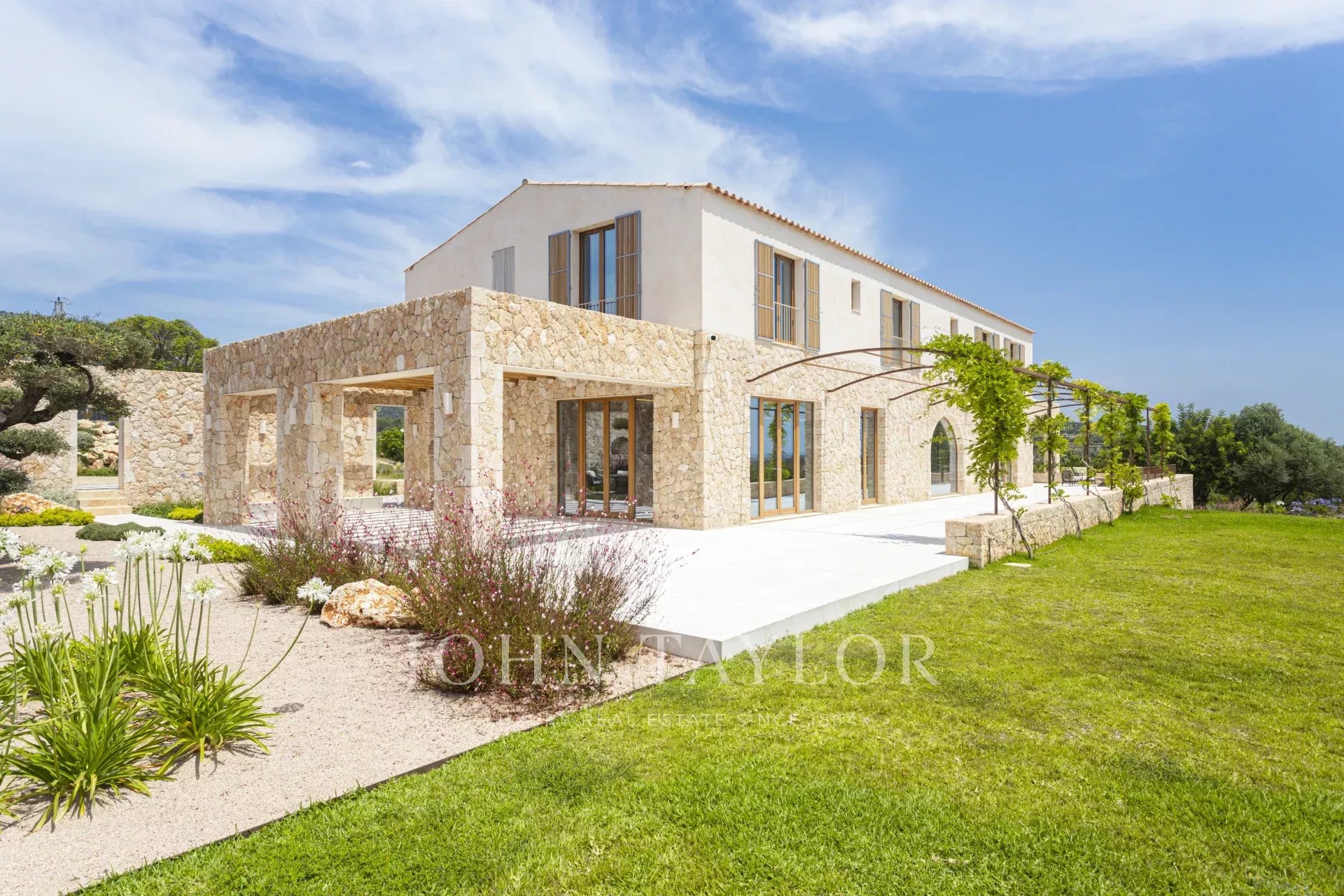 Le caratteristiche e le finiture esclusive di questa proprietà includono piastrelle in pietra naturale marfil in tutto il piano terra e il primo piano, riscaldamento a pavimento in tutte le stanze, boiserie in legno di quercia su misura e lavandini artigianali in pietra naturale in tutti i bagni, rubinetti e docce di design di VOLA, sistema di pannelli solari (circa 30 KW) per l'energia sostenibile, ampio spazio per la piscina e il bagno. 30 KW) per l'energia sostenibile, grande piscina con locale tecnico e deposito dedicato, impianto audio SONOS in diversi punti esterni, barbecue con doppia griglia (gas e carbone), due fontane esterne con sistemi di pulizia e pompa indipendenti, circa 3.750 m² di vigneto piantato con varietà di uva prensal, affidato a un'azienda vinicola locale - con una produzione di circa 40 bottiglie all'anno, facciate in pietra naturale intagliata a mano per un'architettura senza tempo e architettura del paesaggio di NONAM