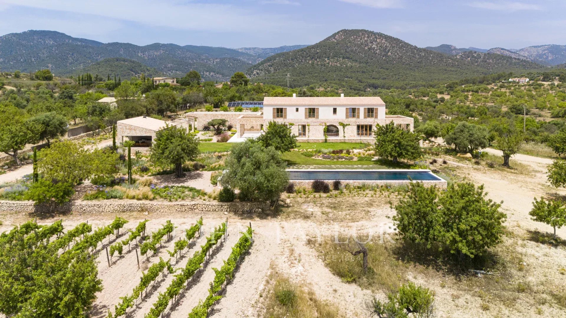 Situata su un ampio terreno con viste panoramiche mozzafiato sul vigneto privato, sull'aperta campagna e sulle maestose montagne Tramuntana, "Son Blai" è l'ideale per chi cerca privacy, natura e raffinatezza, a breve distanza da Palma di Maiorca.