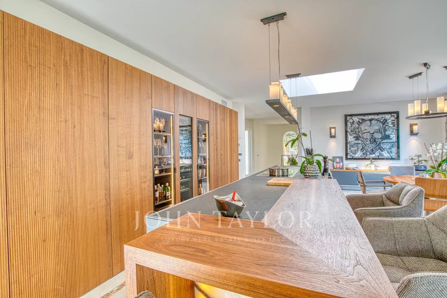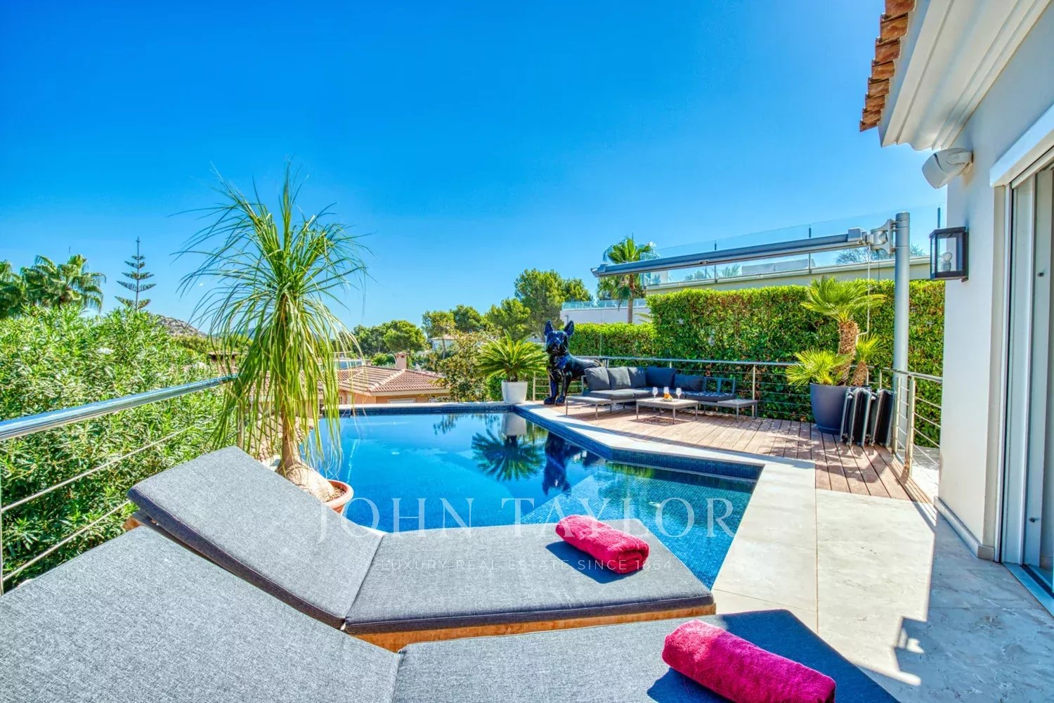 Questa attraente villa familiare con vista sul mare è stata ristrutturata all'inizio del 2017 secondo gli ultimi standard di costruzione con materiali di alta qualità. Si trova in una delle migliori zone residenziali esclusive, a La Ensaimada. Al livello d'ingresso si trova un ampio soggiorno-sala da pranzo con una cucina di lusso a pianta aperta del marchio Leicht con elettrodomestici Gaggenau e Miele, adiacente a una dispensa e a una seconda cucina. Dal soggiorno si accede al piano terra alla grande terrazza con vista sul mare e alla piscina riscaldata. Inoltre, su questo livello, si trovano una camera da letto principale con bagno privato e spogliatoio, un ripostiglio, uno studio e un bagno per gli ospiti. Il piano inferiore offre altre 2 camere matrimoniali con bagno privato, un altro bagno e una palestra con sauna che può essere convertita in una quarta camera da letto, oltre a un garage di 38 m2 accessibile dalla casa. Ulteriori caratteristiche sono l'aria condizionata, il riscaldamento a pavimento con pompa di calore, le finestre in alluminio con doppi vetri, le persiane, il sistema di controllo computerizzato della casa, l'allarme e il citofono, l'impianto di osmosi, l'impianto di decalcificazione e Internet.