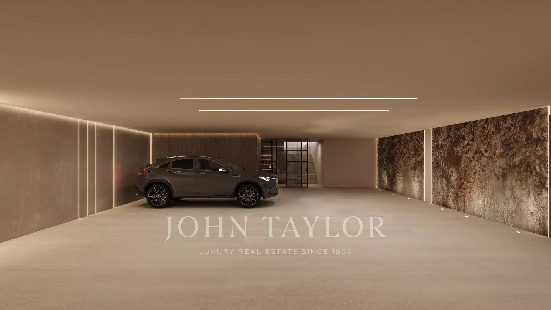 Un ascensore che collega tutti i livelli della casa conduce a un seminterrato con cantina, palestra e parcheggio per 3 auto.
