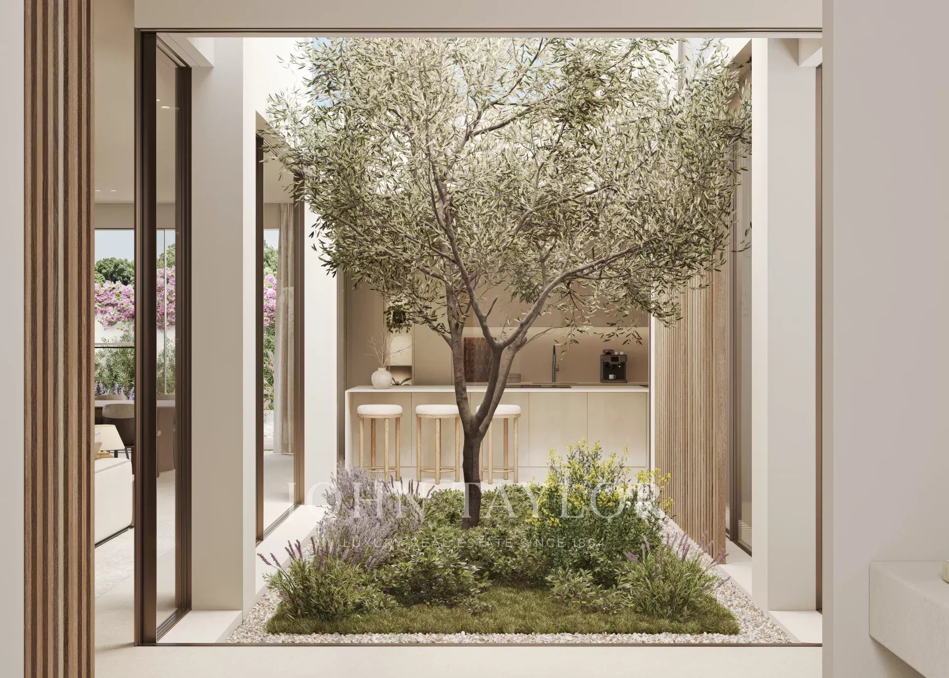 La proprietà offre al piano terra un ampio soggiorno/sala da pranzo con un accogliente camino che si collega perfettamente con il portico, la terrazza e la zona piscina. Su questo piano si trova anche una camera da letto con bagno privato. Al piano superiore si trovano 2 camere da letto con bagno en suite e una spettacolare suite padronale.