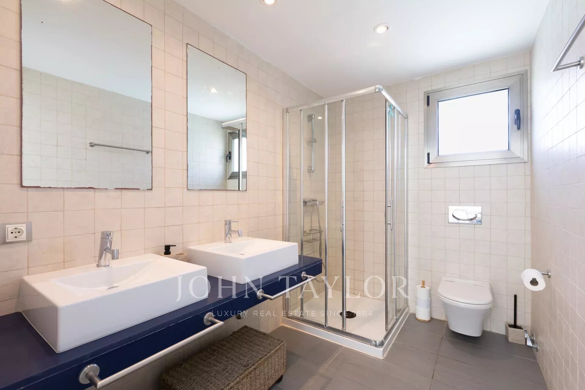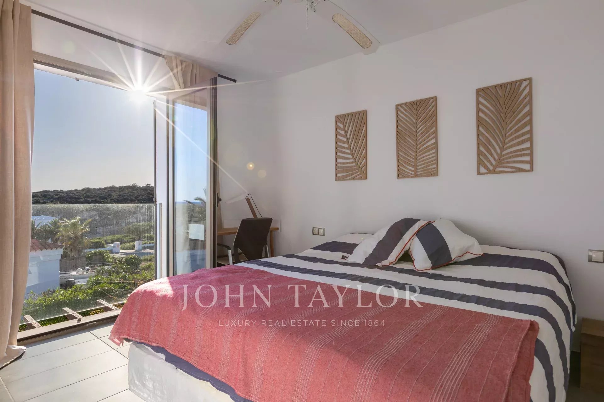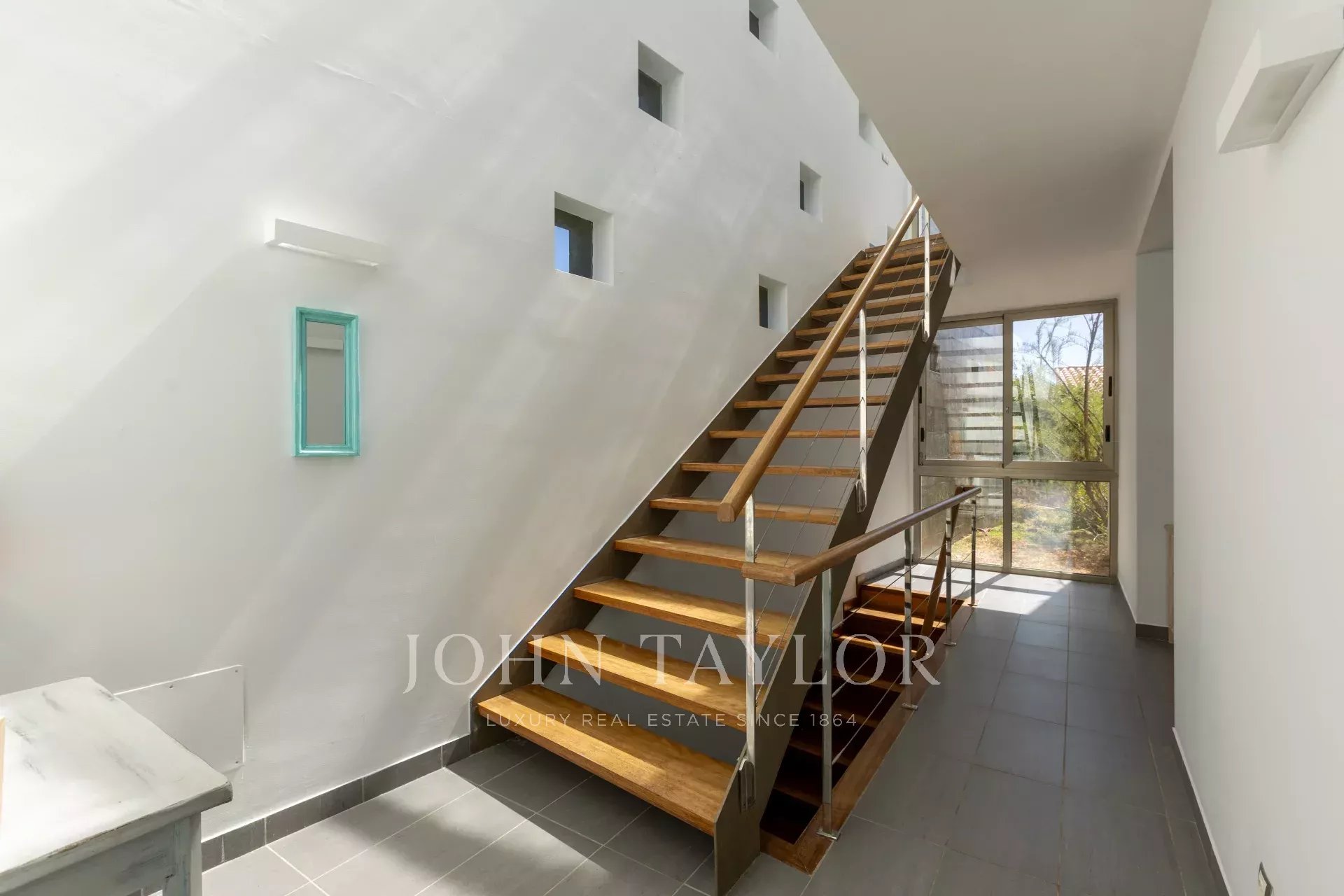 Al primo piano si trovano altre due camere matrimoniali con vista sul mare, un secondo bagno completo e l'accesso a una spettacolare terrazza di 70 m². Questo spazio offre un ambiente privilegiato per rilassarsi, godersi la brezza marina e contemplare le impareggiabili viste panoramiche.