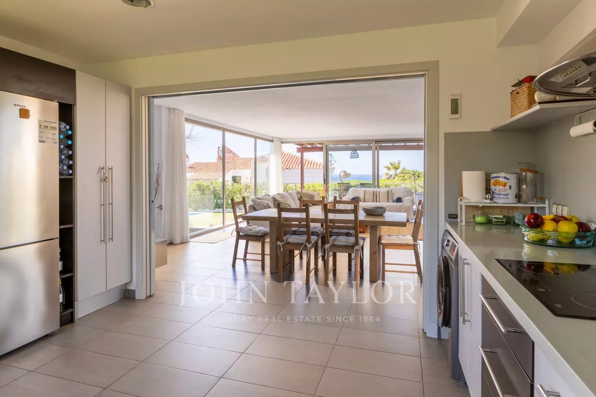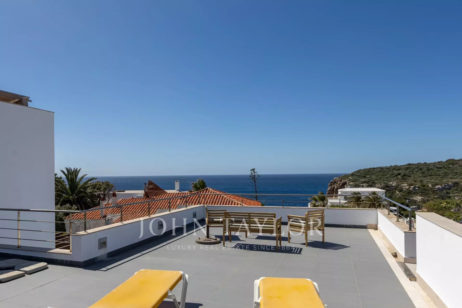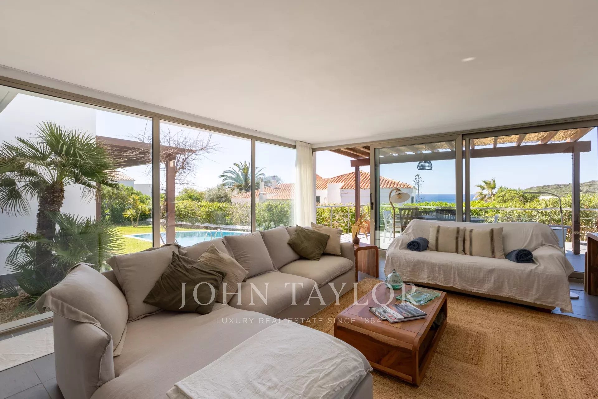 Al primo piano si trovano altre due camere matrimoniali con vista sul mare, un secondo bagno completo e l'accesso a una spettacolare terrazza di 70 m². Questo spazio offre un ambiente privilegiato per rilassarsi, godersi la brezza marina e contemplare le impareggiabili viste panoramiche.