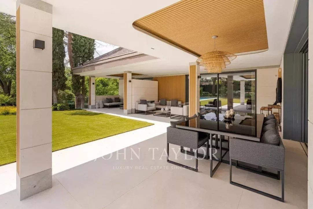 Situata in una delle arterie più rappresentative di La Moraleja, questa spettacolare villa di recente ristrutturazione si trova su un magnifico terreno di circa 2.800 m², offrendo circa 1.000 m² di superficie interna e più di 100 m² di terrazze coperte.