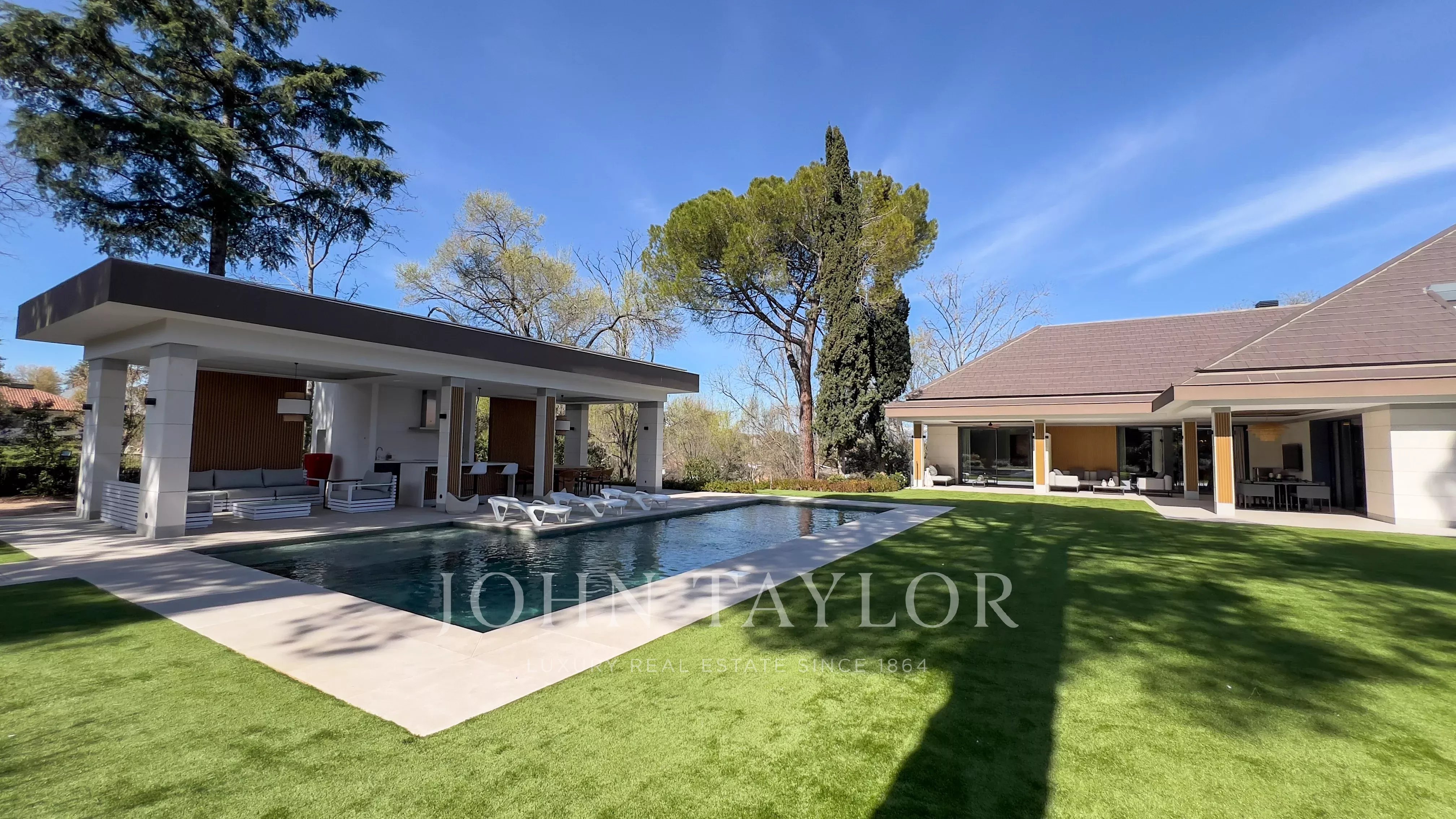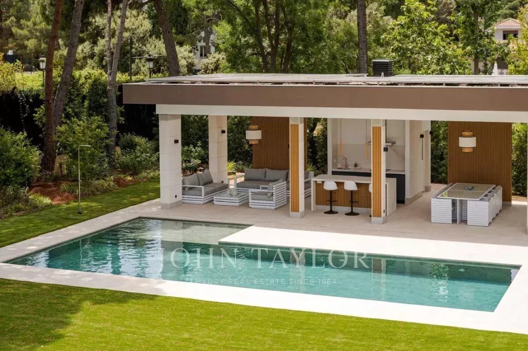 Il giardino, con alberi consolidati, piscina esterna e zona chill-out, completa questa proprietà che combina eleganza, privacy e comfort in uno dei quartieri residenziali più esclusivi di Madrid.