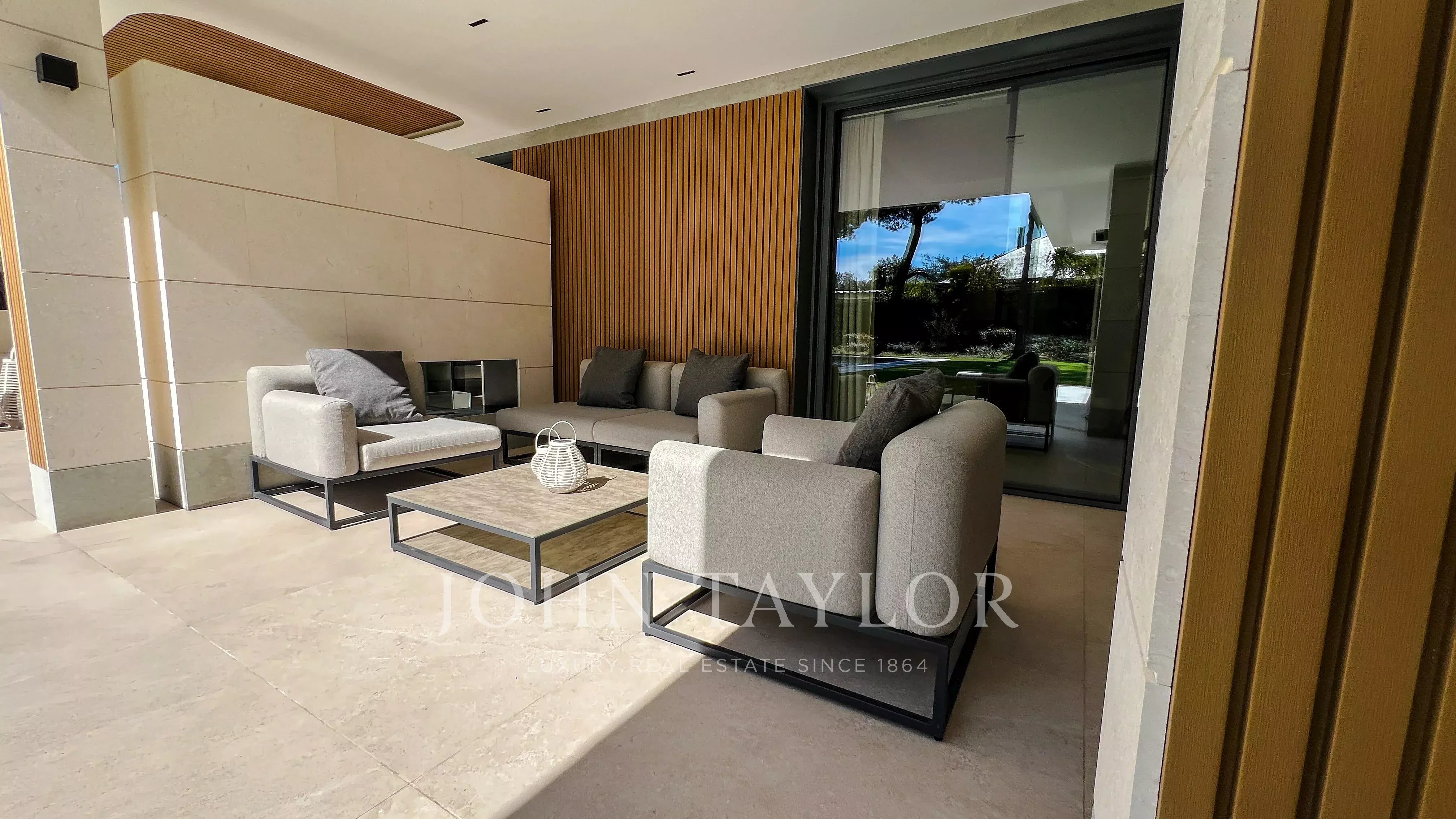 Il piano superiore dispone di tre camere da letto aggiuntive, due delle quali in suite con guardaroba e tutte con accesso a terrazze con vista sul giardino.