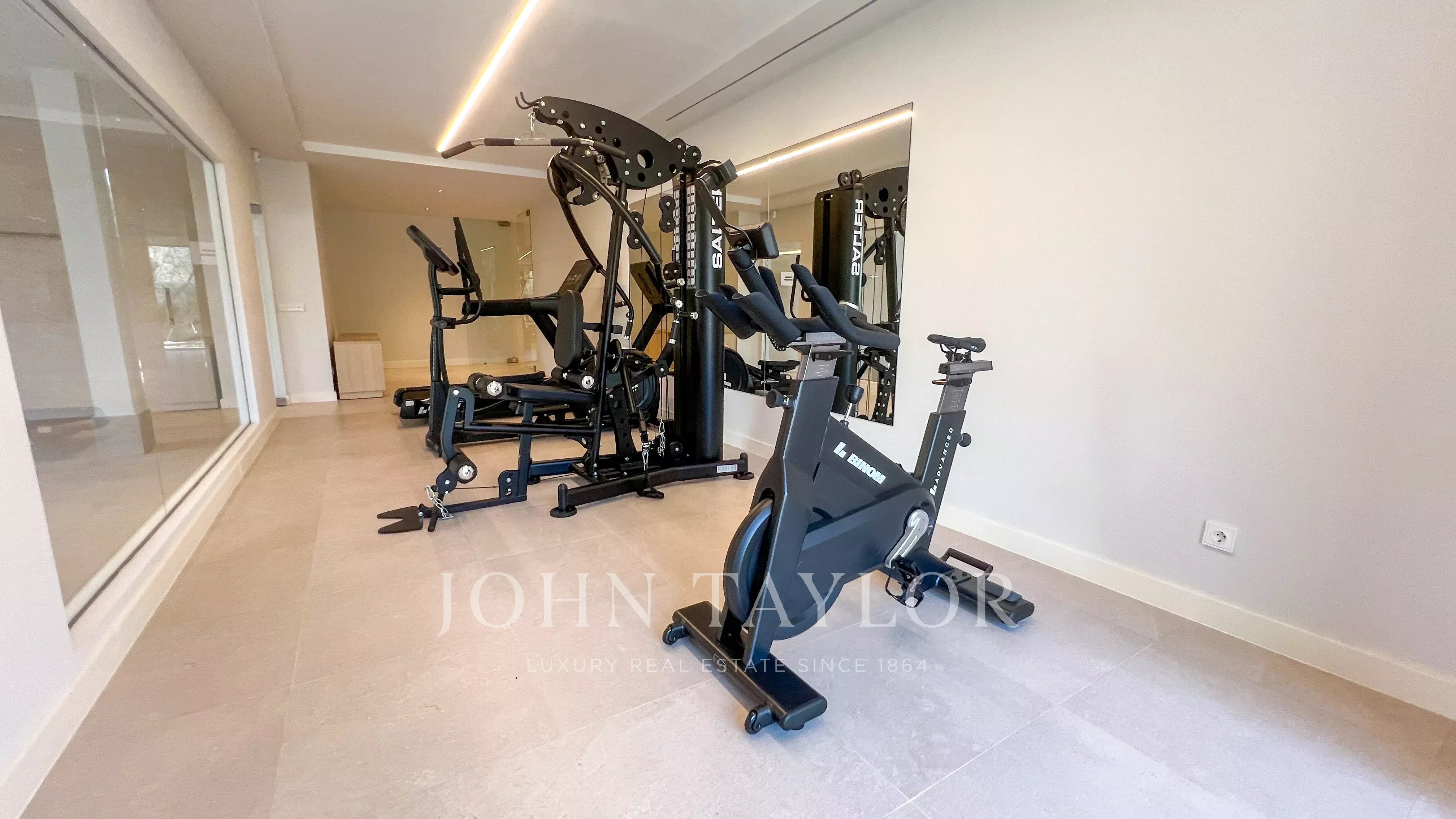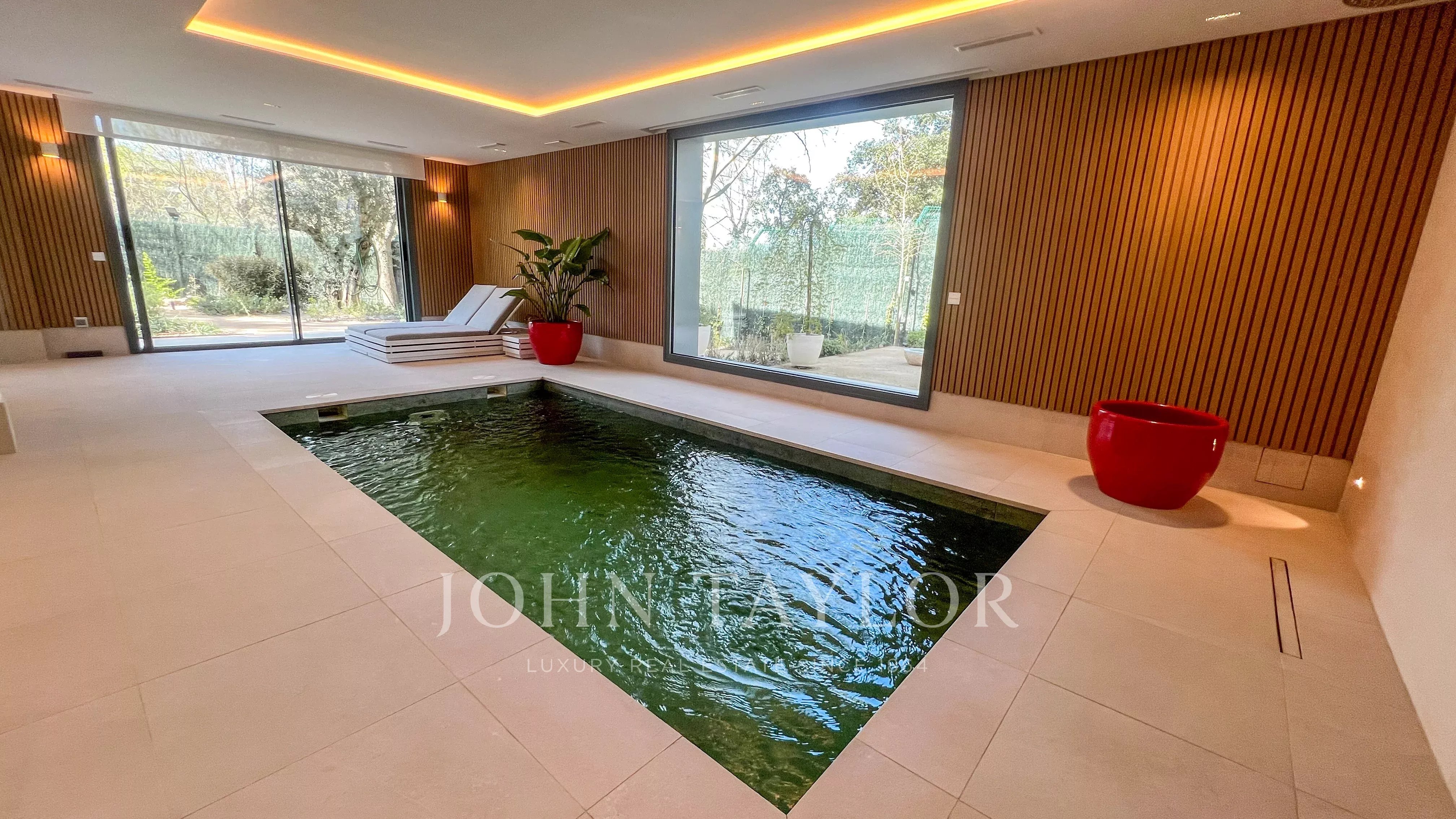 Il livello inferiore è destinato al tempo libero e al benessere, con sala cinema, piscina coperta con palestra, sauna, sala massaggi, cantina, ripostiglio e garage con preinstallazione per caricatore elettrico.