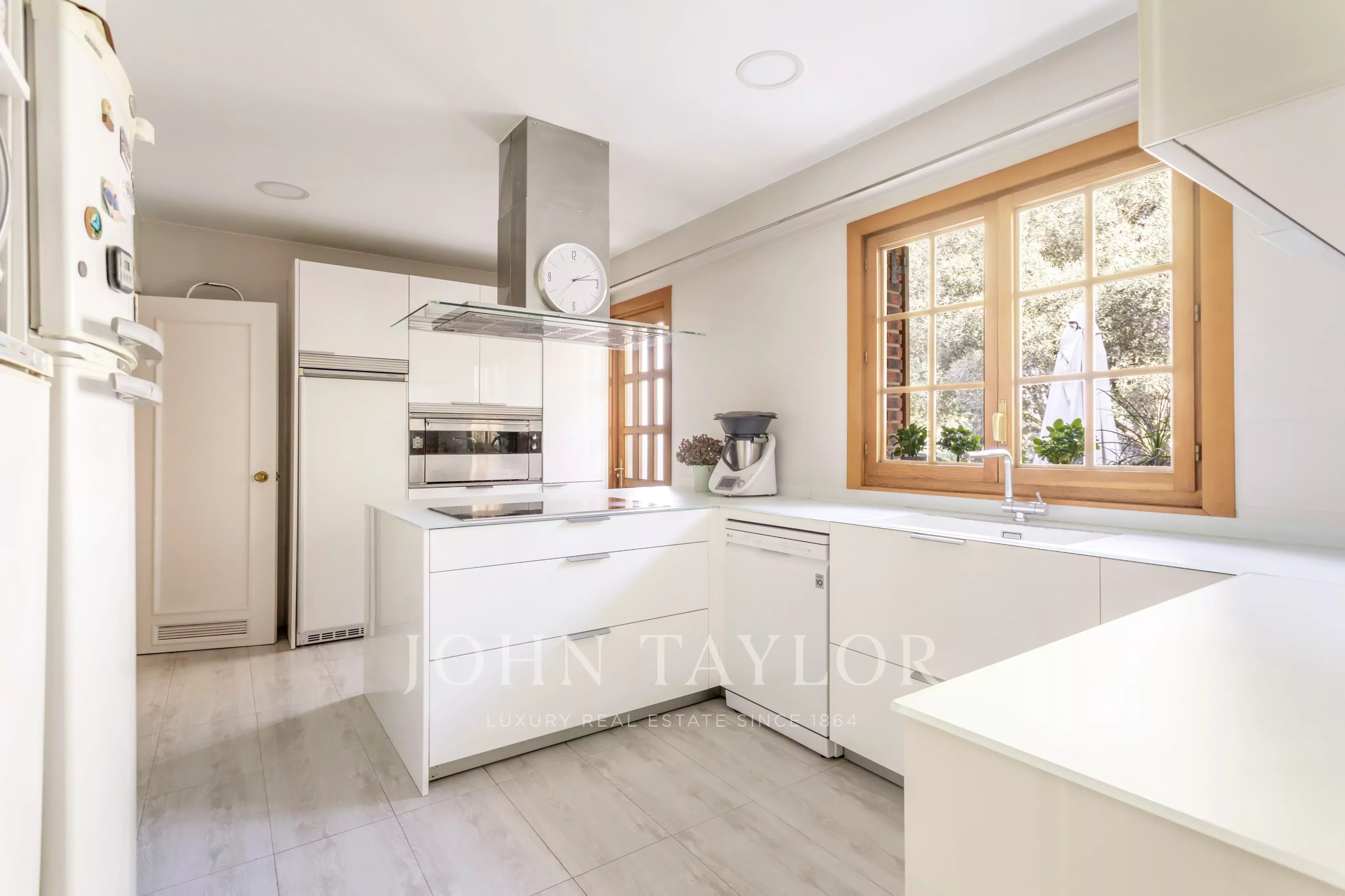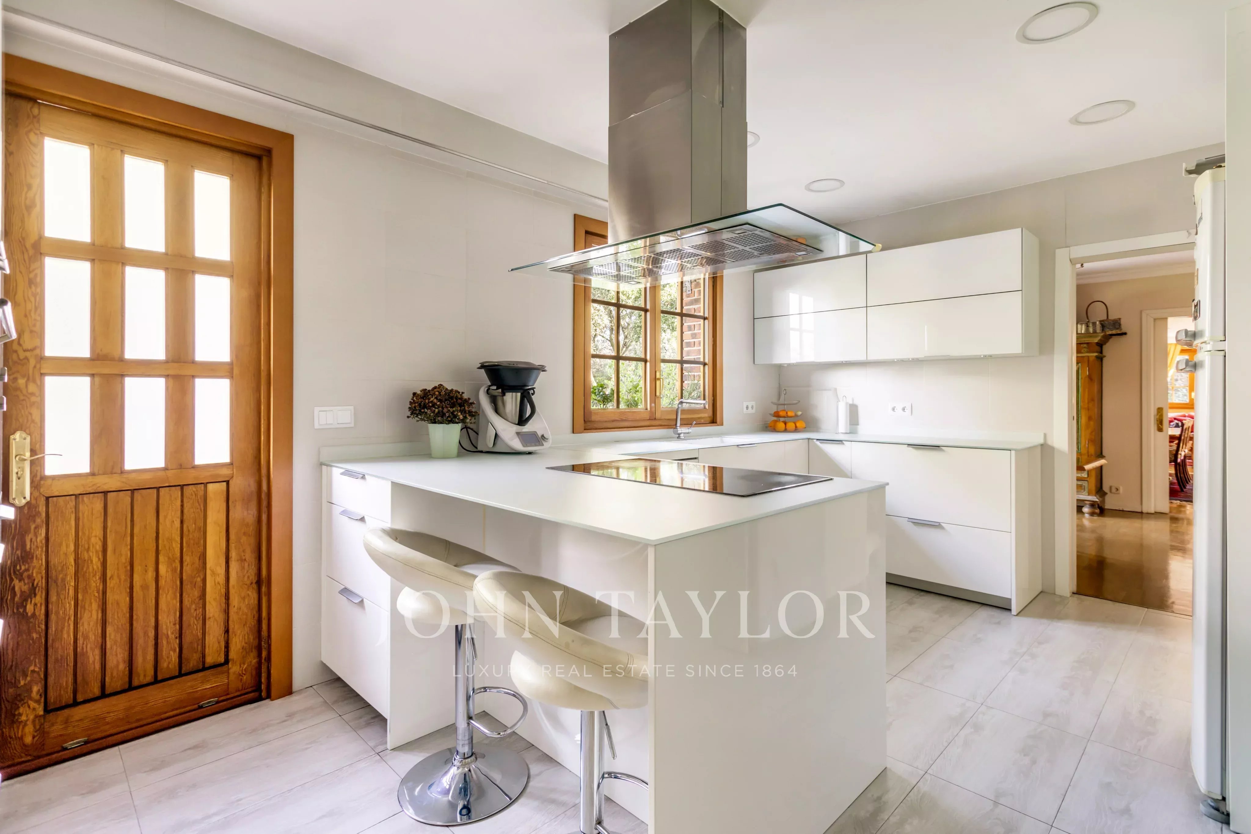 Al piano d'ingresso, un ampio ingresso a doppia altezza, un grande soggiorno, una sala da pranzo, una cucina, una sala da pranzo familiare, un bagno per gli ospiti e una stanza per la cameriera con bagno. Sullo stesso piano, una camera familiare o un ufficio e la camera da letto principale con bagno privato e spogliatoio. Al primo piano, cinque camere da letto e due bagni, con possibilità di realizzare altri bagni. Grande terrazza con vista sul terreno.