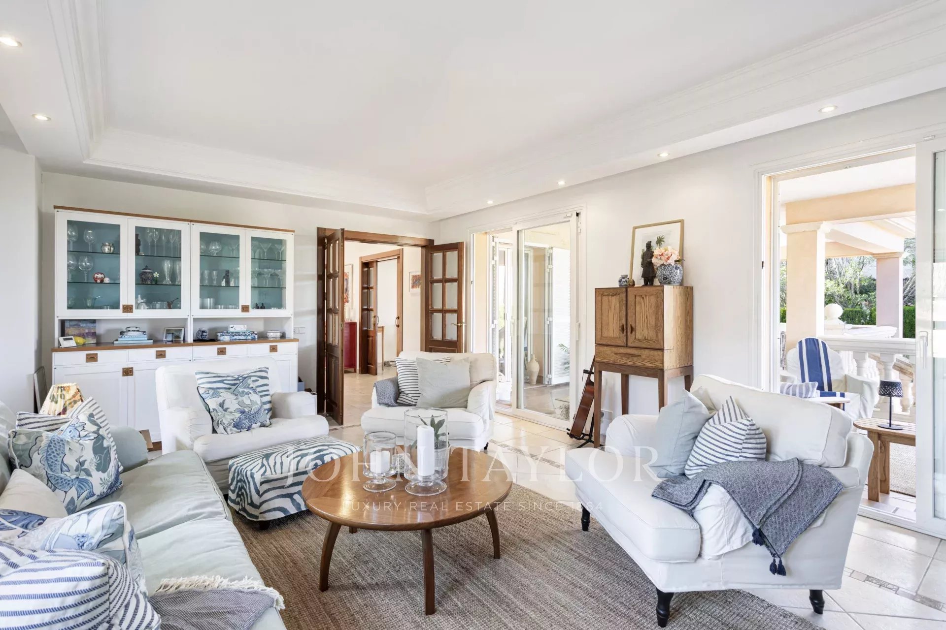 Entrate in un'accogliente area di ricevimento che si apre in un luminoso e spazioso soggiorno-sala da pranzo, dotato di un accogliente caminetto, perfetto per le riunioni di famiglia. La cucina completamente attrezzata offre uno spazio separato per pranzare e lavorare, ideale per una vita moderna. La zona giorno si apre su un'ampia terrazza aperta e coperta che conduce direttamente al giardino privato.