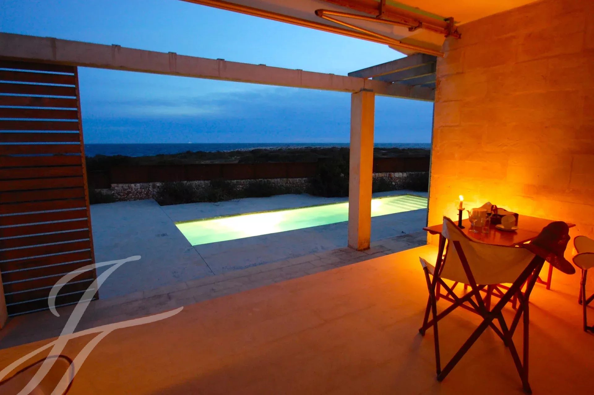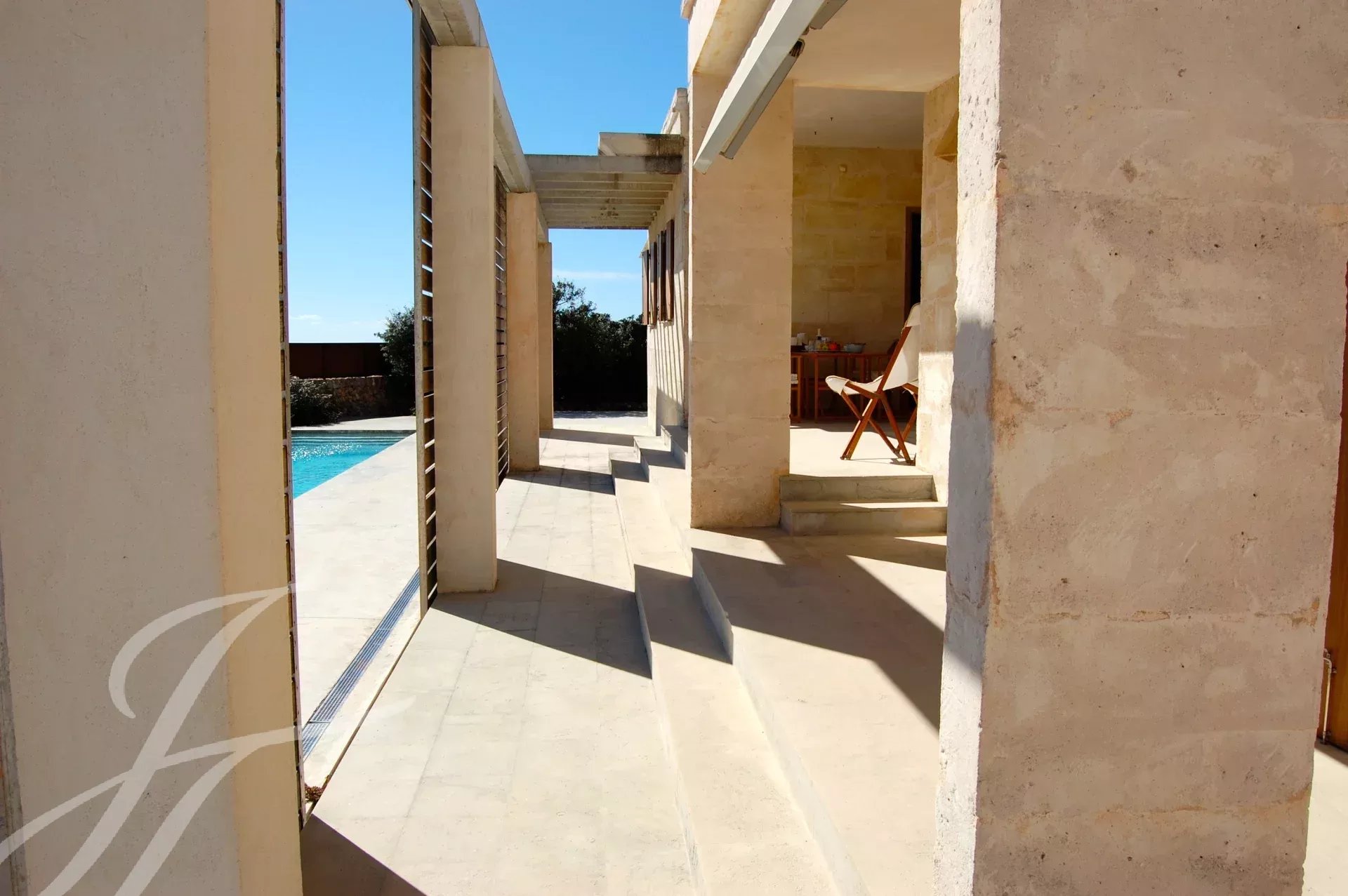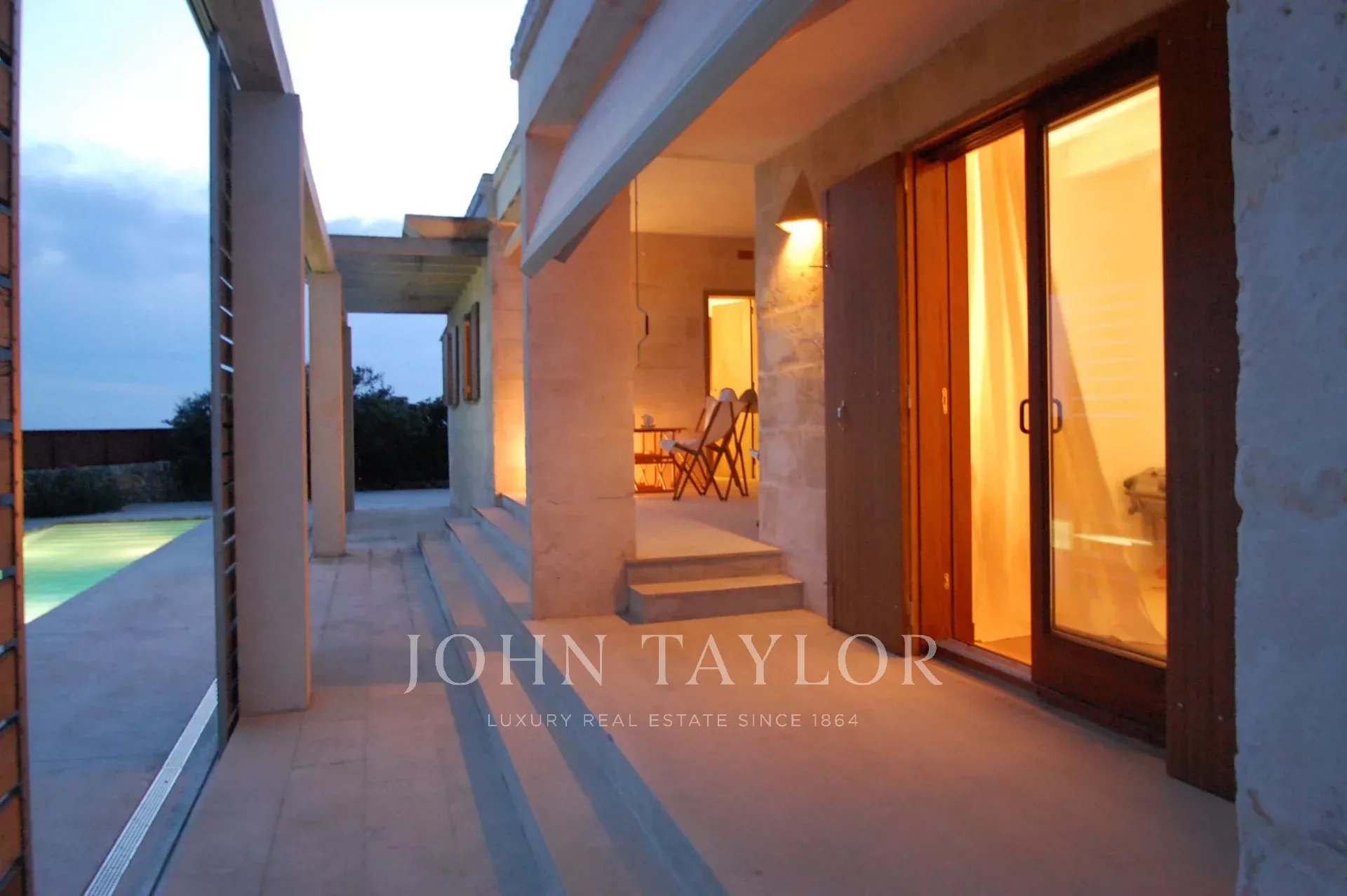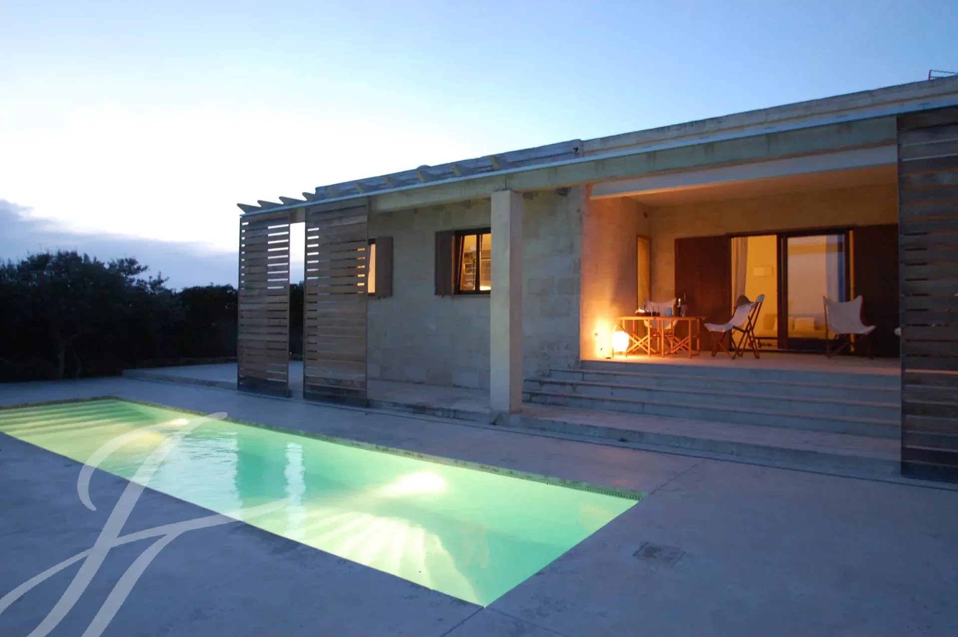 Le grandi finestre scorrevoli permettono alla luce naturale di illuminare l'interno, collegando in modo armonioso gli spazi indoor con quelli all'aperto. All'esterno, la piscina privata rappresenta il luogo ideale per rilassarsi e godere della splendida vista panoramica. L'ampia terrazza offre uno spazio perfetto per cene all'aperto o momenti di svago in famiglia.