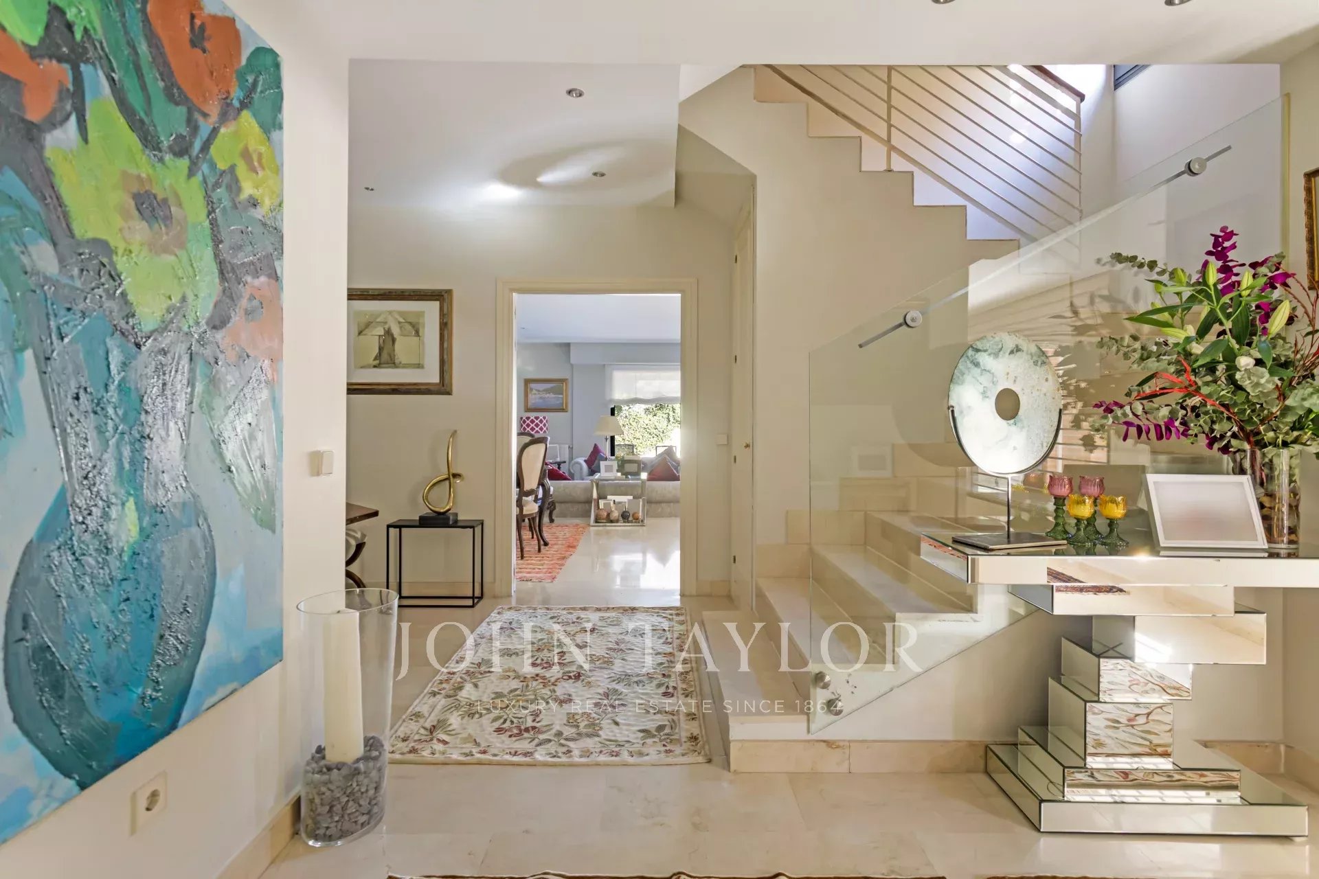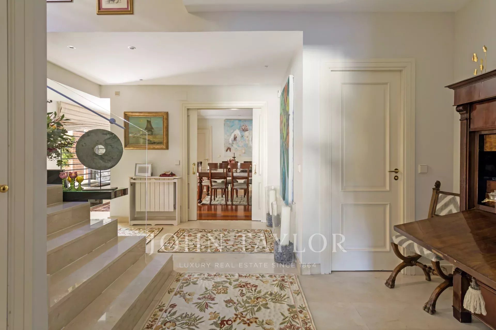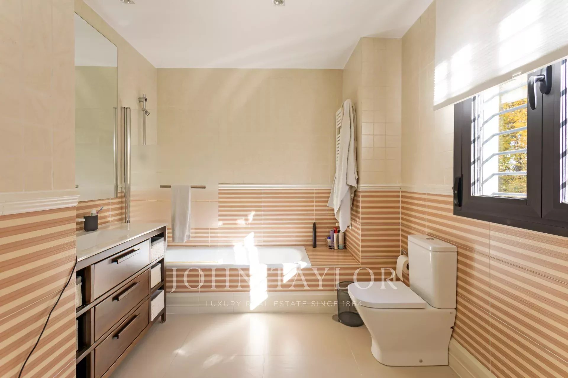 Su un altro piano, altre due camere da letto, di cui una con spogliatoio, entrambe con bagno in comune. Su questo stesso piano, un altro bel soggiorno luminoso con camino.