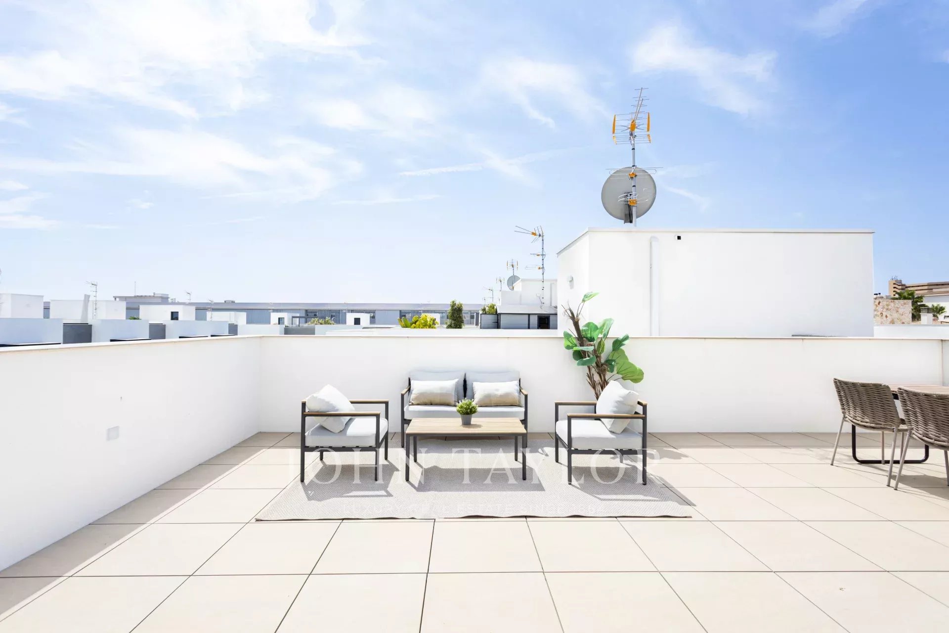 Sulla terrazza sul tetto c’è un’area chill-out con tavolo da pranzo, perfetta per scoprire nuovi modi di godersi la vita all’aperto, condividere pasti con i propri cari o ammirare i tramonti.