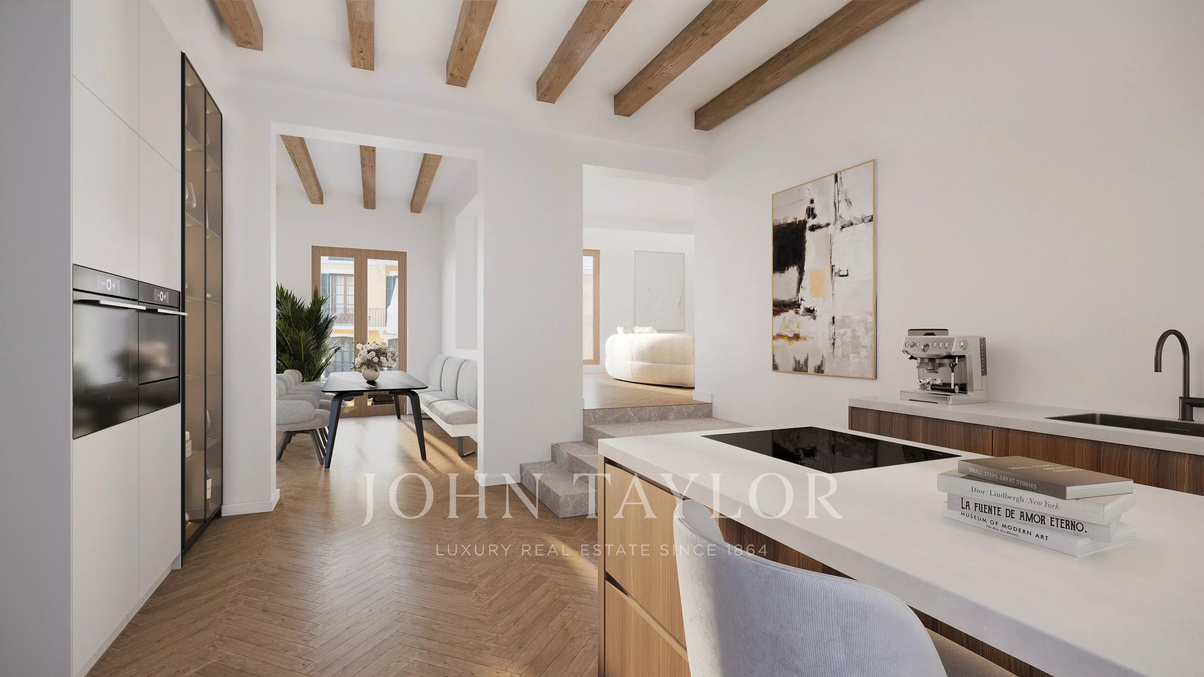 L'originale scala a chiocciola restaurata si integra senza sforzo nello spazio, preservando il carattere unico della casa. Tre spaziose camere da letto con bagno privato, più due stanze aggiuntive dall'uso flessibile, un home office separato, un'area spa privata con sauna, un home cinema, una cantina climatizzata, un elegante garage e un'esclusiva terrazza sul tetto creano un'esperienza di vita davvero unica nel centro storico di Palma.