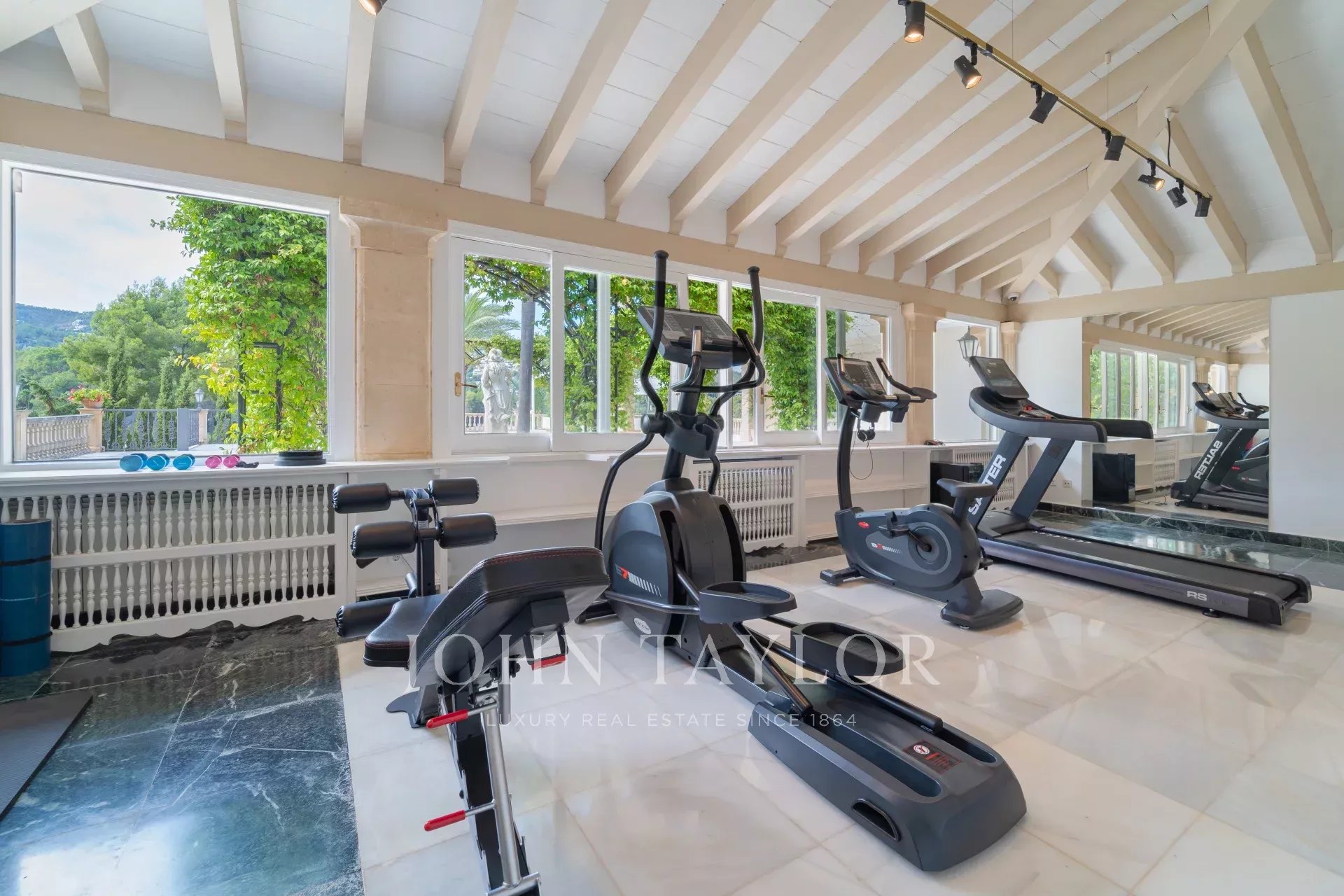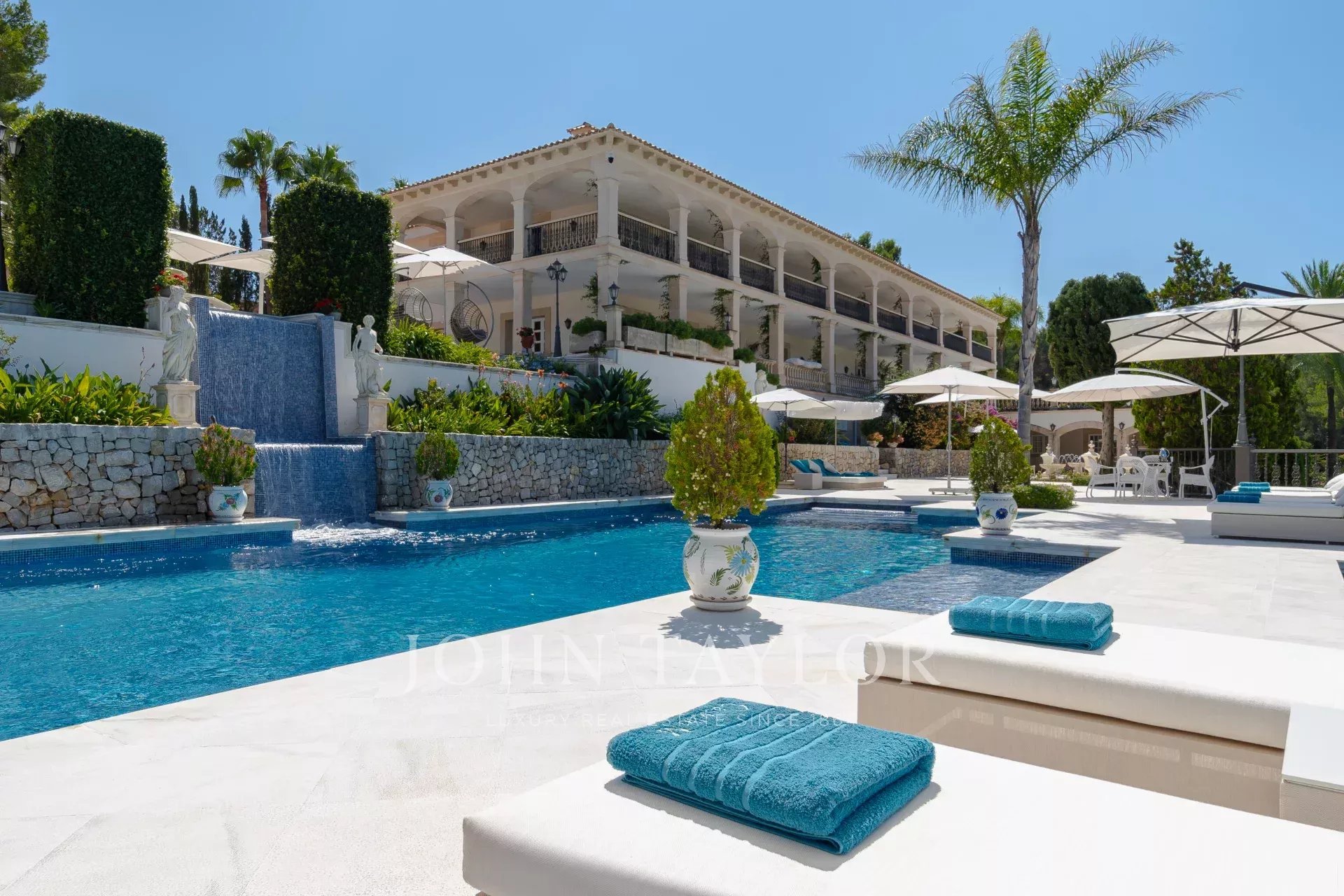 Arroccato maestosamente su un alto anello di mura illuminate, il Castello M è una delle tenute più iconiche e prestigiose di Son Vida e offre una vista mozzafiato da quasi ogni punto di osservazione. Questa straordinaria proprietà combina perfettamente l'architettura neoclassica con la raffinatezza moderna, con dettagli squisiti come un ninfeo, statue classiche, fontane, una cascata e una tecnologia smart home all'avanguardia.