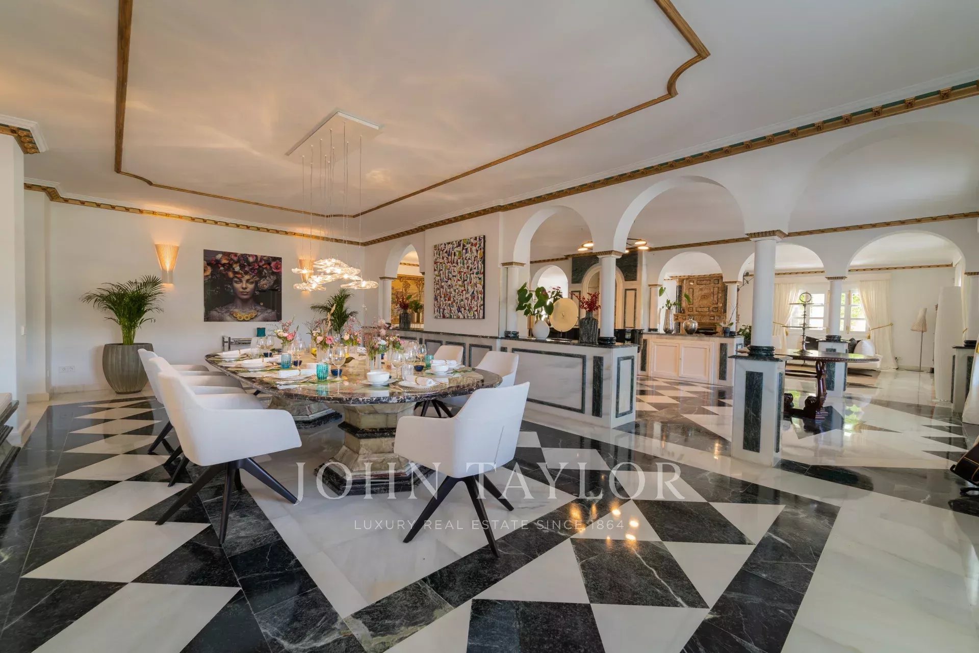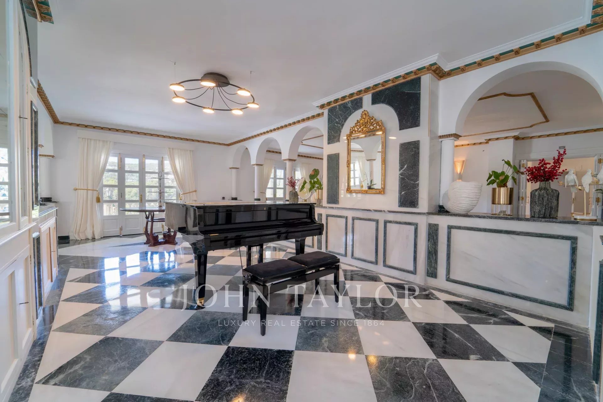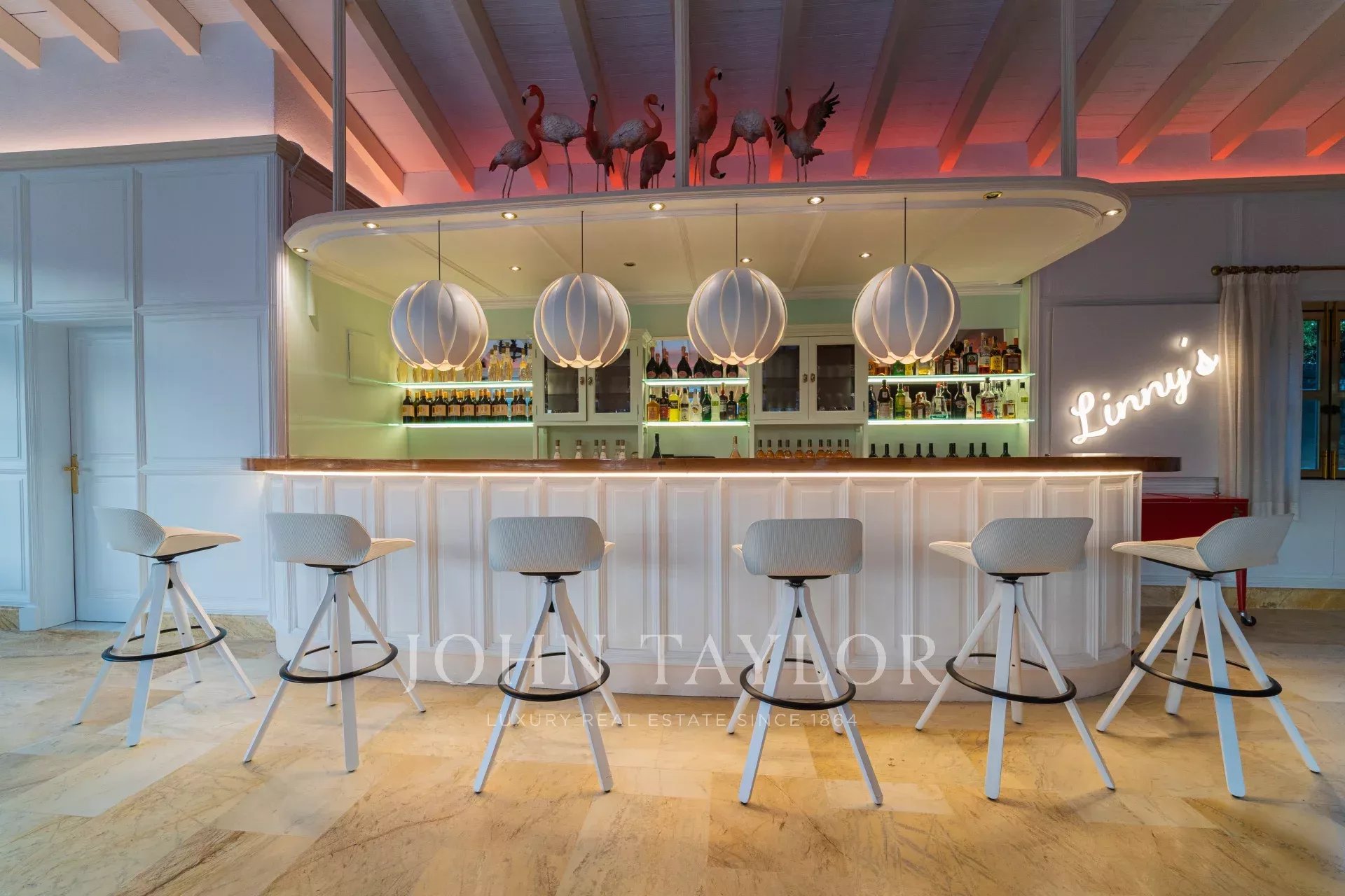 Ingresso imponente: Vi si accede attraverso un grande cancello in acciaio forgiato e un lungo vialetto fiancheggiato da 11 palme imponenti. Spazi di intrattenimento e benessere. All'ingresso si trova un'area sportiva e fitness con palestra, piccola cucina, bagno e stanza per gli ospiti, ideale per sessioni di yoga o massaggi. La casa del barbecue, con l'esclusivo bar "Linny's", offre una griglia a legna aperta, un piano di cottura wok e un grande forno a pietra per la pizza, ideale per ospitare riunioni. Adiacente alla villa, il Parco di Sabine incanta con la sua profumata aranciera di gelsomini e un sereno laghetto. La terrazza è il luogo perfetto per godersi un'esperienza mozzafiato al sole.