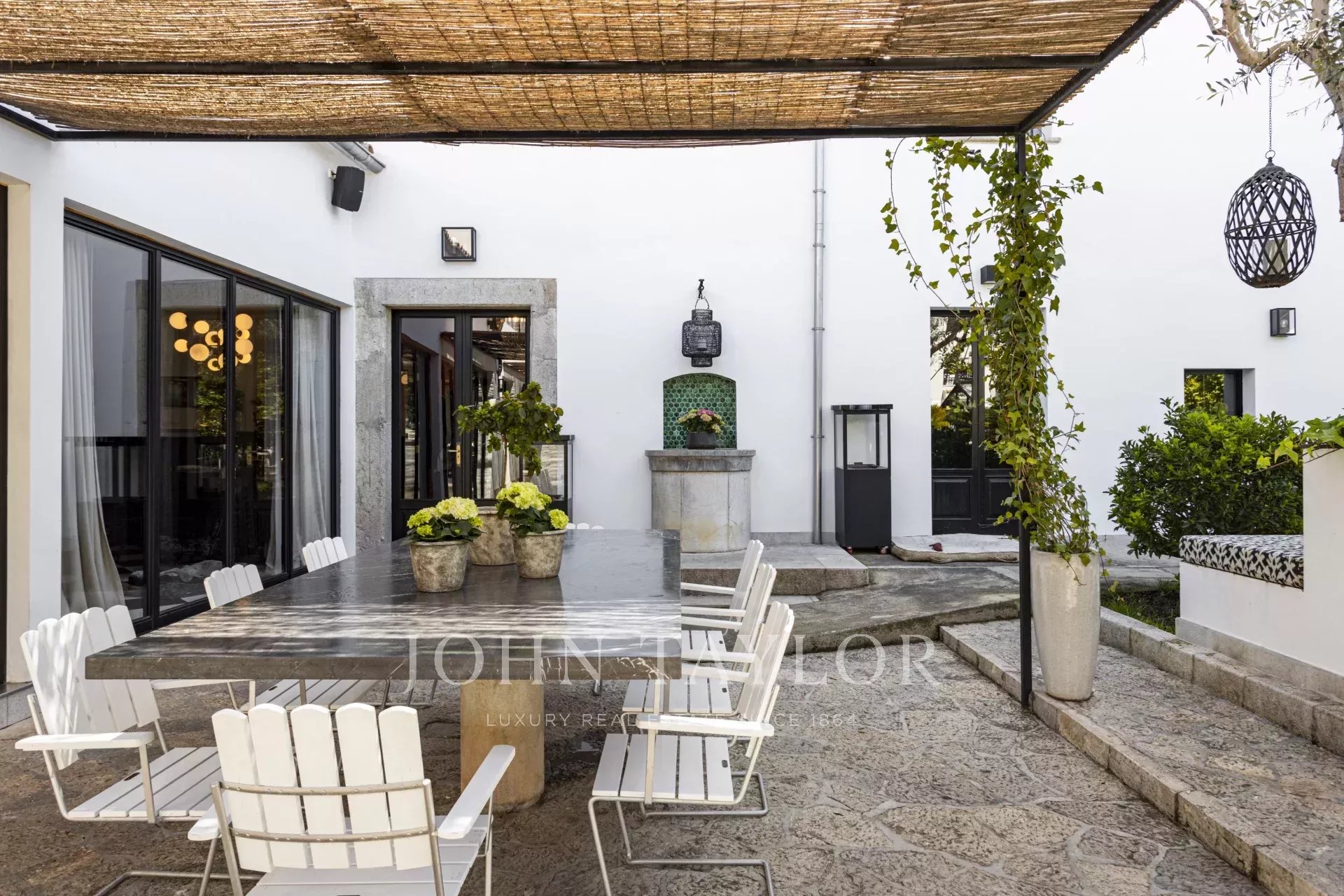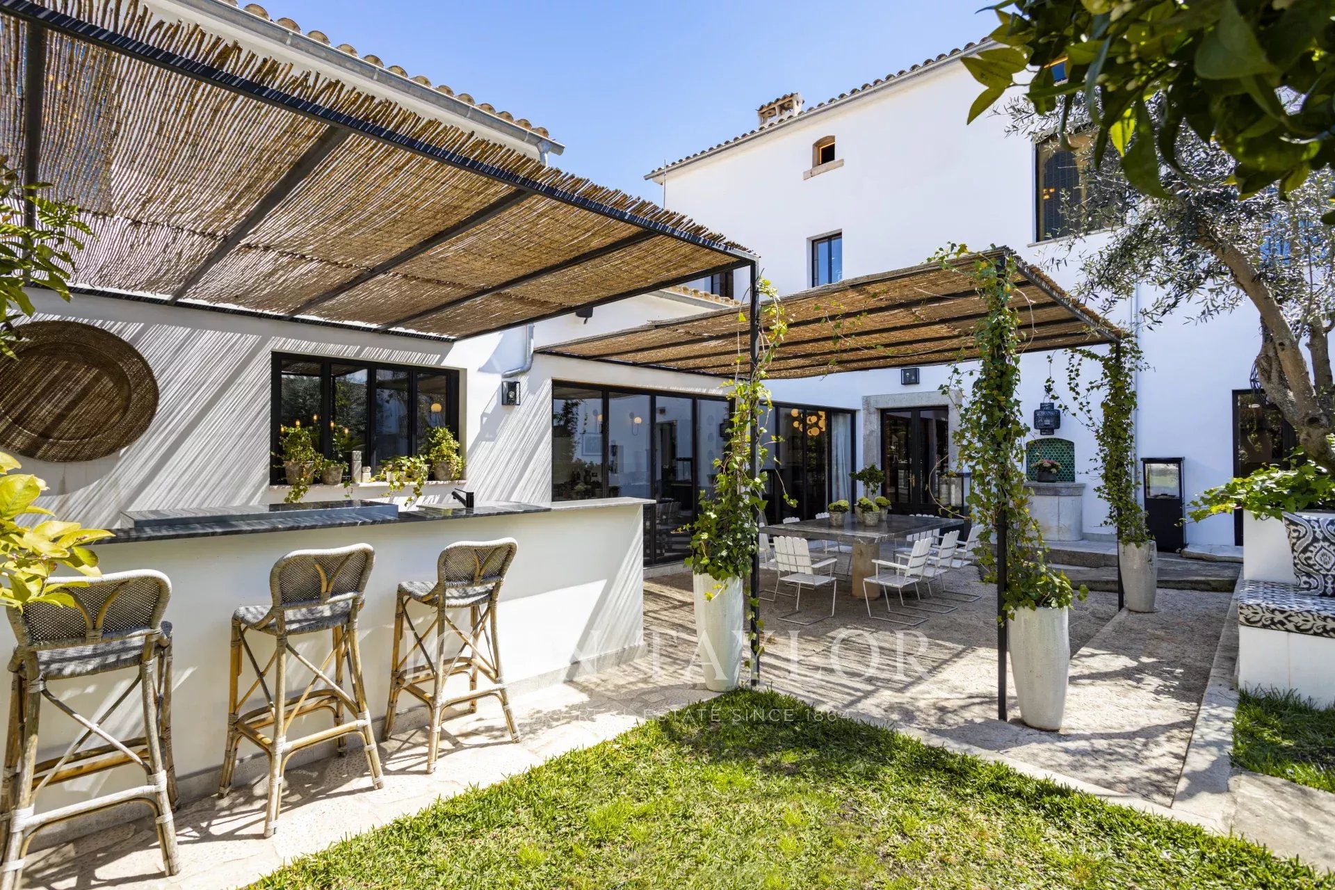 Dal piano terra si accede allo spettacolare patio interno privato e ad altri edifici, come una spa privata con piscina idromassaggio interna, una cantina privata, un appartamento per gli ospiti, due garage per 10 auto e una stanza aggiuntiva con bagno e ripostigli.