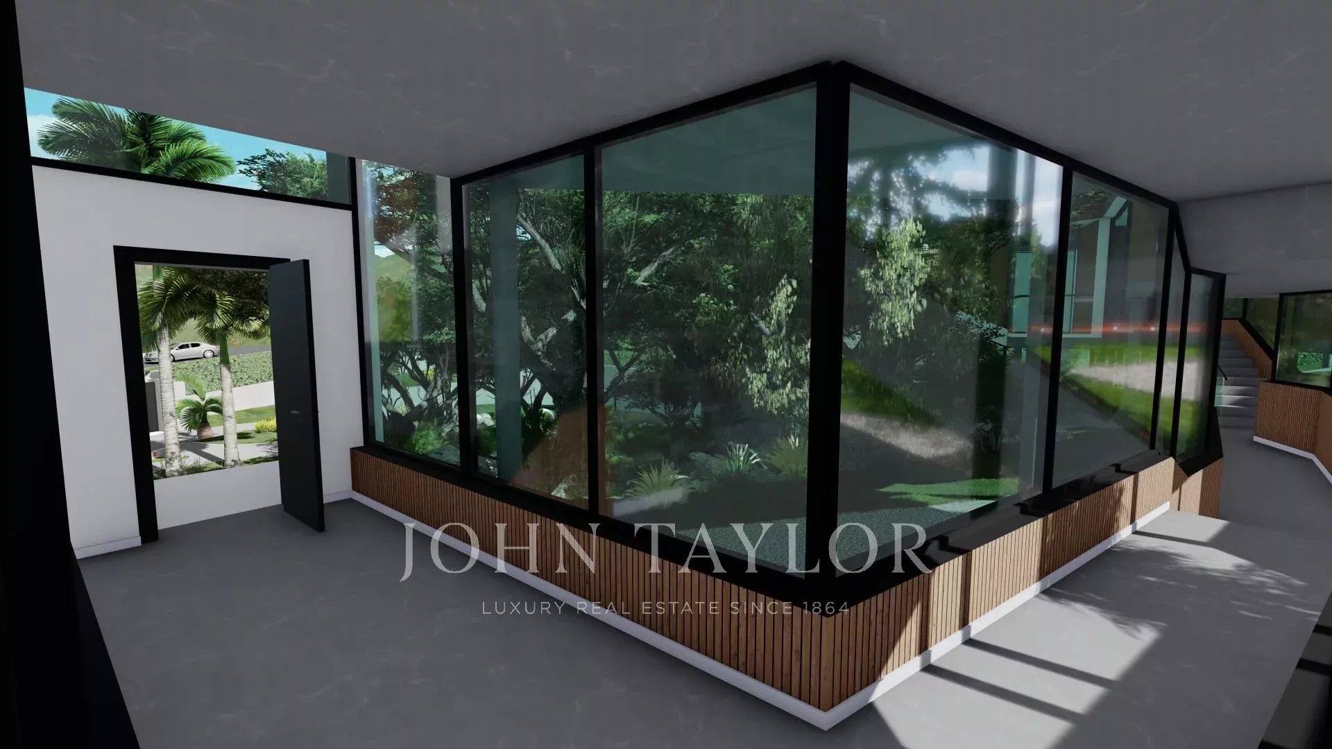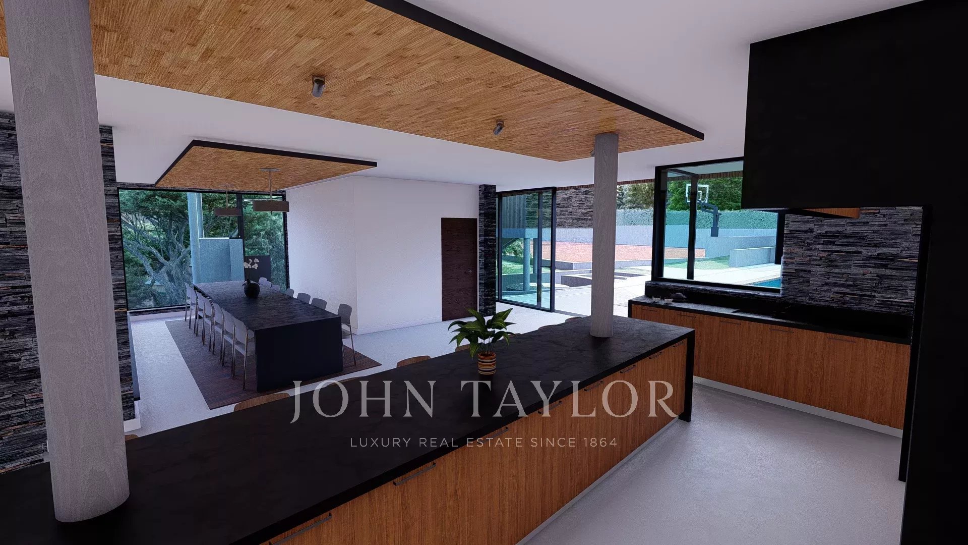 Il progetto comprende cucina e lavanderia con mobili in legno naturale, elettrodomestici Bosch di alta qualità, armadi a muro in legno naturale, bagni completamente attrezzati, illuminazione interna e finestre di alta gamma in alluminio anodizzato laccato in nero.