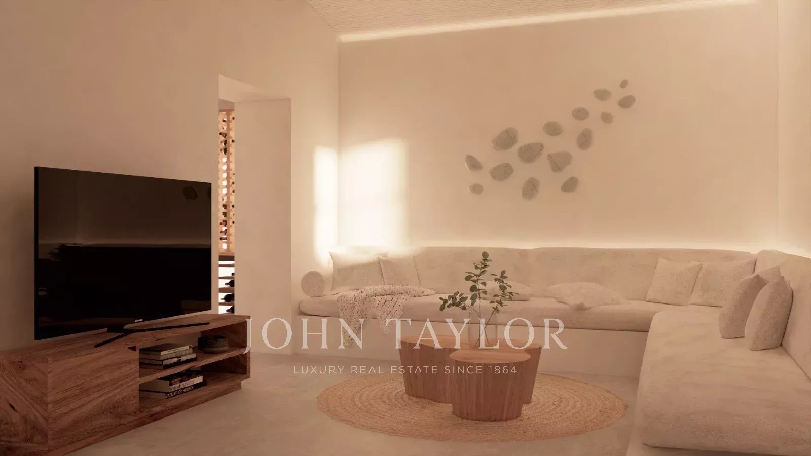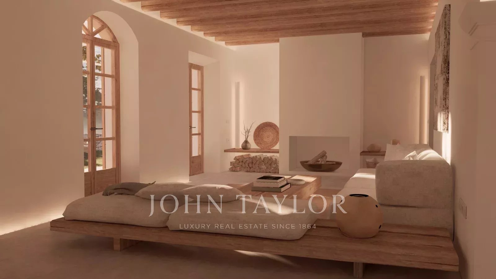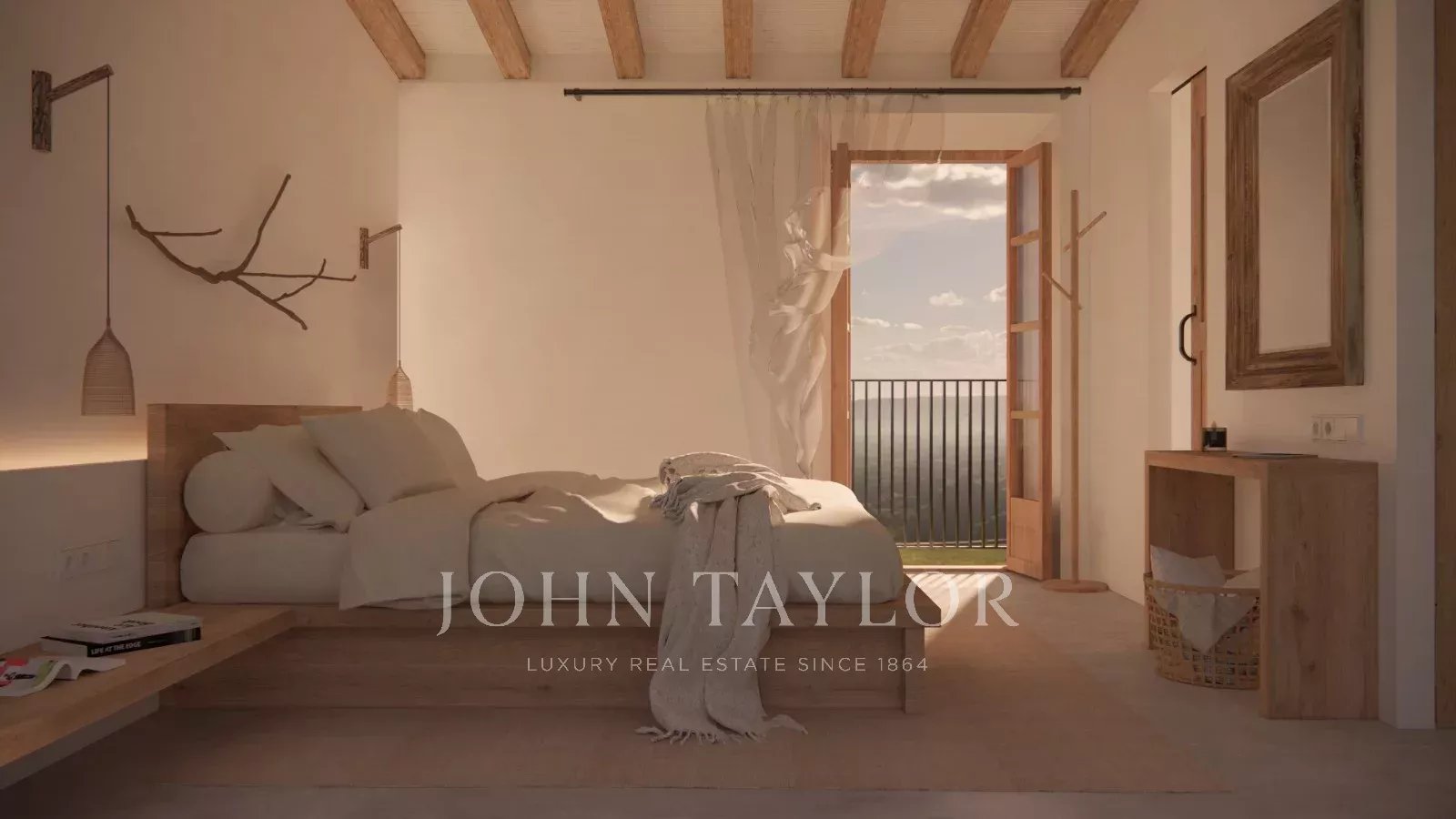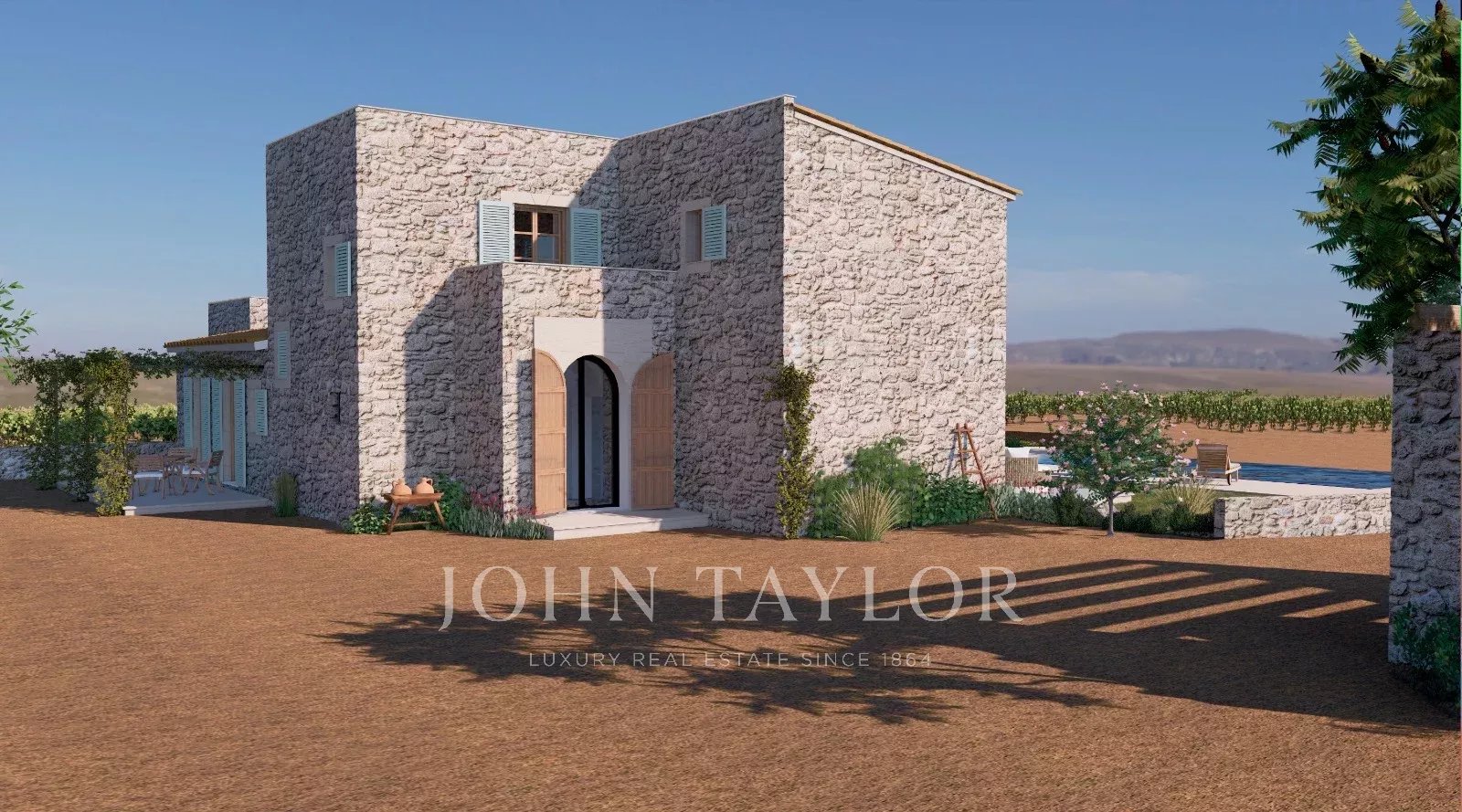 Il terreno è corredato da un progetto e da una licenza per un'autentica casa di campagna di Maiorca rivestita in pietra, con una superficie totale costruita di 495 mq, di cui 300 mq rappresentano l'interno della proprietà. All'ingresso, la proprietà comprende un atrio, una cucina a pianta aperta con isola centrale e posti a sedere, una sala da pranzo e un soggiorno molto spaziosi con un accogliente camino e accesso diretto all'esterno, una zona lounge e una cantina. Una camera da letto matrimoniale con bagno privato, una lavanderia e un bagno per gli ospiti completano la zona interna del piano terra.