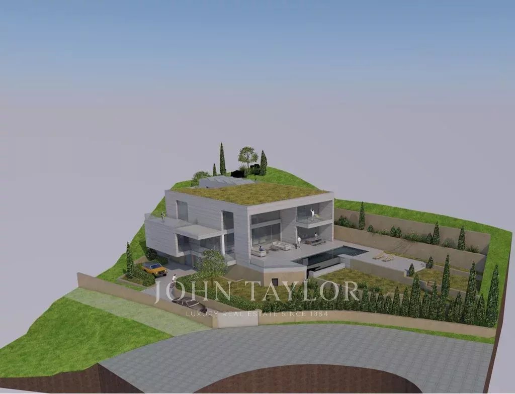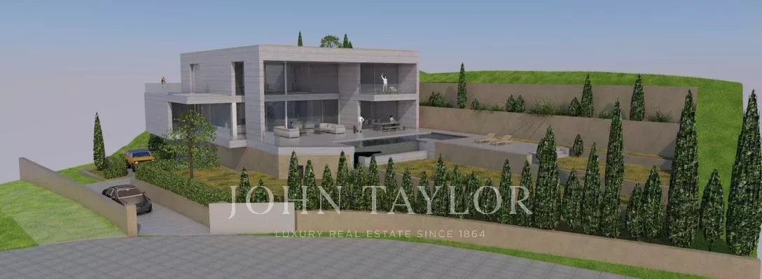 Questo terreno viene venduto con un progetto per una villa di lusso progettata su tre piani spaziosi, collegati sia da un ascensore che da una tromba delle scale: