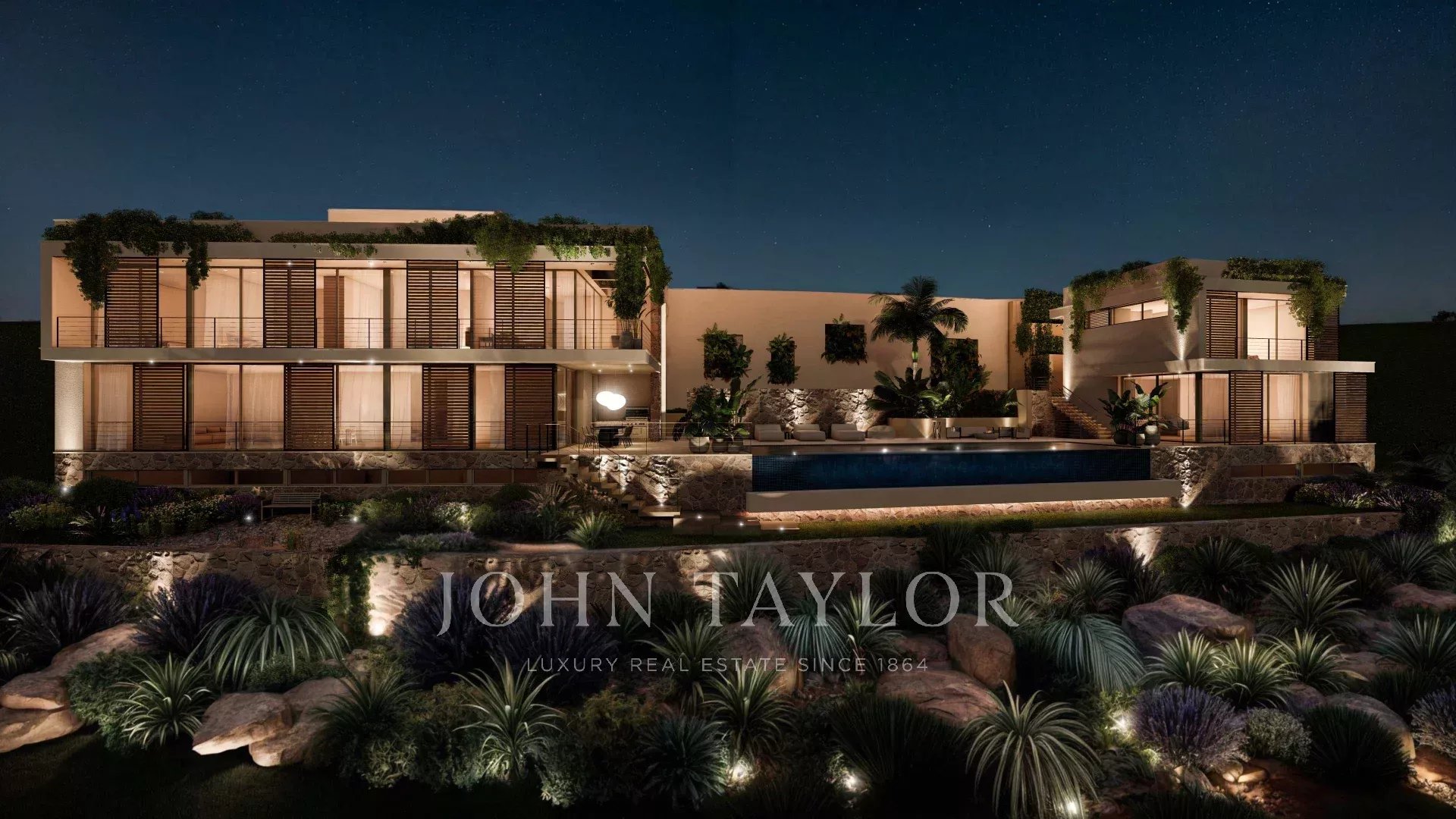 Il terreno di 1.338 m2 consente di costruire una villa con una superficie abitabile di 421 m2, ampie terrazze e una piscina di 15 m di lunghezza e, inoltre, un ampio seminterrato di 363 m2 con molte possibilità.