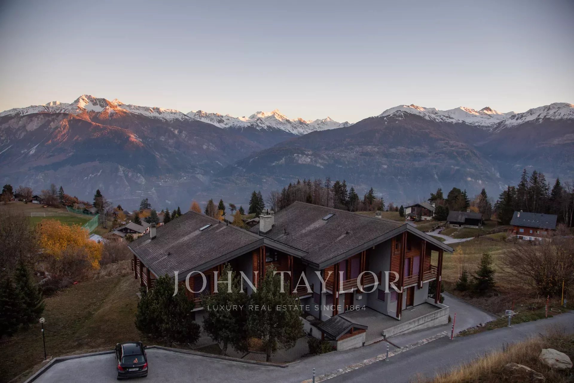 Situato in un ambiente verde a soli 5 minuti di auto da Crans-Montana, scoprite un luogo unico dove il comfort moderno incontra il fascino alpino.
