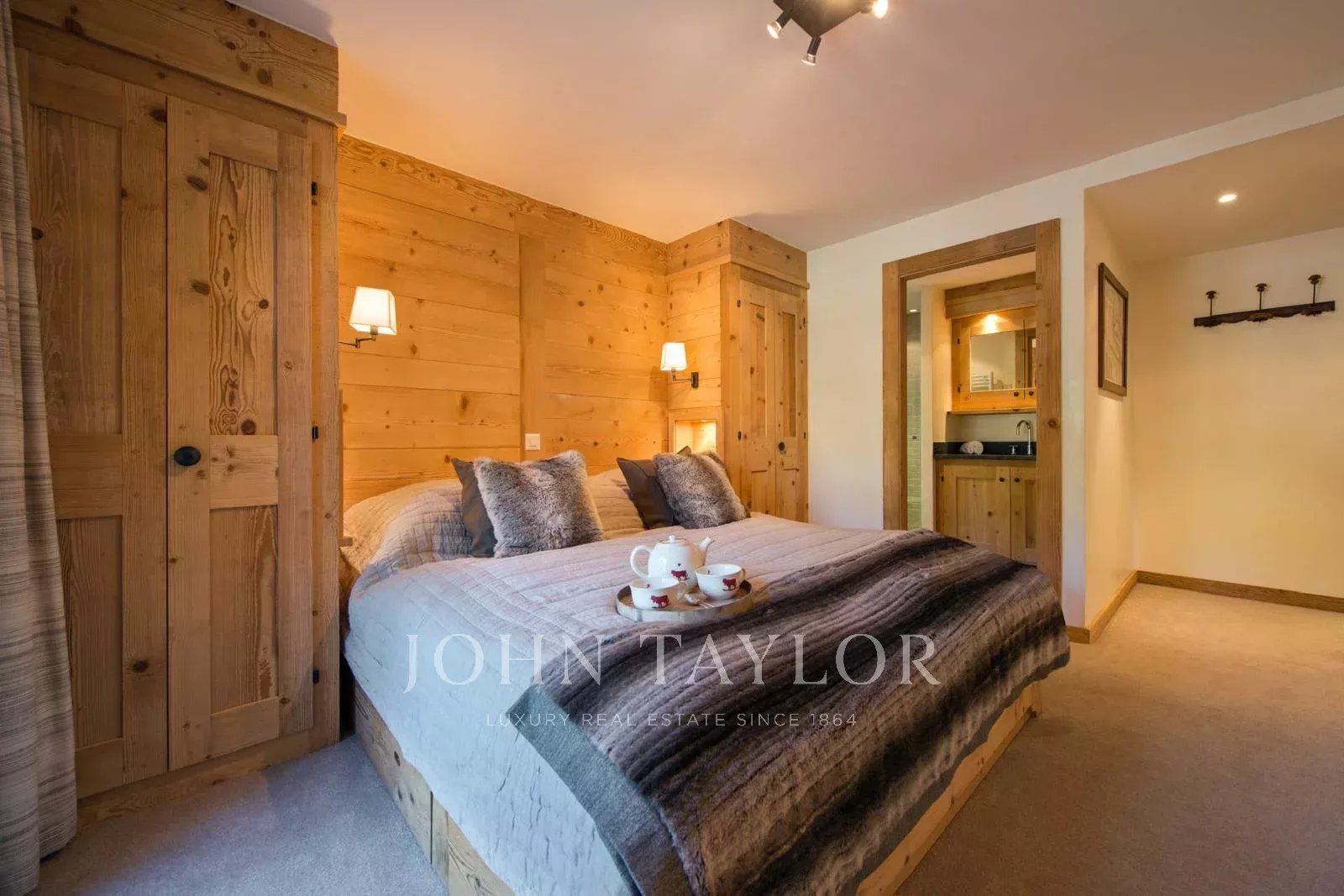 L'appartamento dispone di un ampio soggiorno in stile alpino contemporaneo con un tradizionale camino in pietra. La cucina si apre sulla sala da pranzo, che si affaccia sul giardino esposto a sud con una splendida vista sulle montagne.