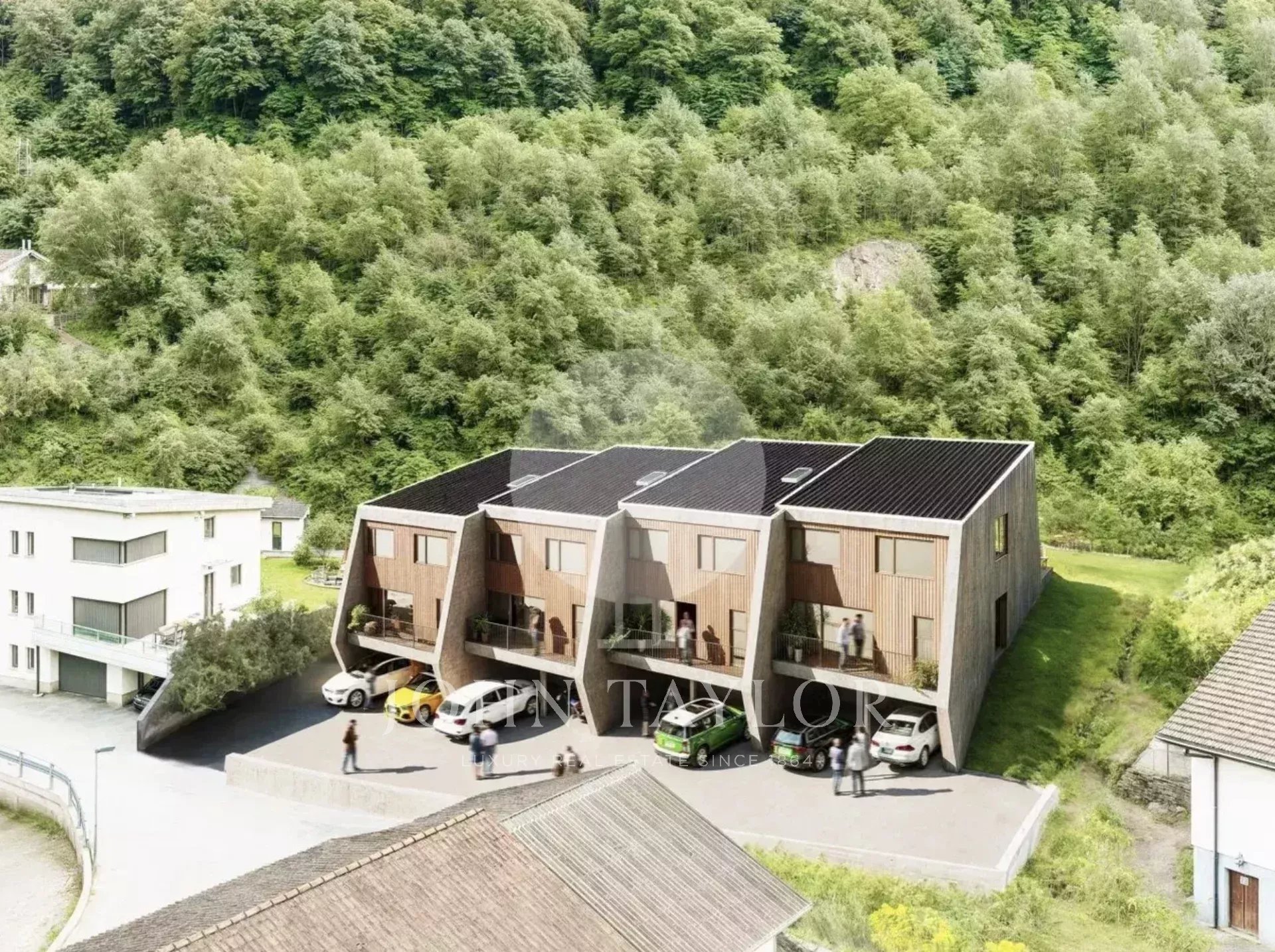 Questo complesso di quattro case bifamiliari si trova a nord di Sion, a soli dieci minuti a piedi da Rue du Grand-Pont. Costruite su un terreno in pendenza ai piedi della collina del Tourbillon, le ville godono di un ambiente tranquillo e verdeggiante.