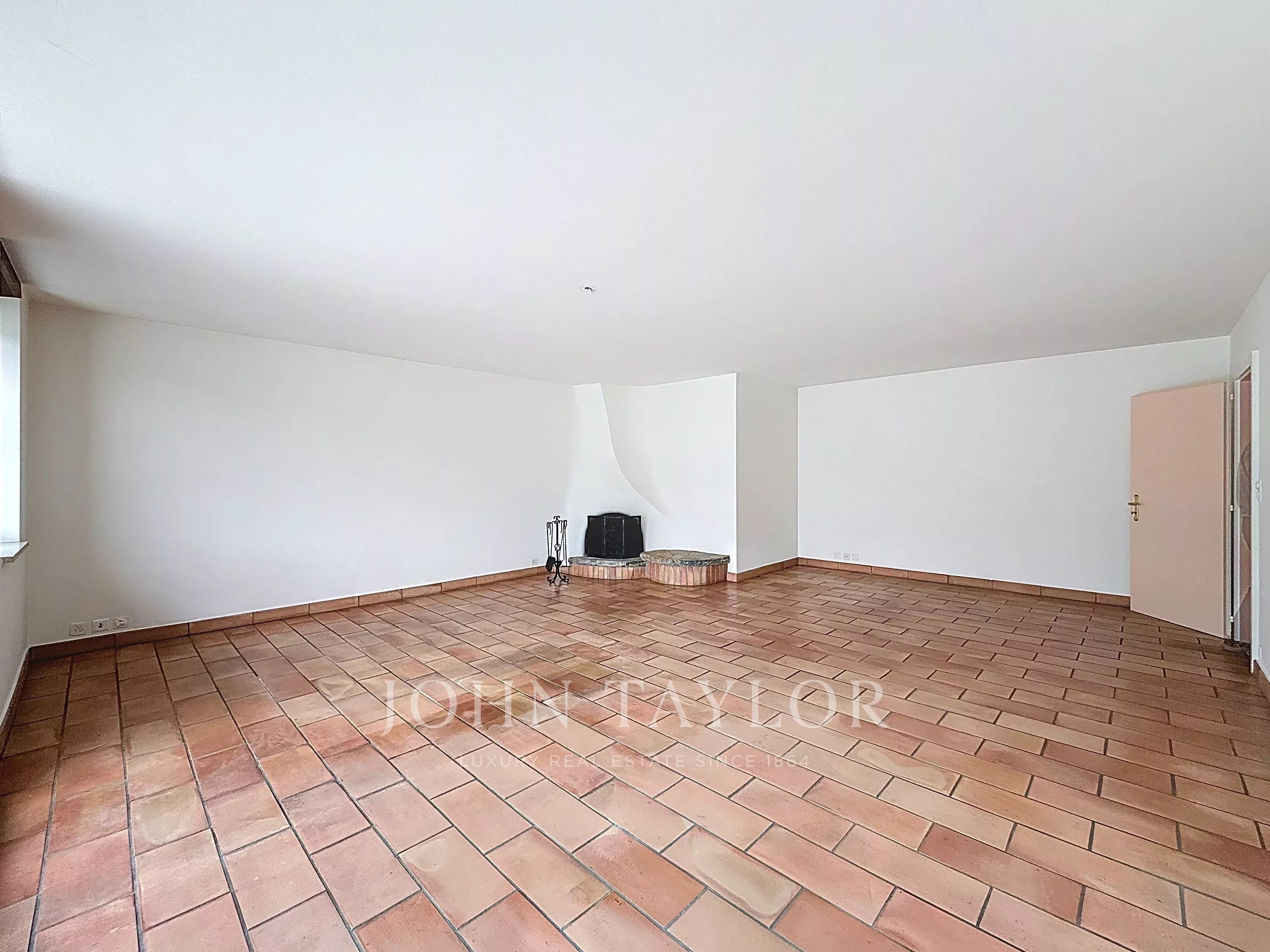 - Un ampio soggiorno con camino, che si apre su un giardino d'inverno.