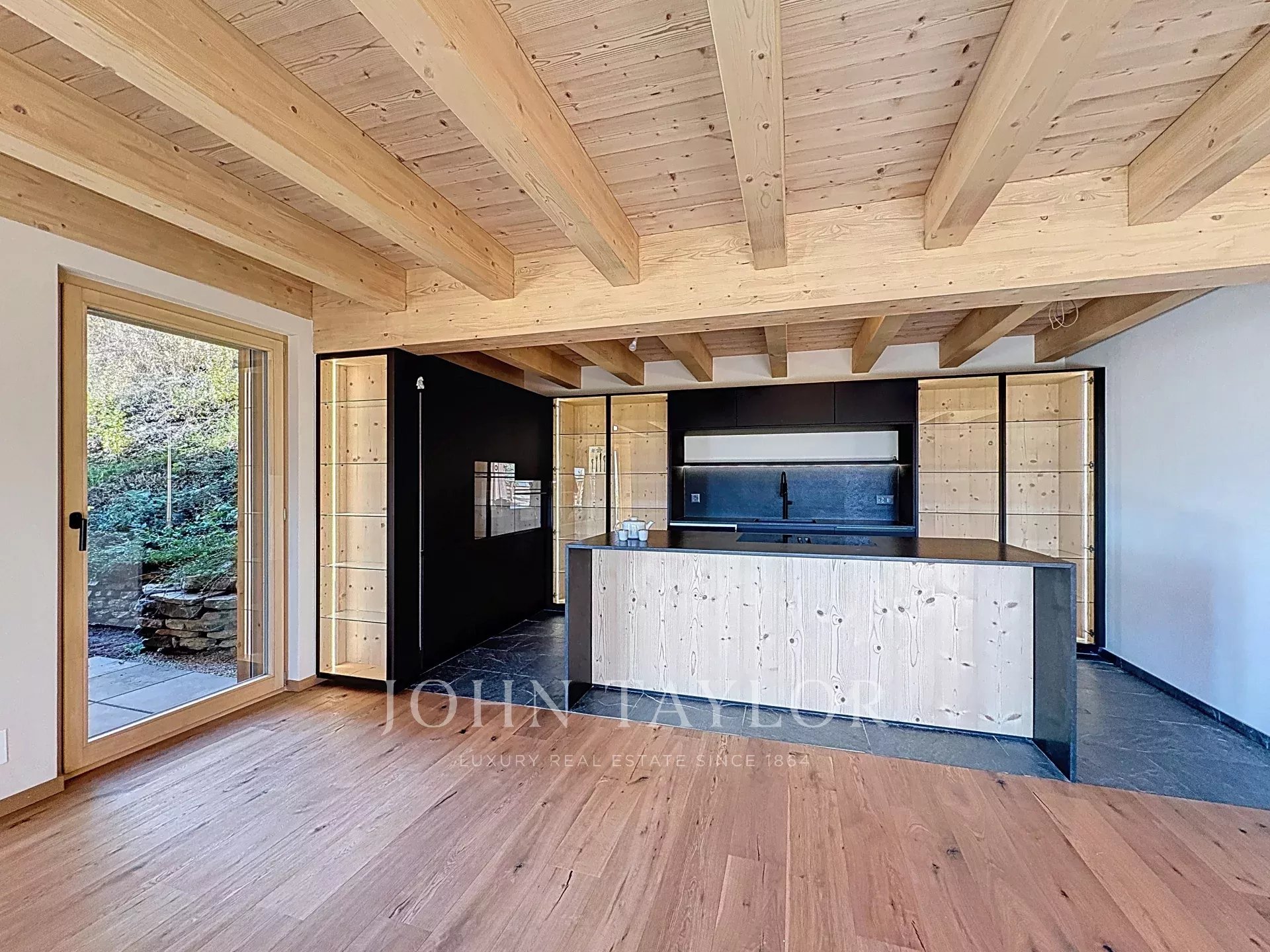 Inondato di luce e aperto su un giardino pianeggiante esposto a sud, offre una vista spettacolare sulle Alpi, per momenti unici in ogni stagione.