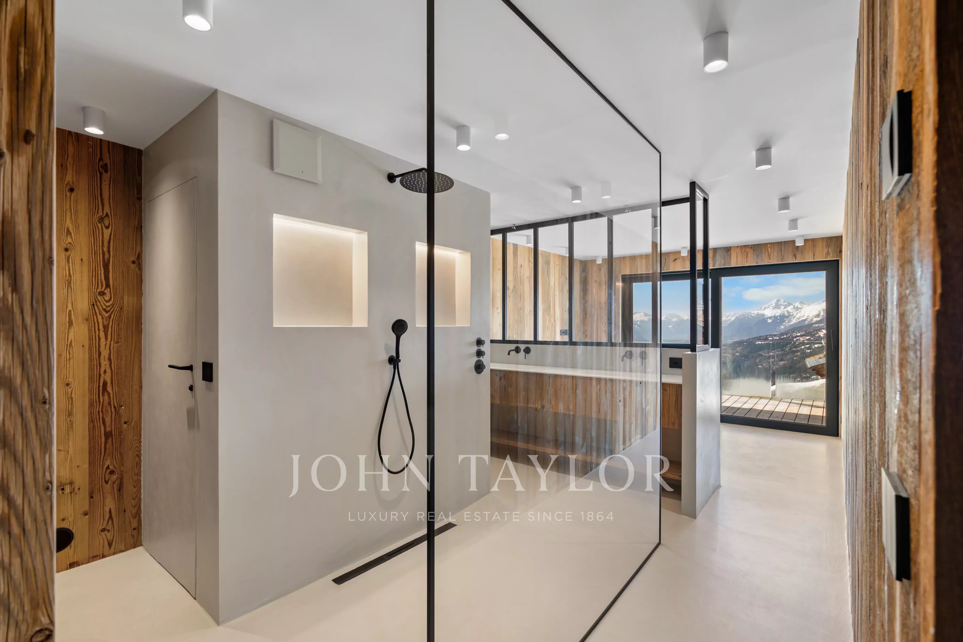 Situato in un ambiente privilegiato a Crans-Montana, questo eccezionale chalet, costruito nel 2025, è il perfetto connubio tra architettura contemporanea, spazi generosi e caratteristiche di alta gamma.