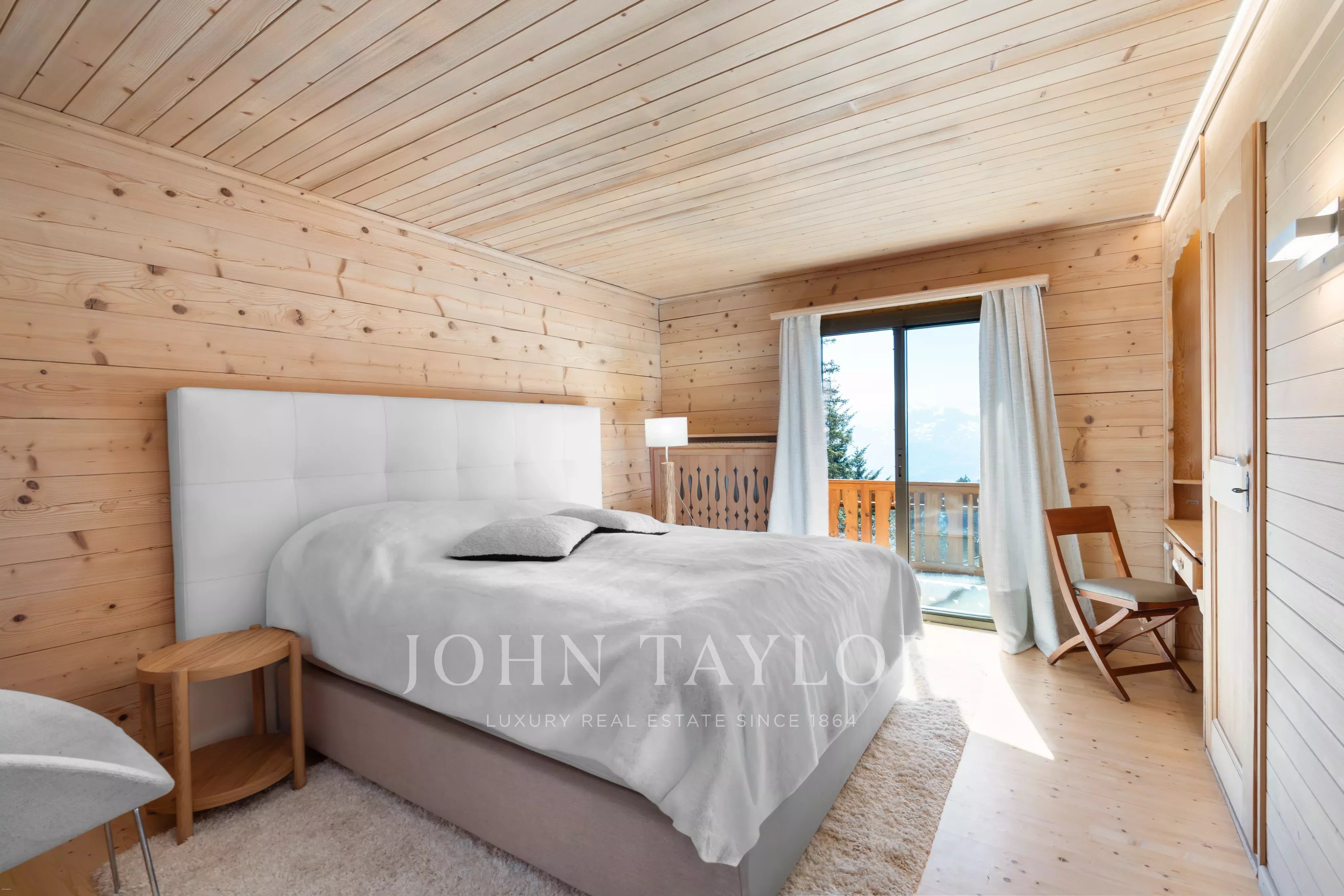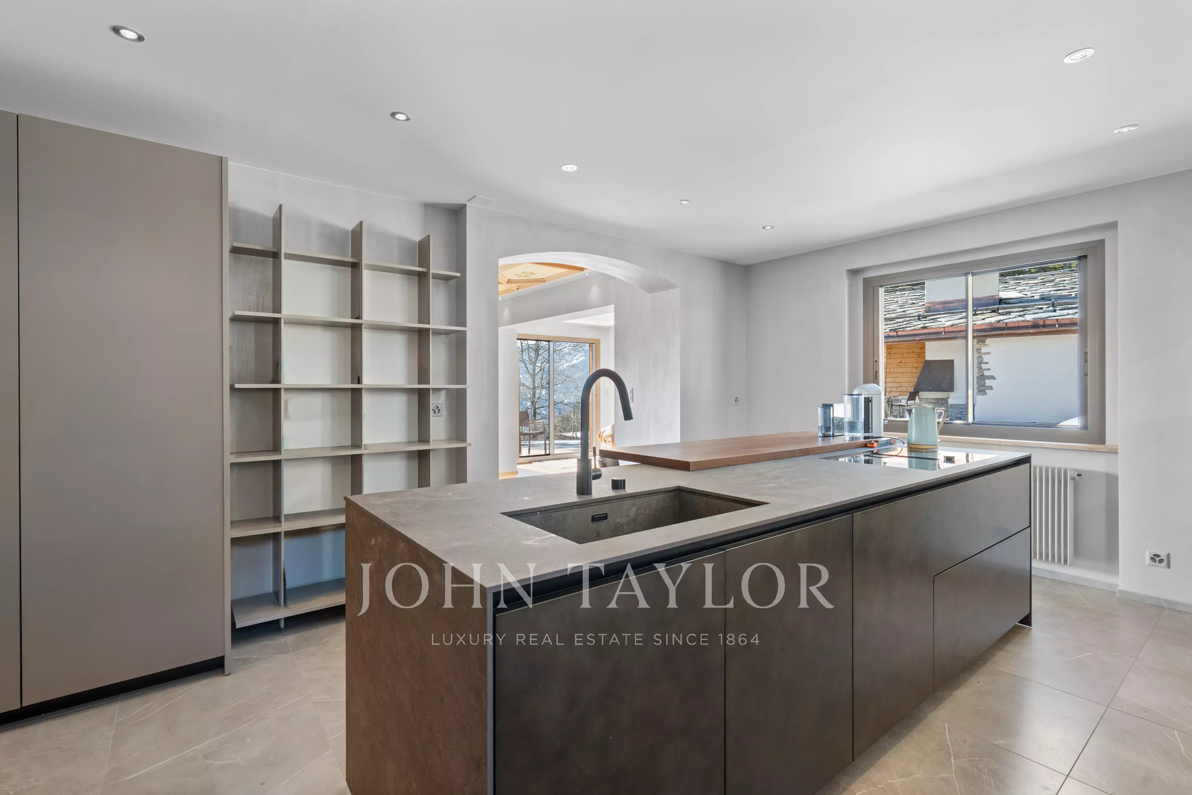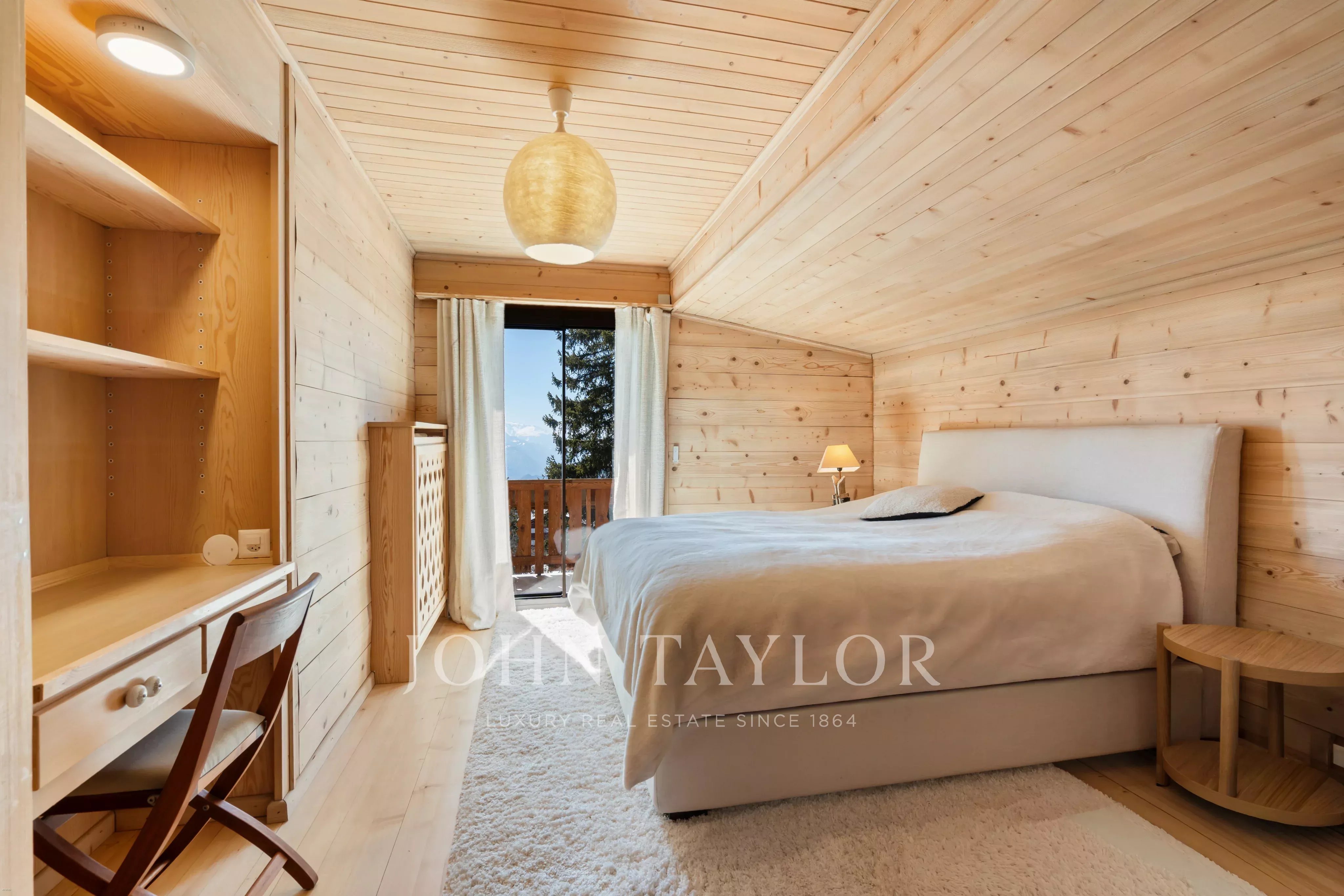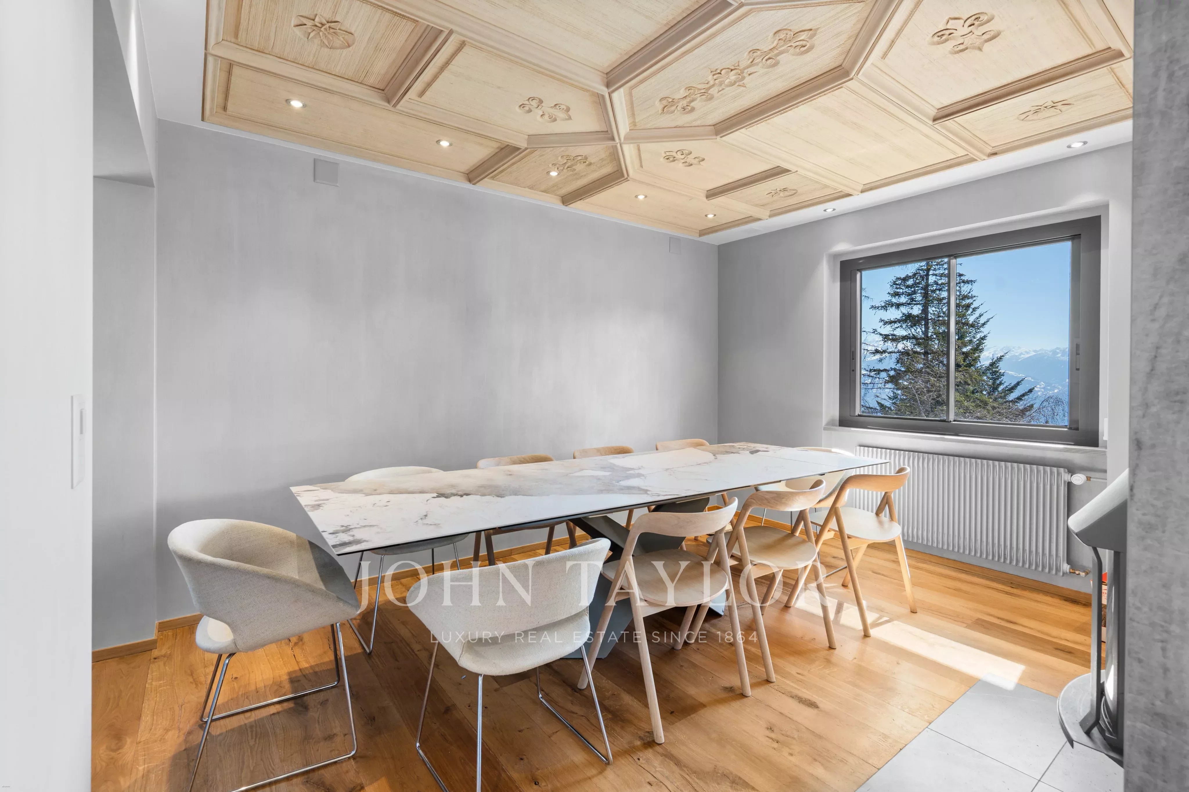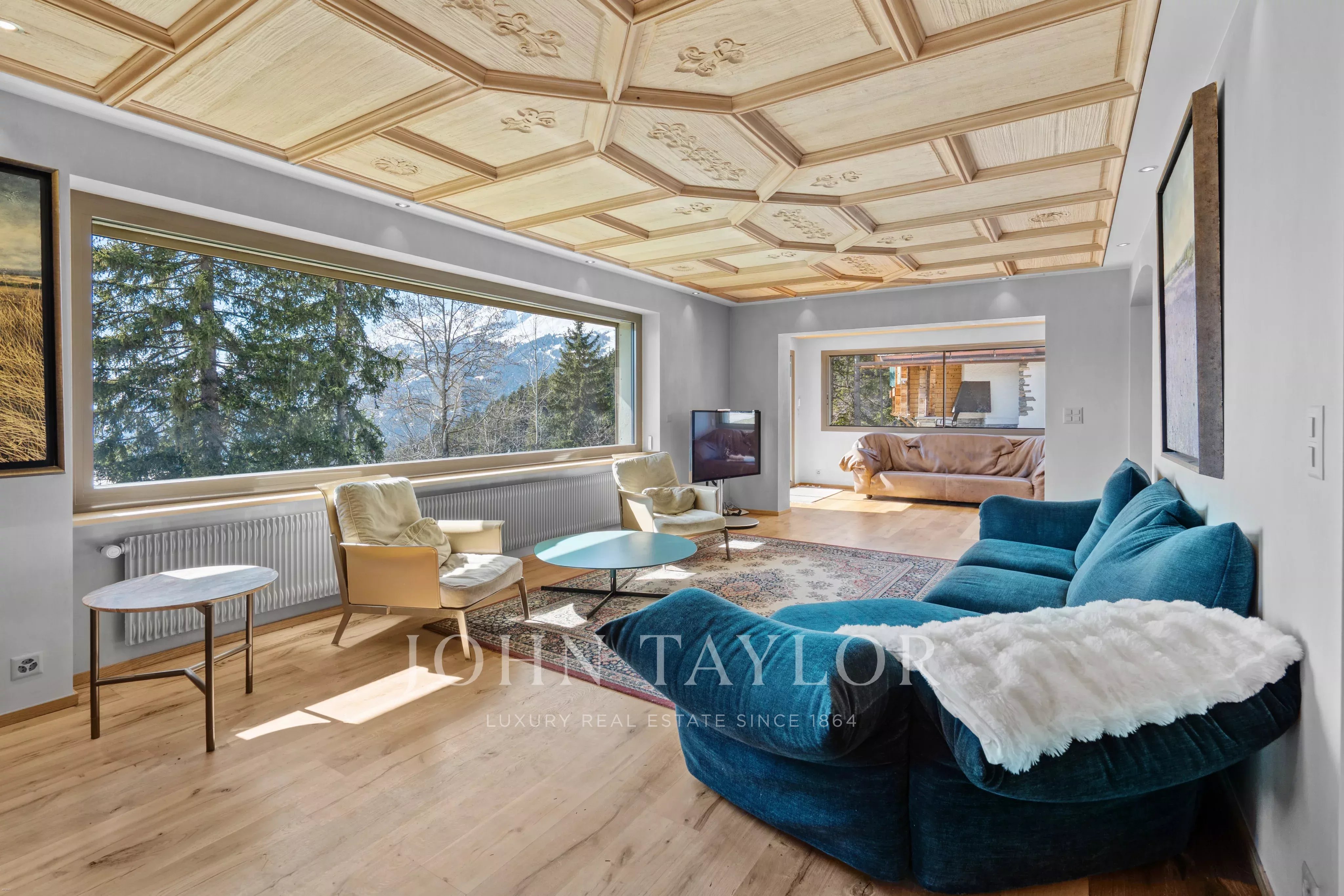 Situata all'ingresso ovest di Crans-Montana, dispone inoltre di una piscina coperta, di un monolocale di 25 m² e di un garage a due posti auto.