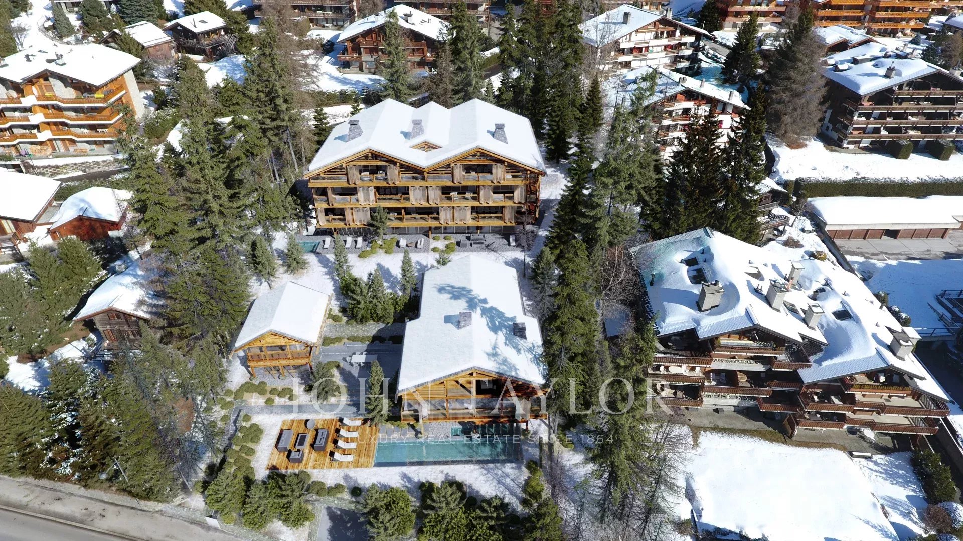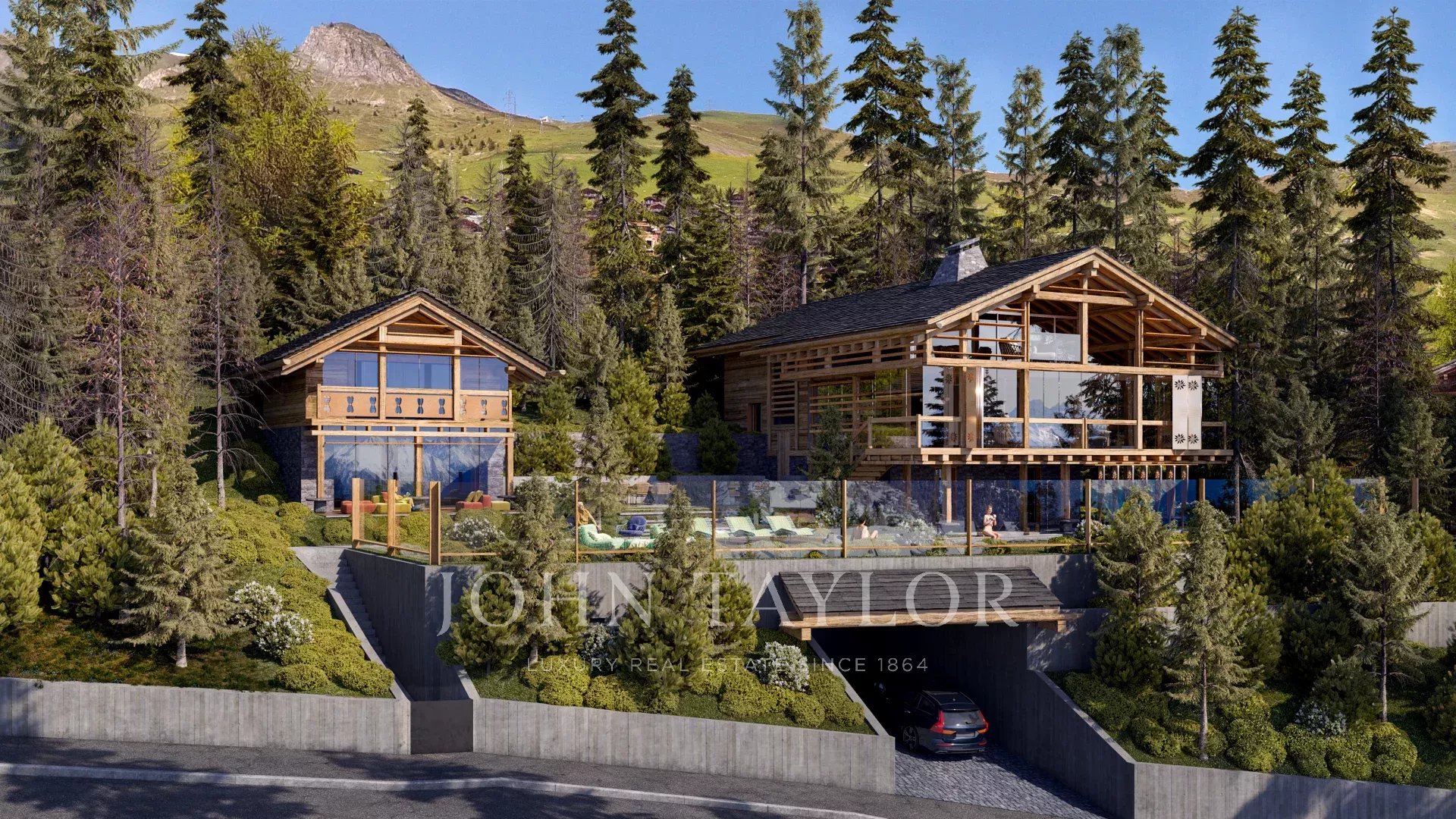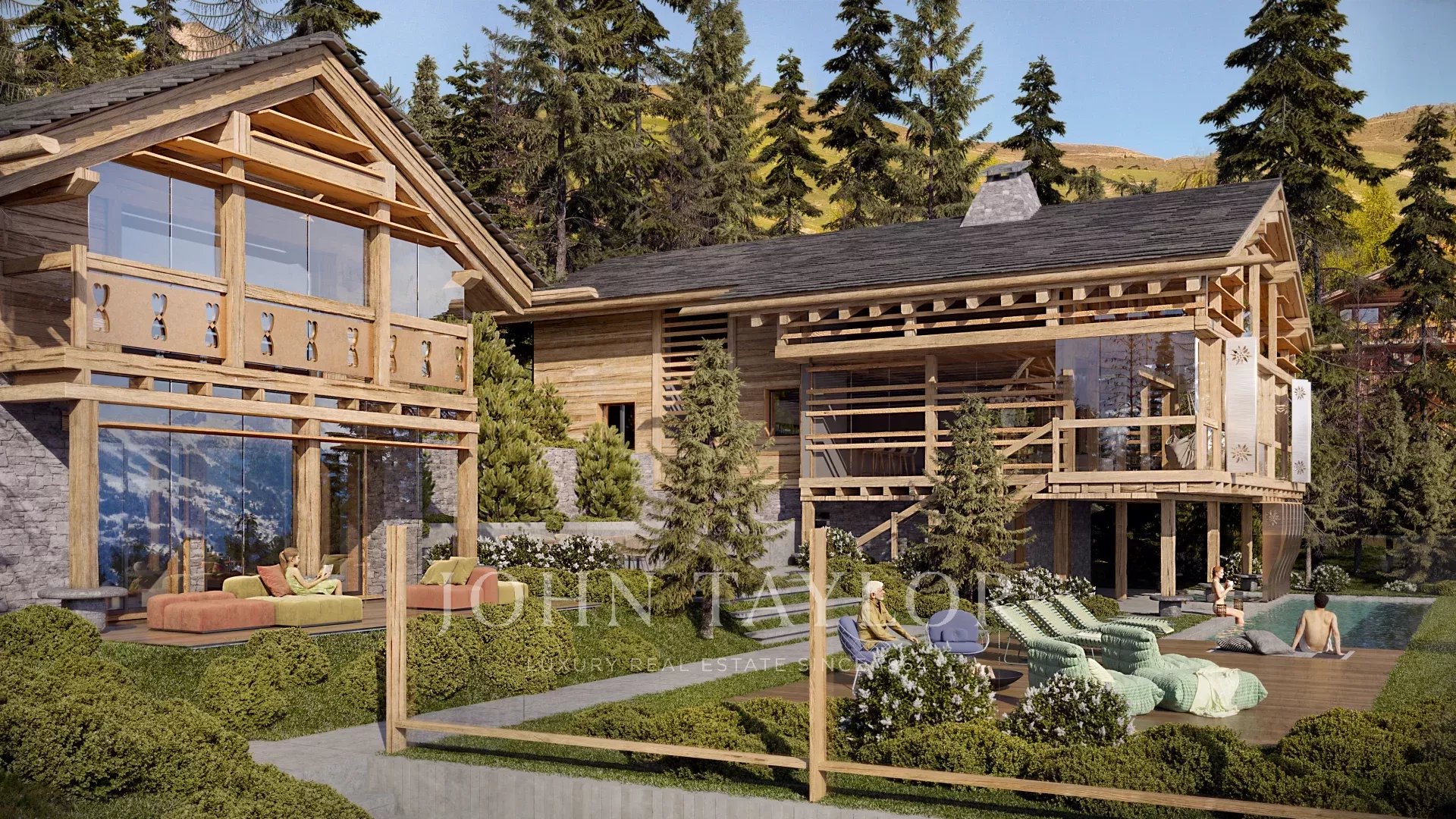 Entrambi gli chalet avranno accesso esclusivo a un'ampia terrazza centrale comunicante e a una piscina all'aperto immersa in giardini di nuova concezione.