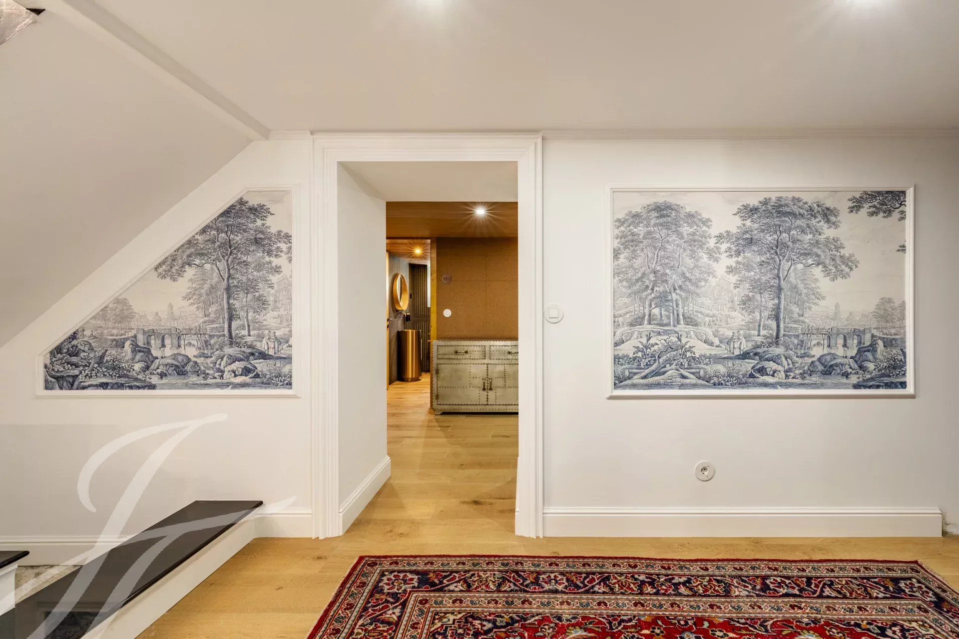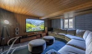 Il piano inferiore offre un'area di intrattenimento con una sala TV insonorizzata, una cantina, una sauna, una lavanderia e un'ulteriore camera da letto.