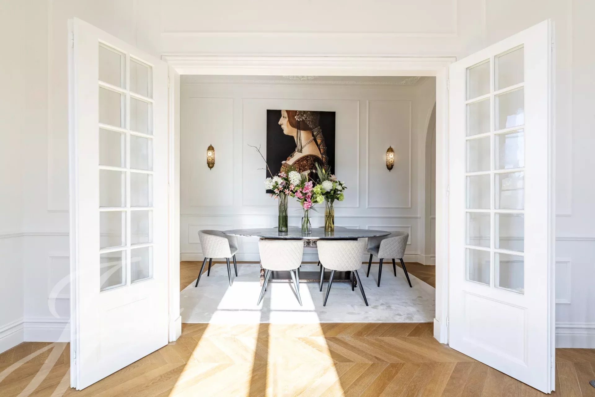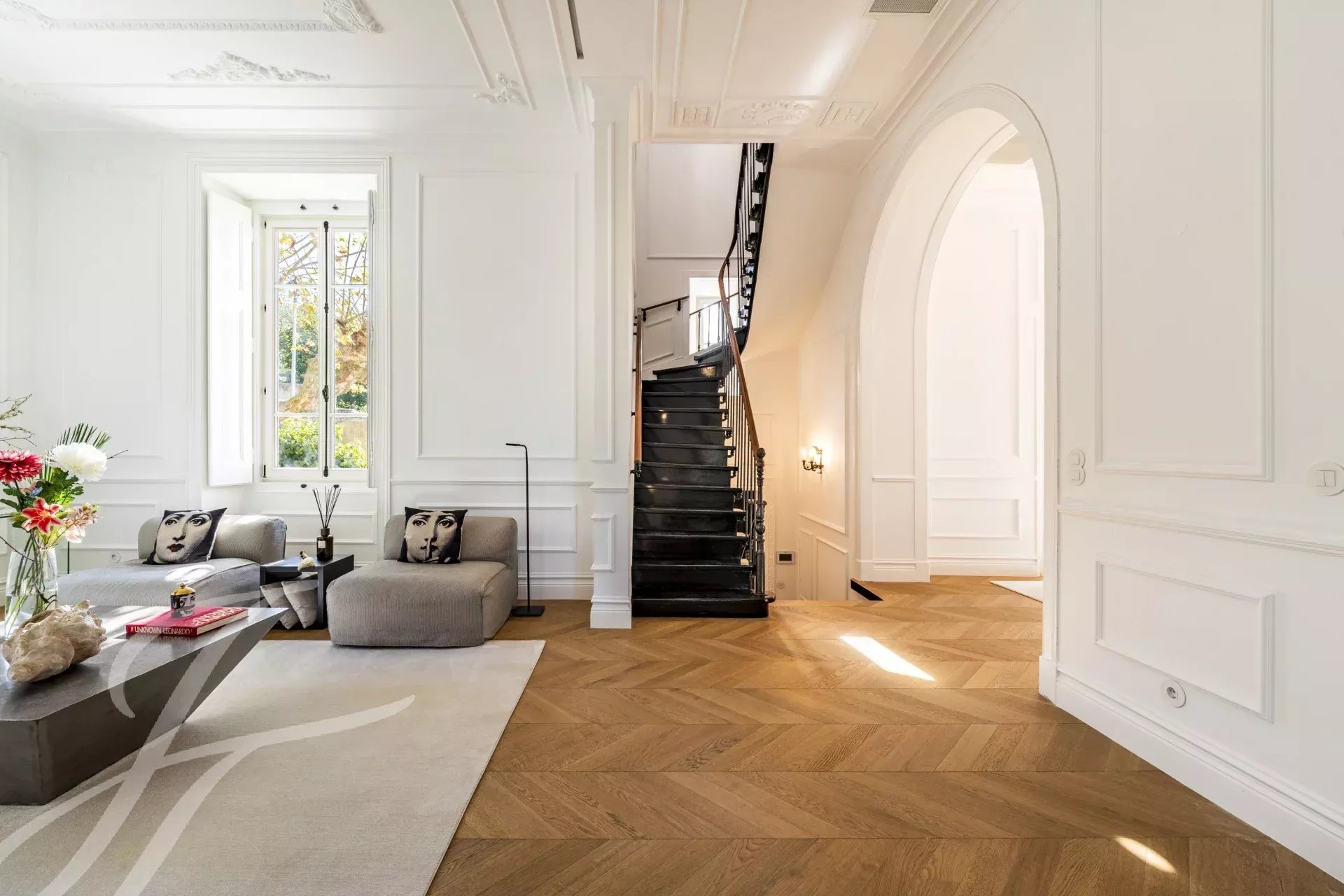 Distribuito su quattro piani, il piano terra è caratterizzato da un ampio soggiorno che si apre su un giardino splendidamente paesaggistico, collegando senza soluzione di continuità gli spazi interni ed esterni. Una sala da pranzo formale e una cucina completamente attrezzata sono perfette per intrattenimenti sia informali che formali.