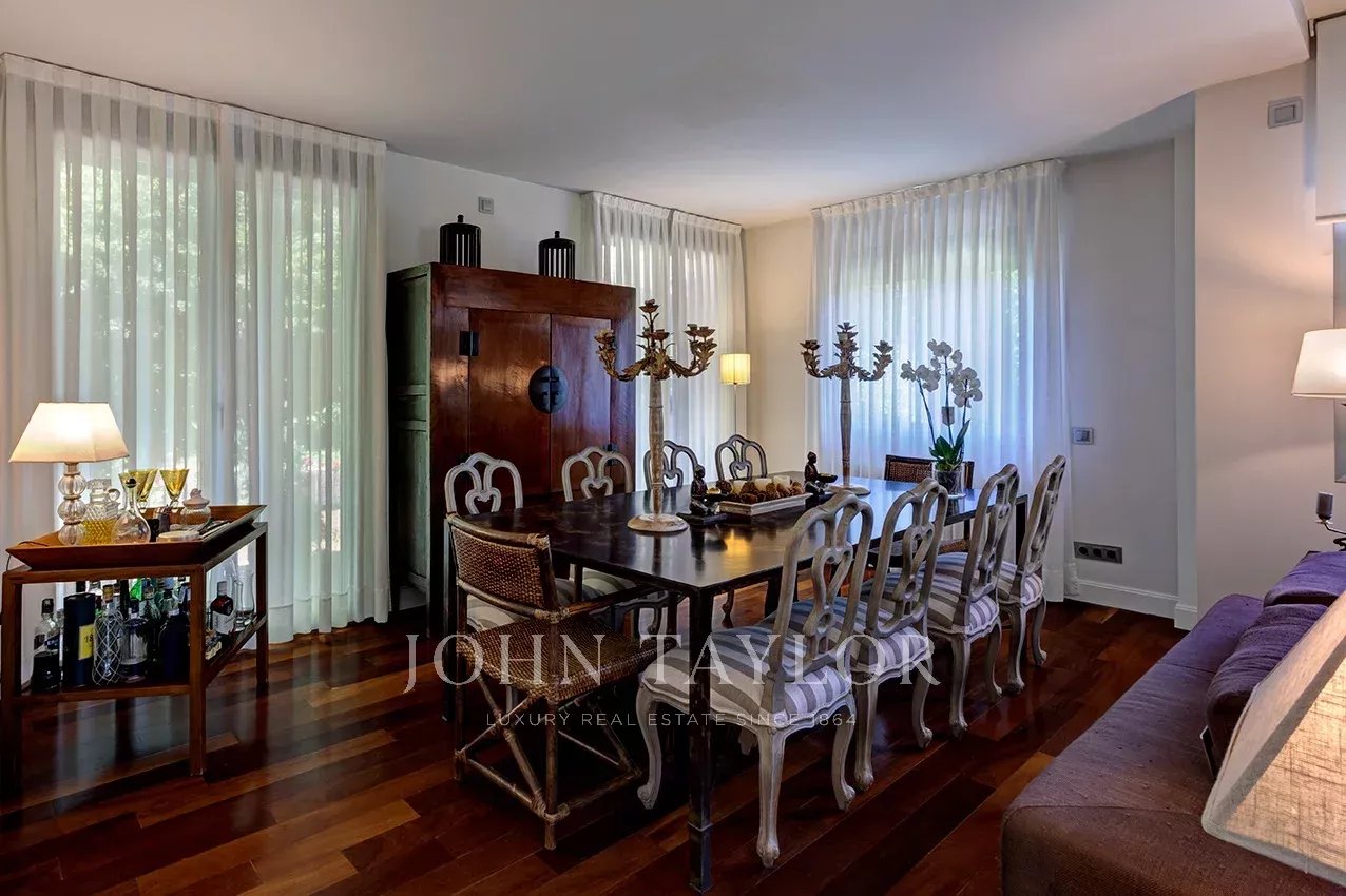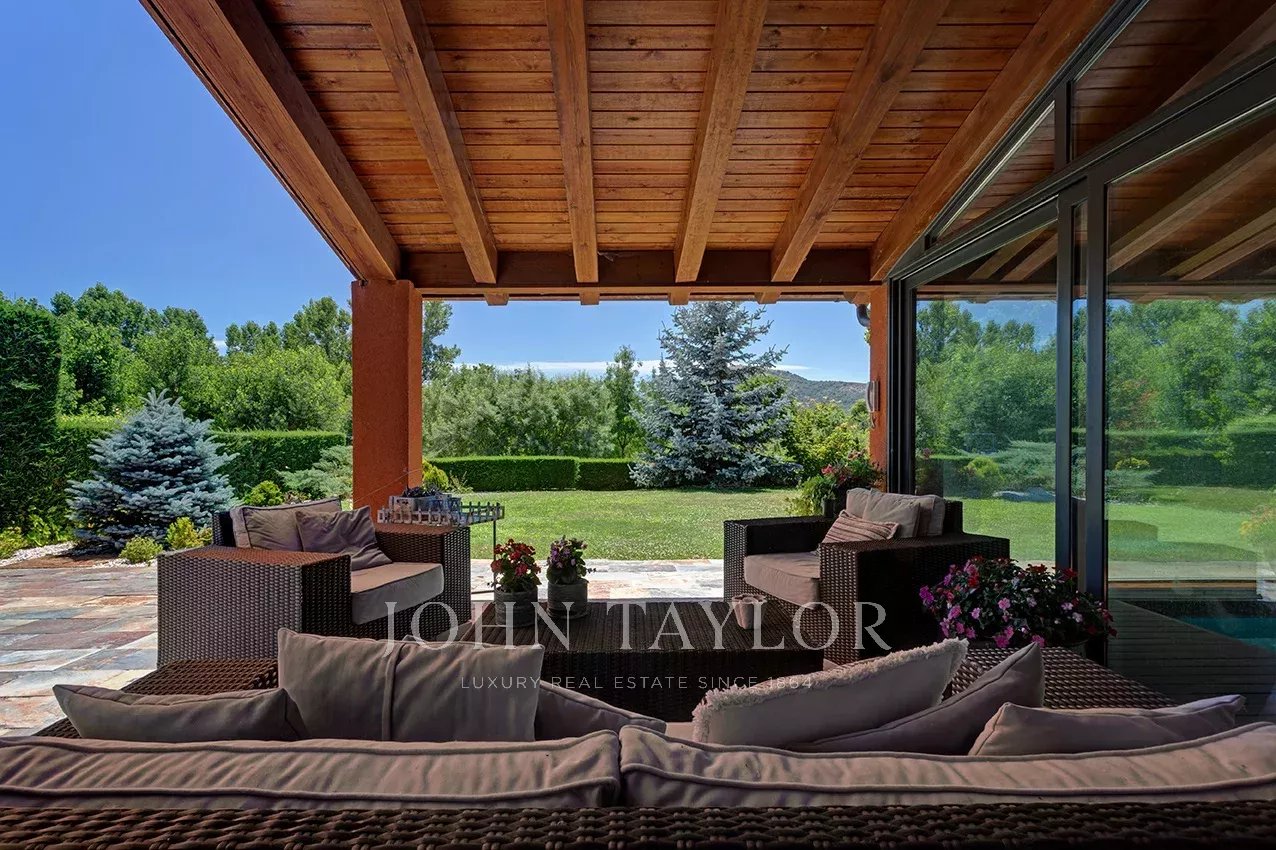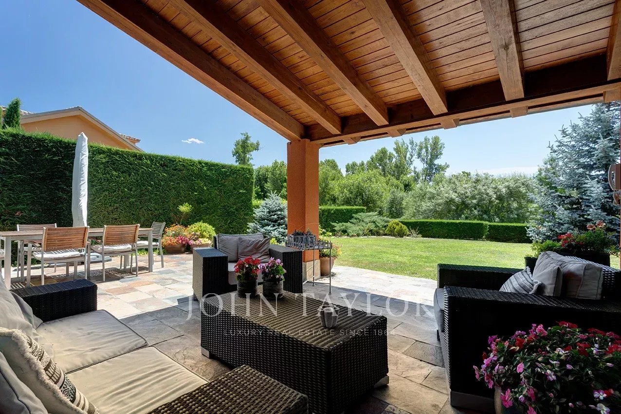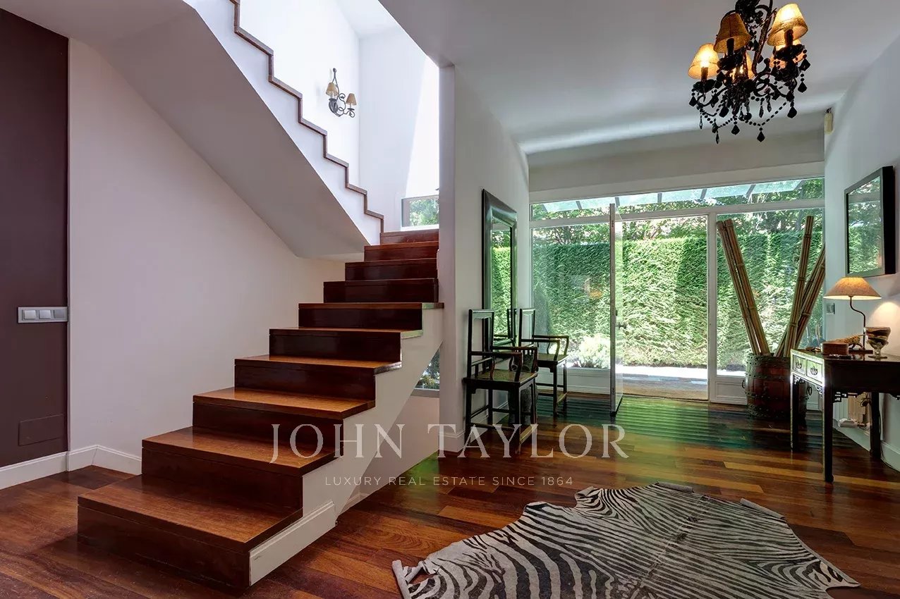 Distribuito in tre comodi piani, il piano principale è composto da un ampio e luminoso soggiorno con camino e grandi finestre con accesso al giardino e alla magnifica piscina coperta e vetrata, riscaldata, con sistema di deumidificazione, che, in estate, può essere semi-esterna per poter aprire tutta la copertura vetrata.