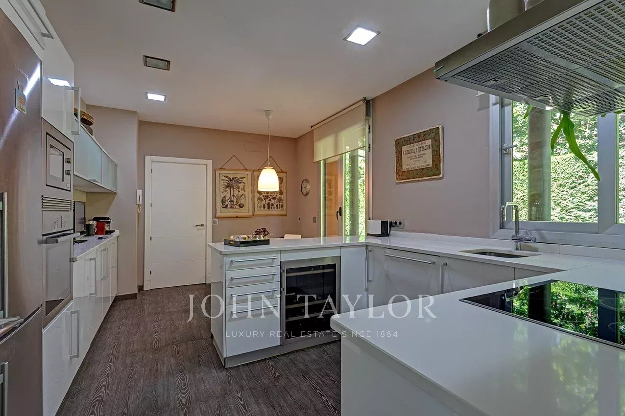 Su questo stesso piano troviamo la luminosa cucina con zona ufficio, un ufficio, un bagno per gli ospiti, che si collega anche alla piscina e alla sauna, e una meravigliosa, spaziosa e confortevole camera da letto principale con spogliatoio e bagno privato.